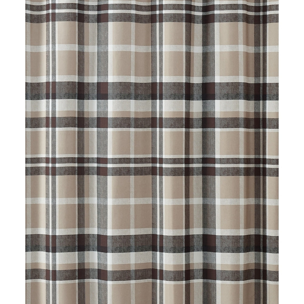 Complete the look of your bathroom with this stylish Brigadoon shower curtain from Porch & Den. The curtain is crafted from brushed microfiber, and features a brown, khaki, and ecru plaid pattern. The soft shower curtain is machine washable for easy care.