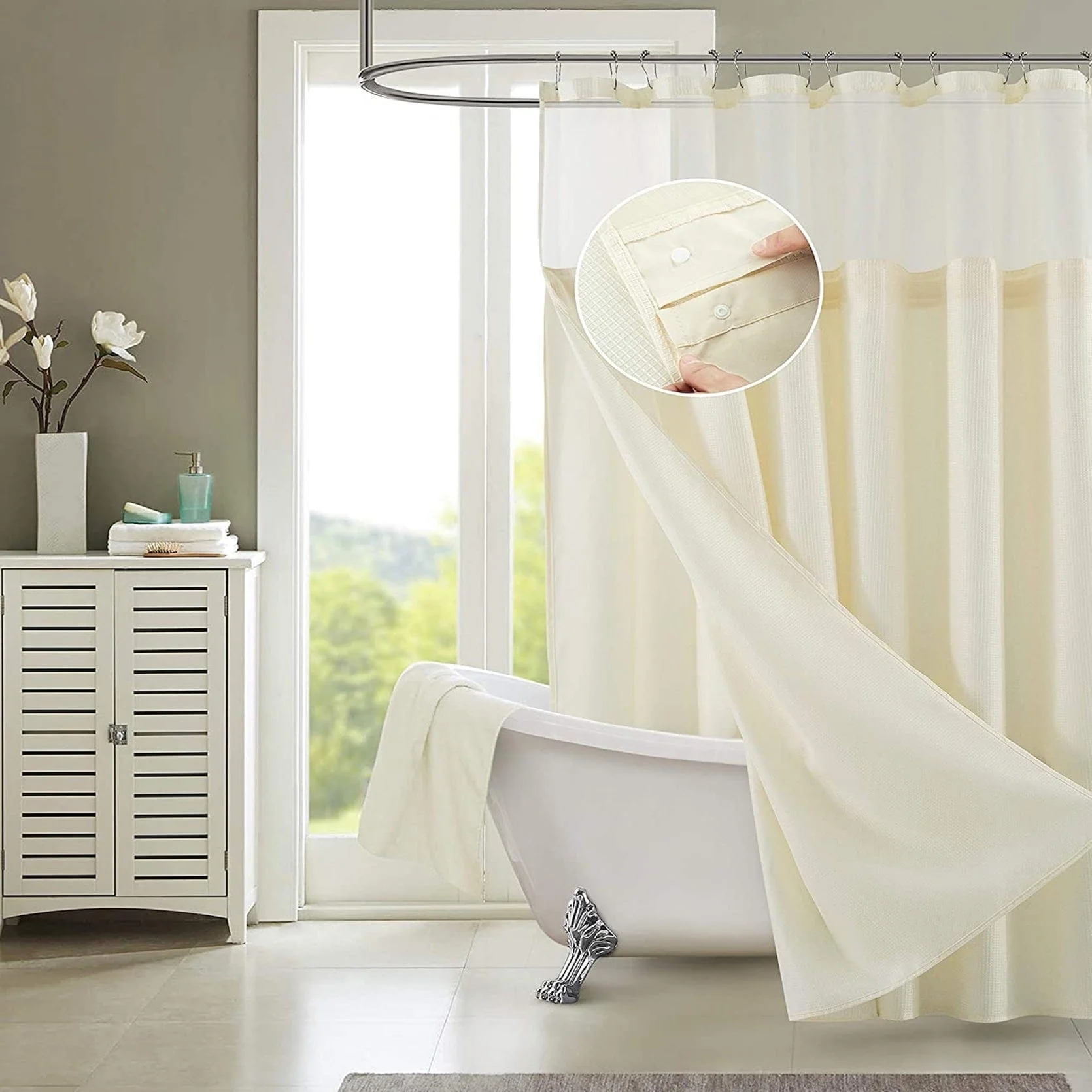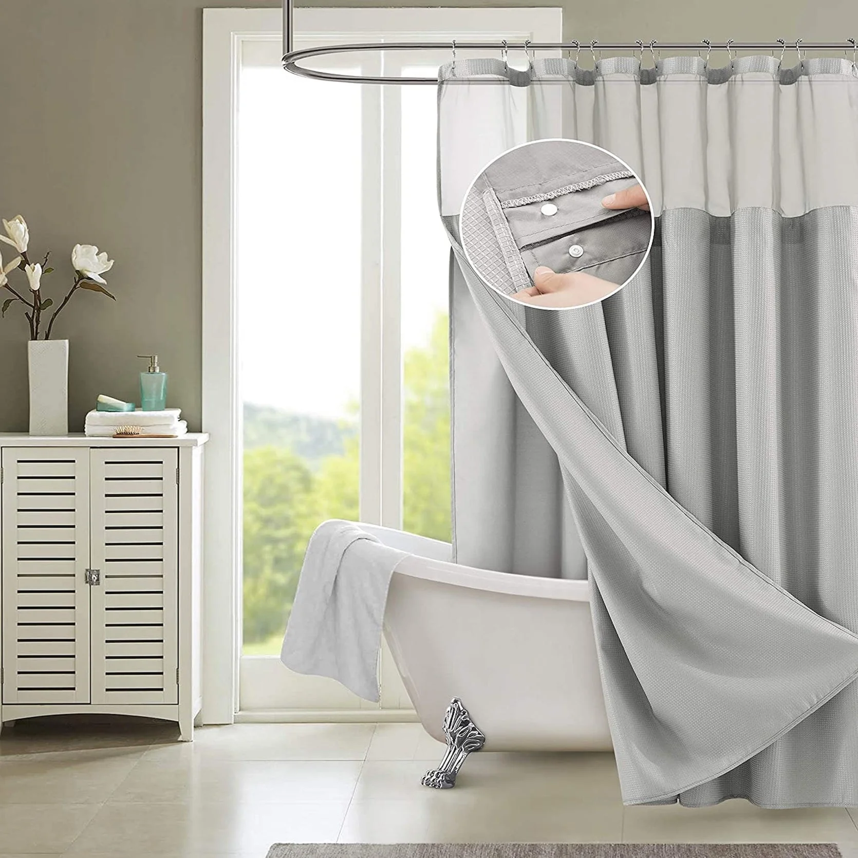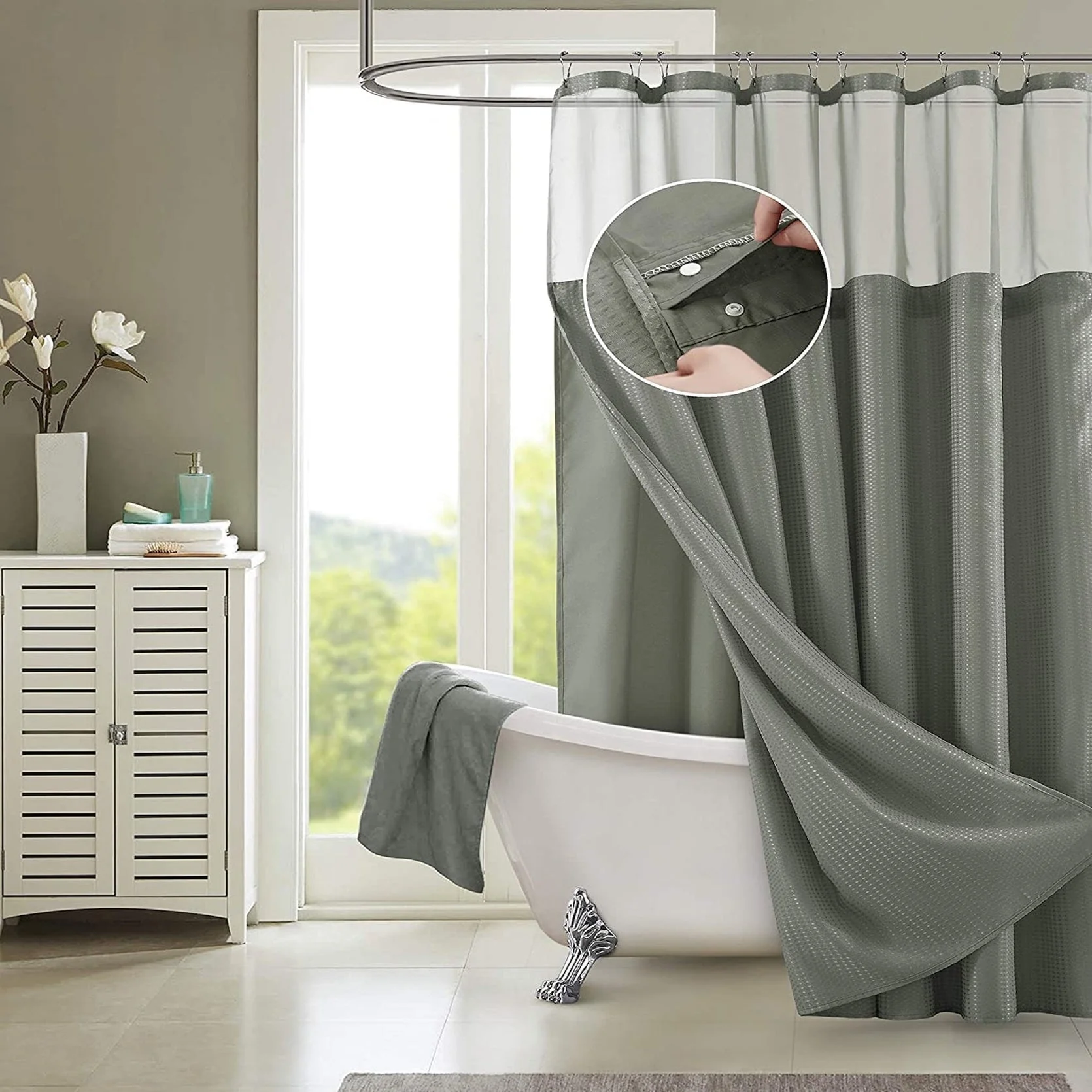 - The simple snap-on-snap-off removable liner: Perfect for any bathroom space in your house, apartment, dorm, camper, and more - a sustainable and easy solution with long-lasting easy snap-on or off-liner - install & disassemble this shower curtain effortlessly within seconds.