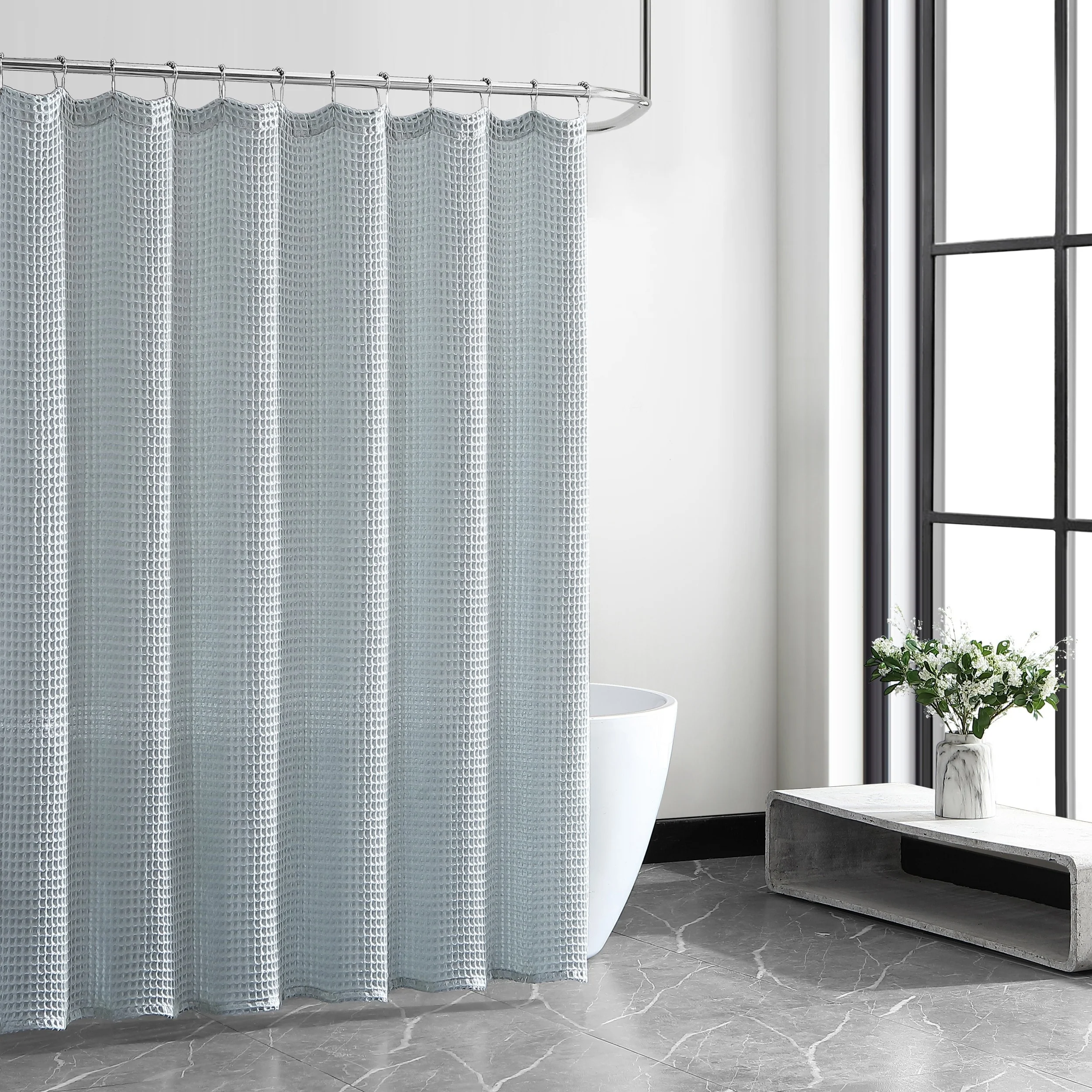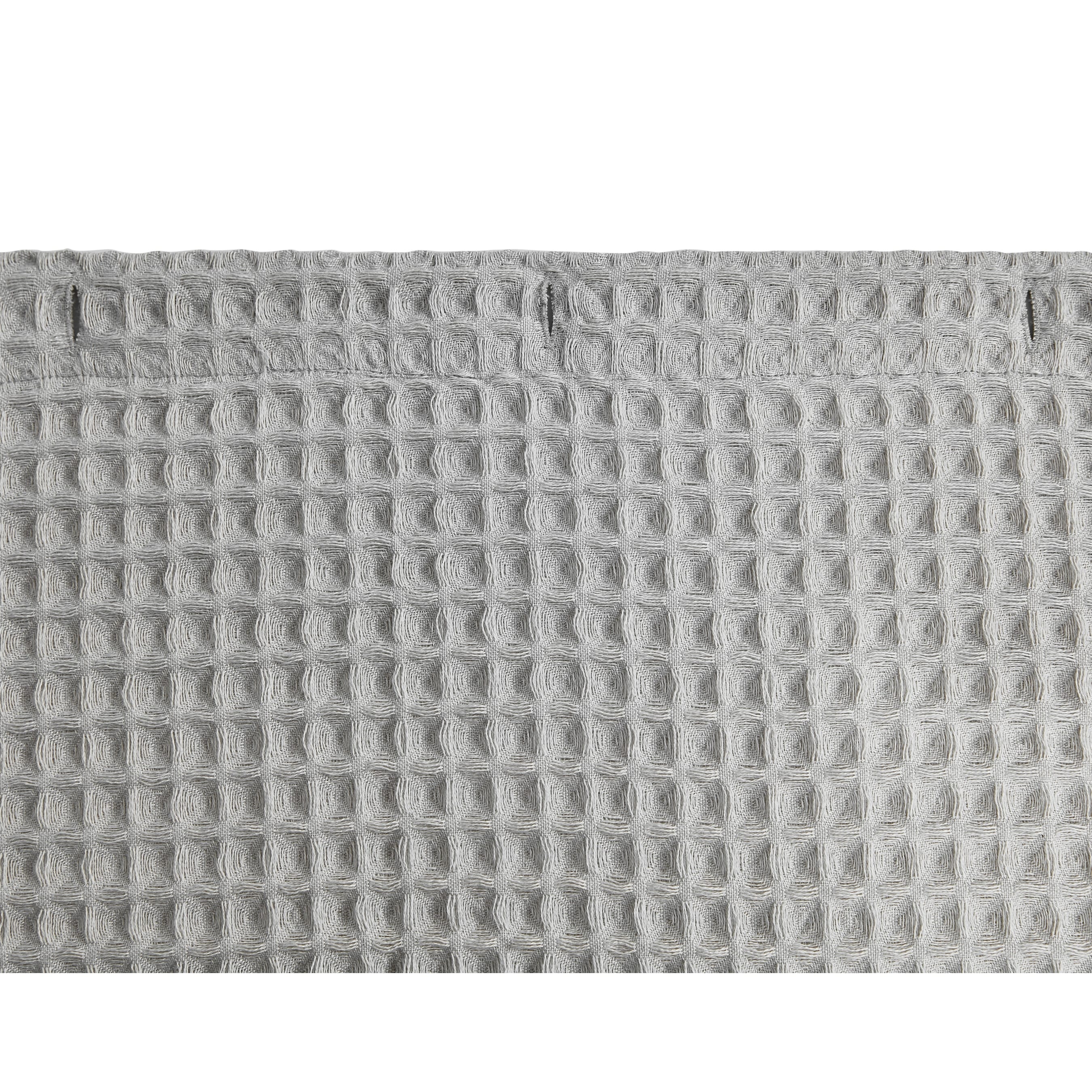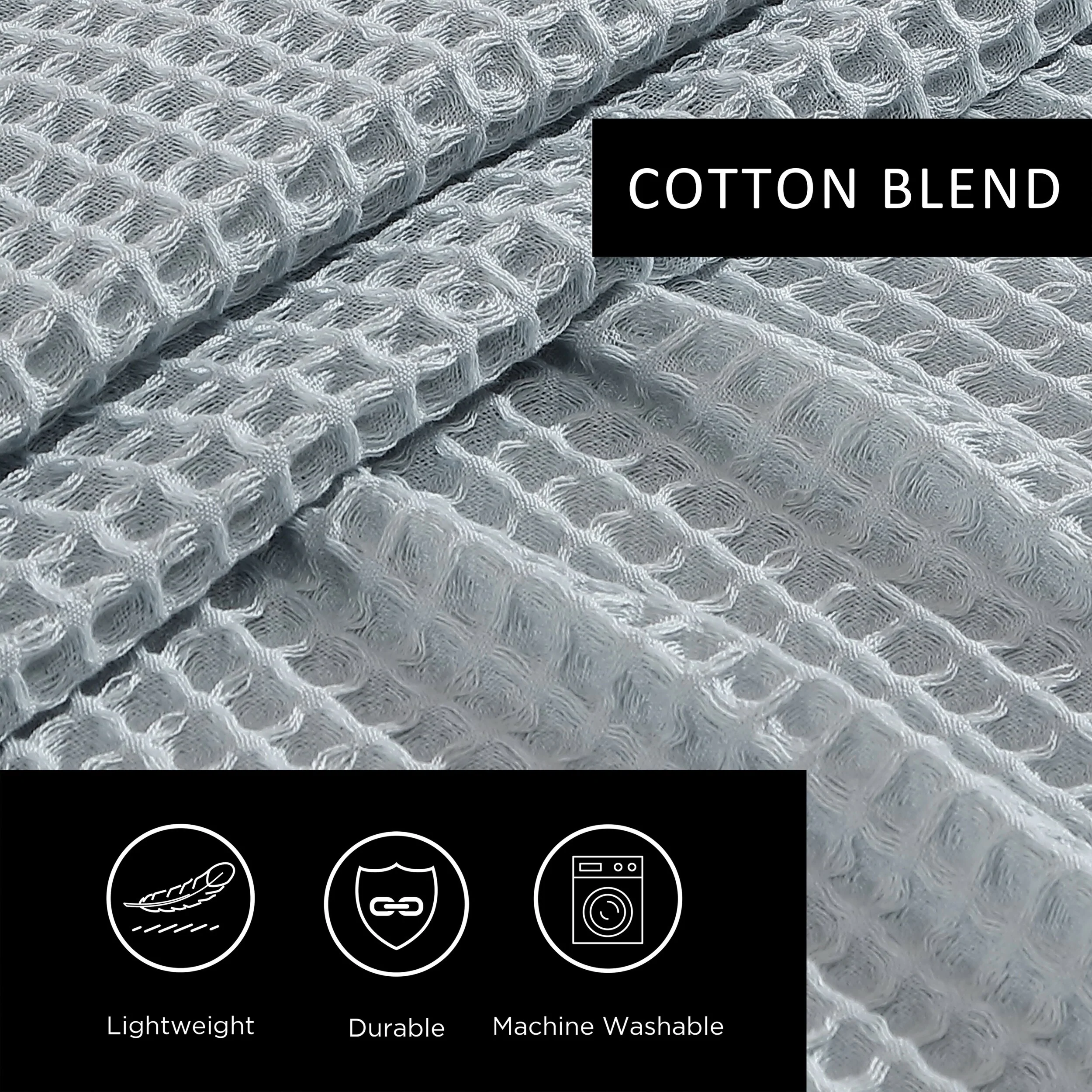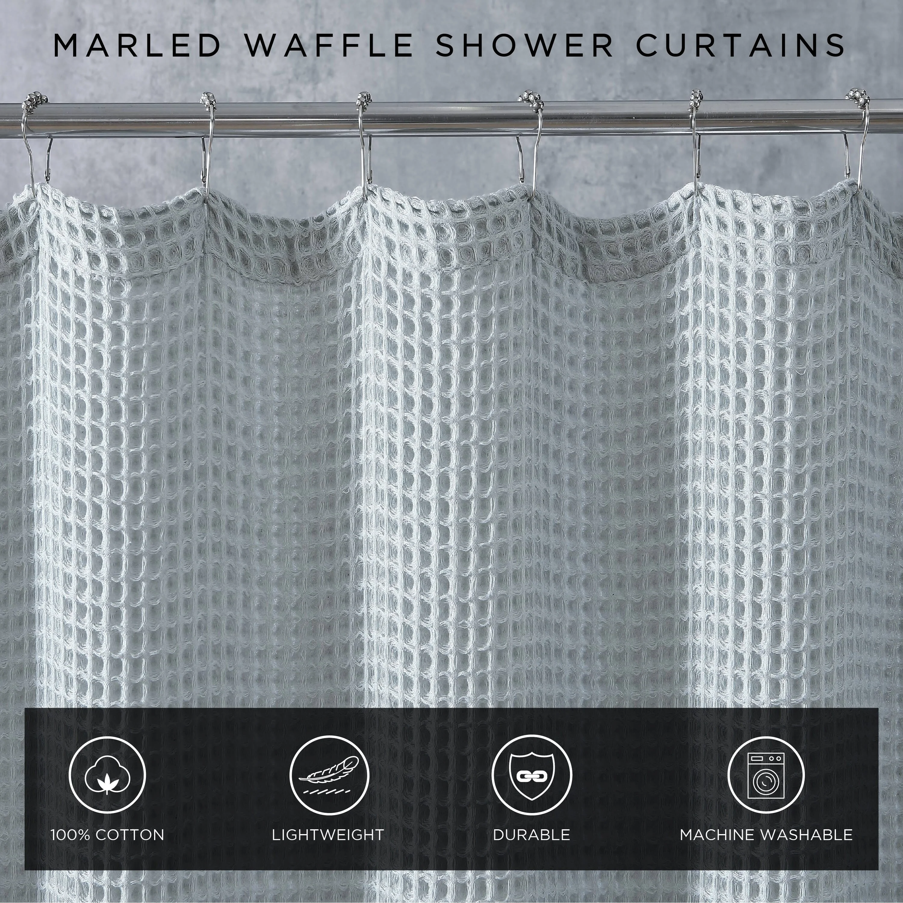 Bring gorgeous modern style to your bathroom decor with the Vera Wang Marled Waffle Shower Curtain. Crafted with a high quality cotton/polyester blend, this shower curtain is extremely durable and has a beautiful drape. Featuring a stunning solid waffle design and available in blue or grey, this shower curtain coordinates beautifully with an array of the Vera Wang towel sets and bath rug collections. Shower curtain features 12-button holes for easy use with curtain rings, sold separately. This shower curtain is machine washable for easy care.