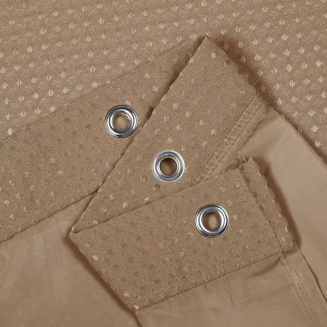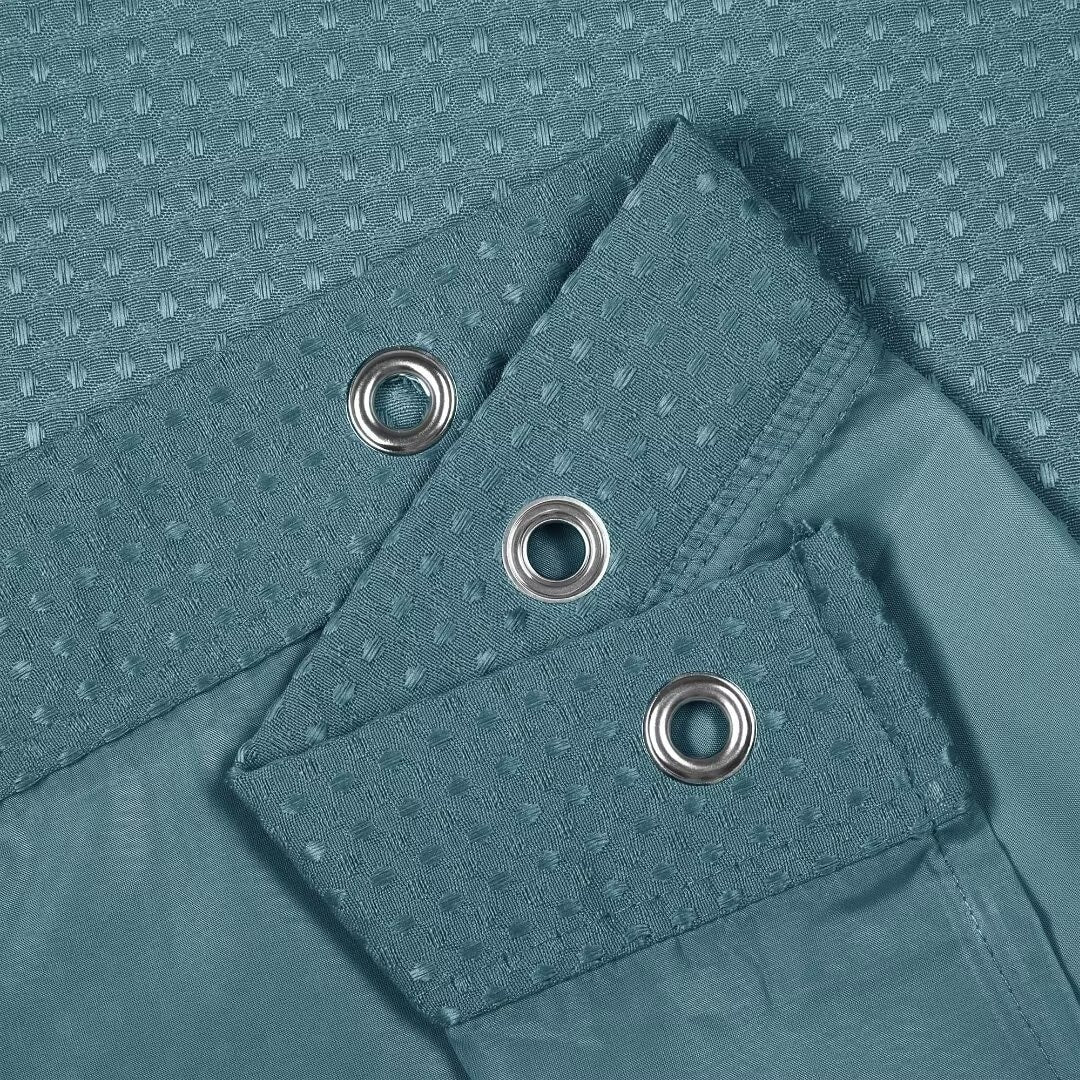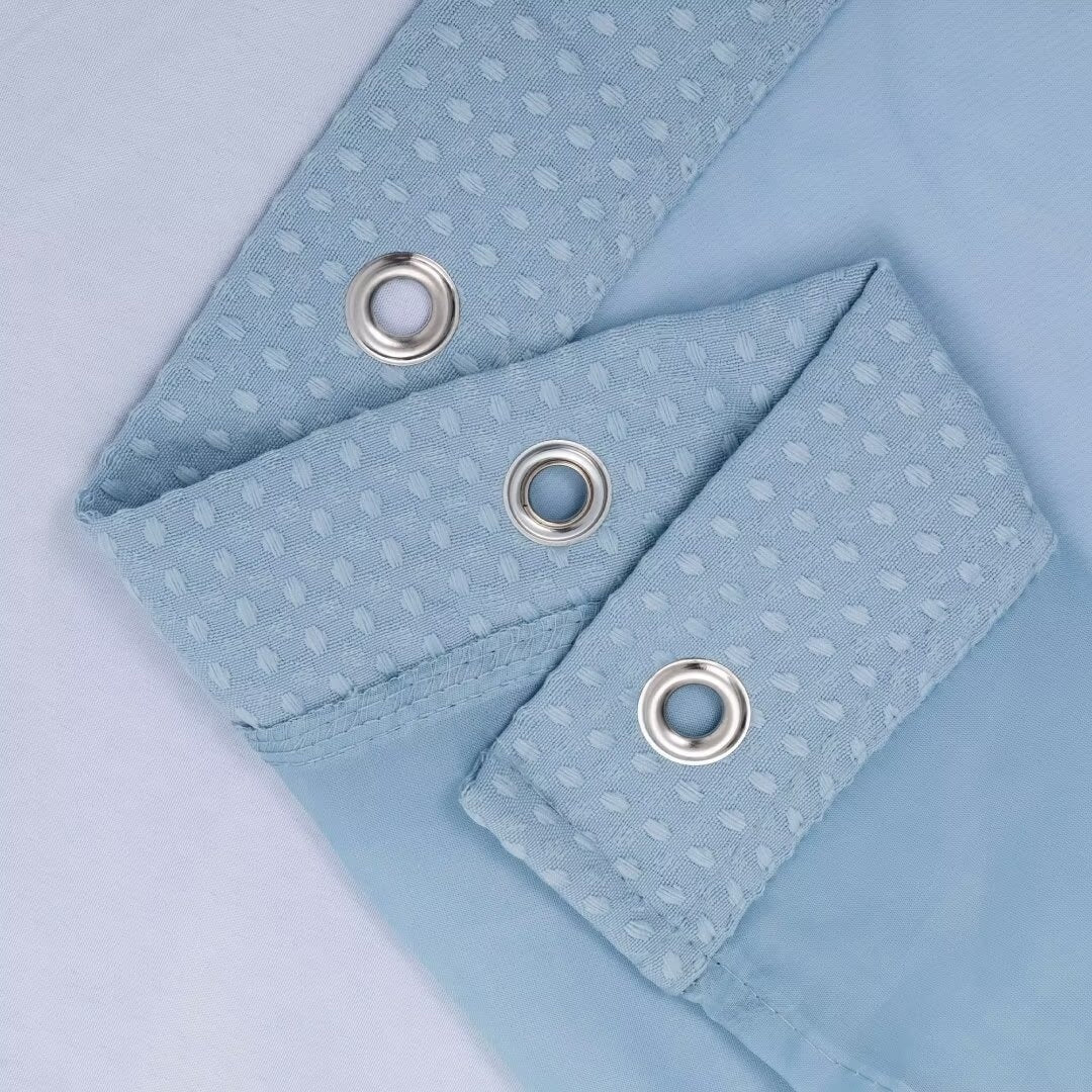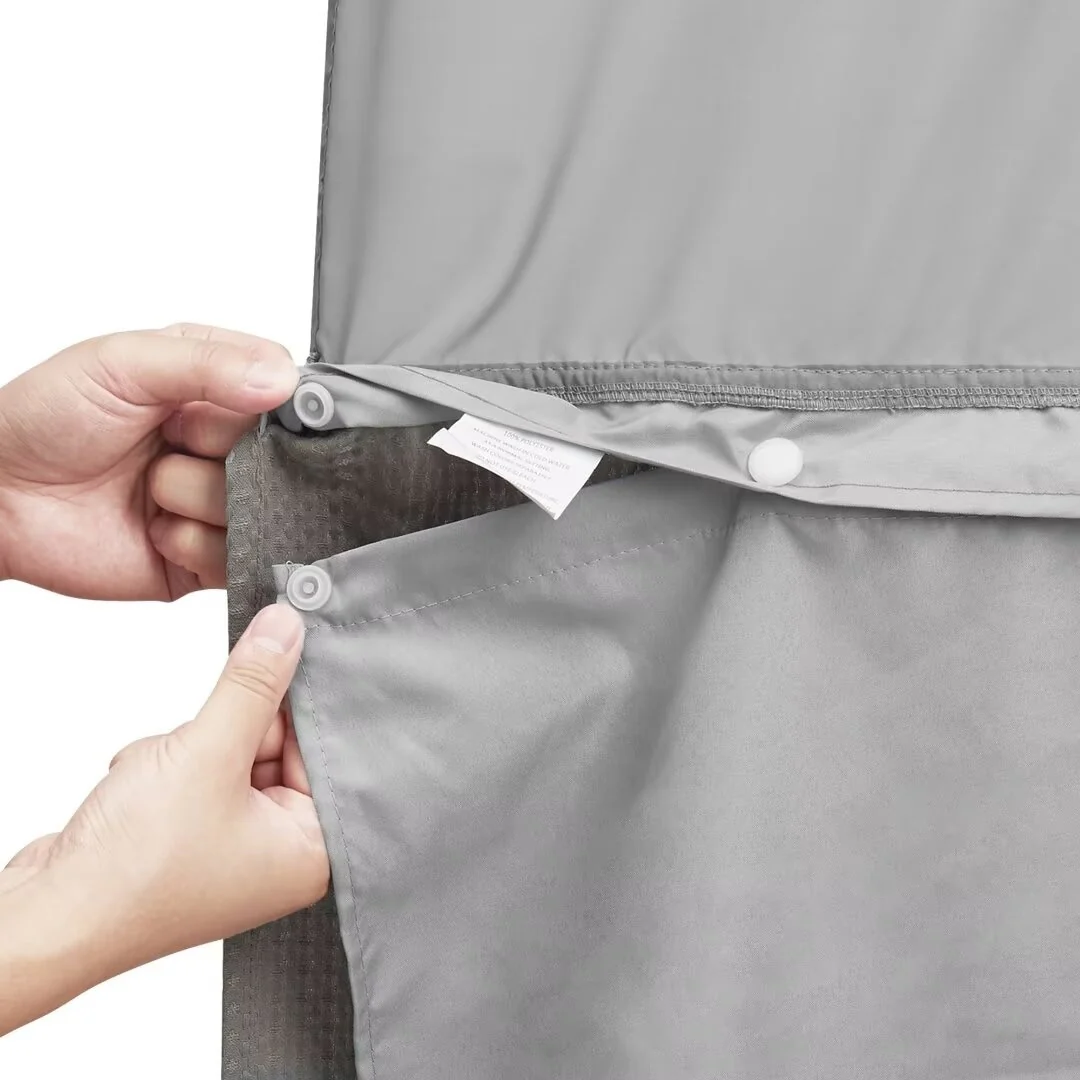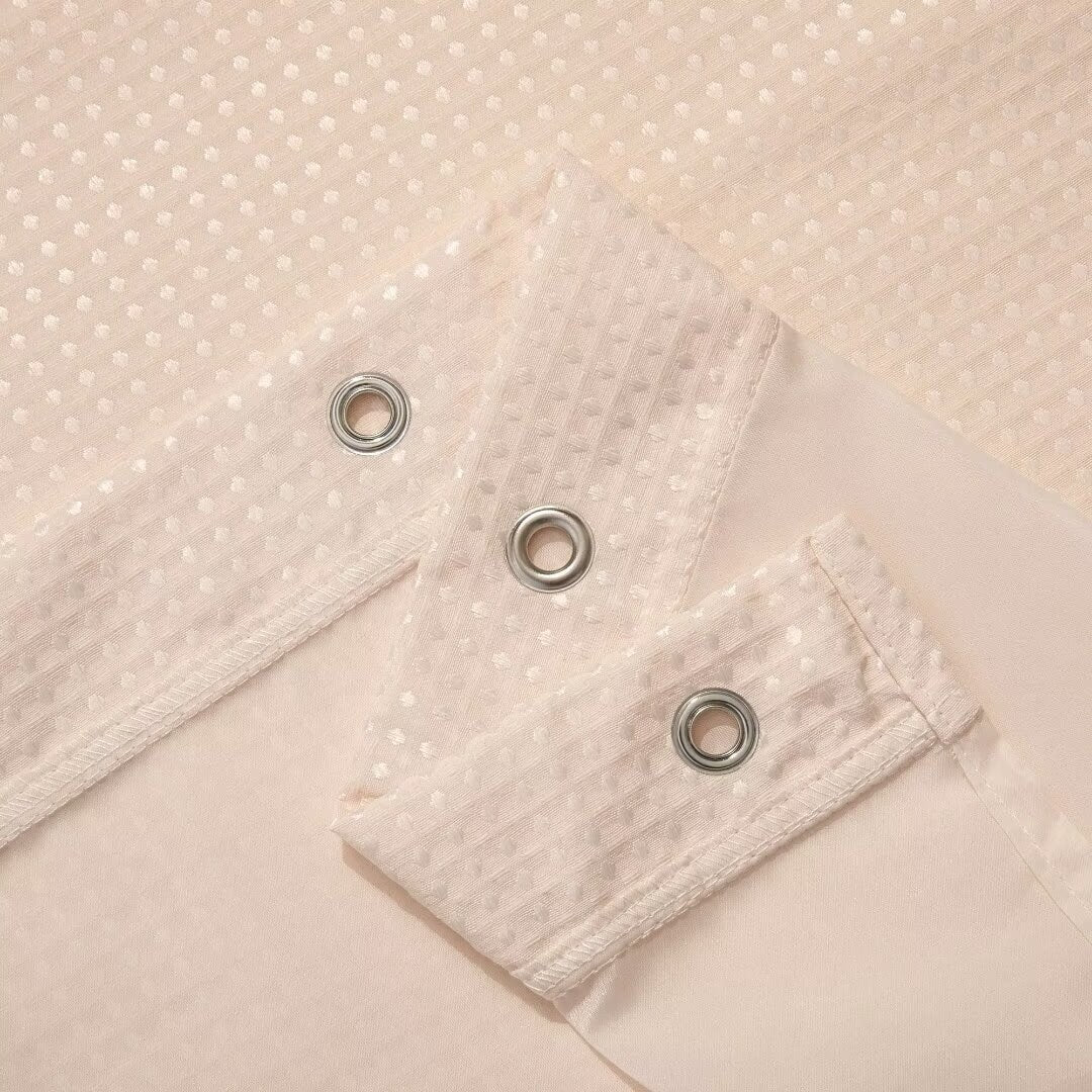 Enhance your bathroom decor with this stylish waffle weave shower curtain. The classic waffle weave adds the depth and texture to your space while providing a soft and luxurious feel. Meticulously crafted from 100% high-quality and water resistant polyester, this curtain is designed to withstand daily use and maintain its shape and texture over time. Featuring the detachable snap-in liner, the curtain is easy to remove on/off for cleaning and replacing, ensuring a neat and tidy appearance. The sheer window allows natural light to filter through, enhancing the ambiance of your bathroom and provide a touch of elegance. Package includes 12 hooks.
