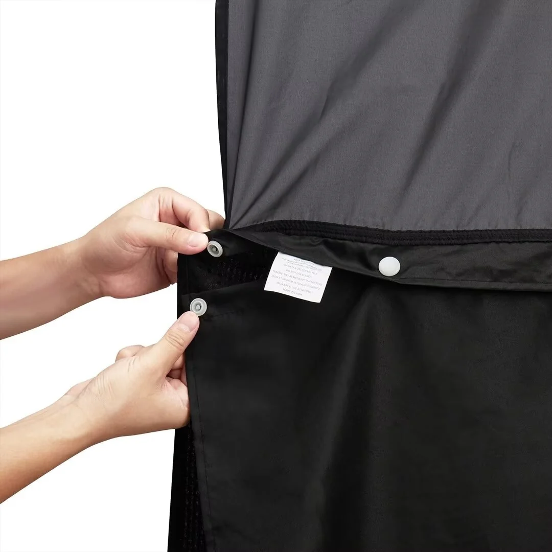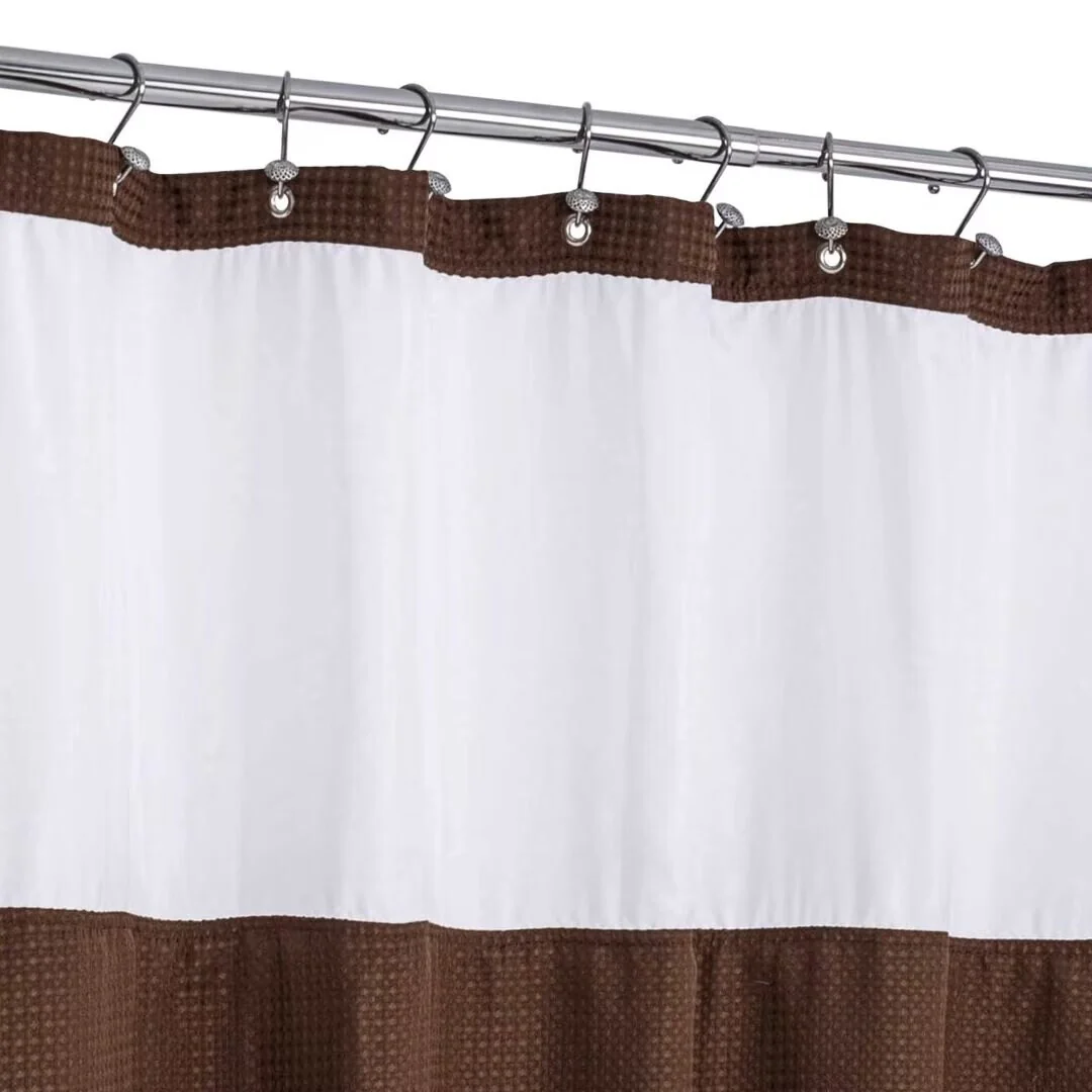 - Package includes shower curtain with snap-in liner and 12 hooks