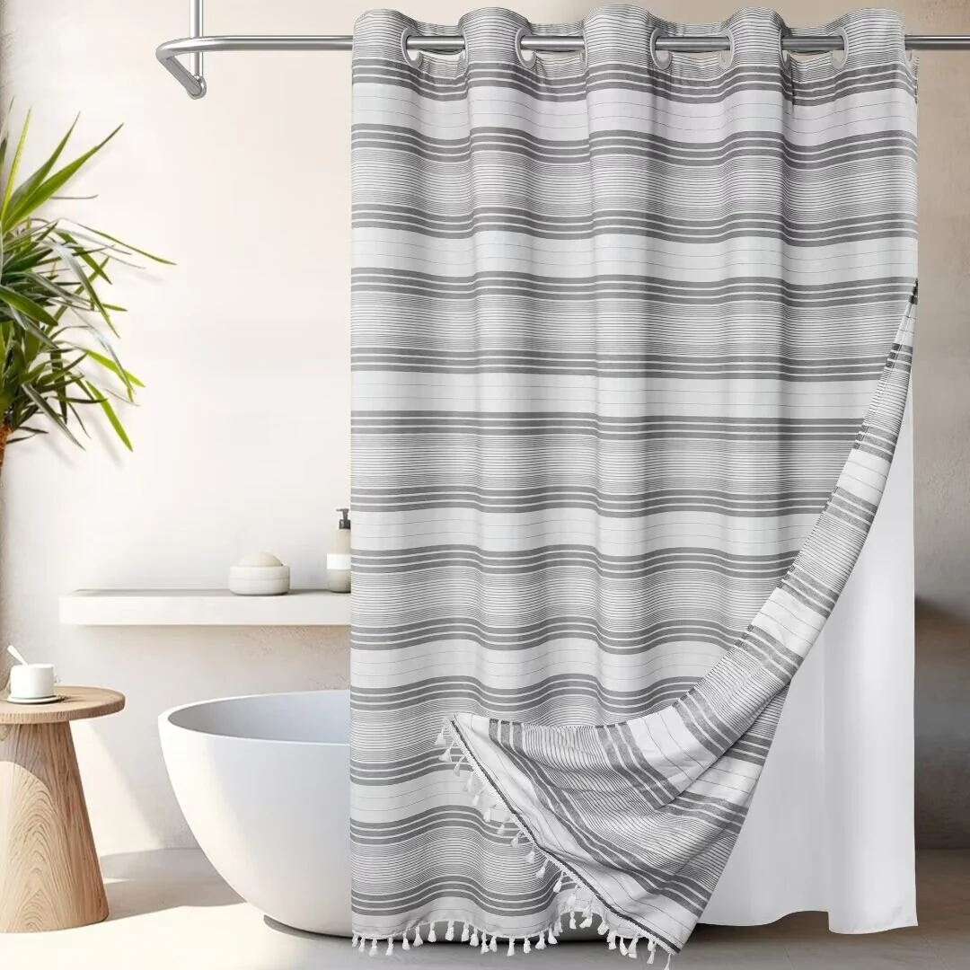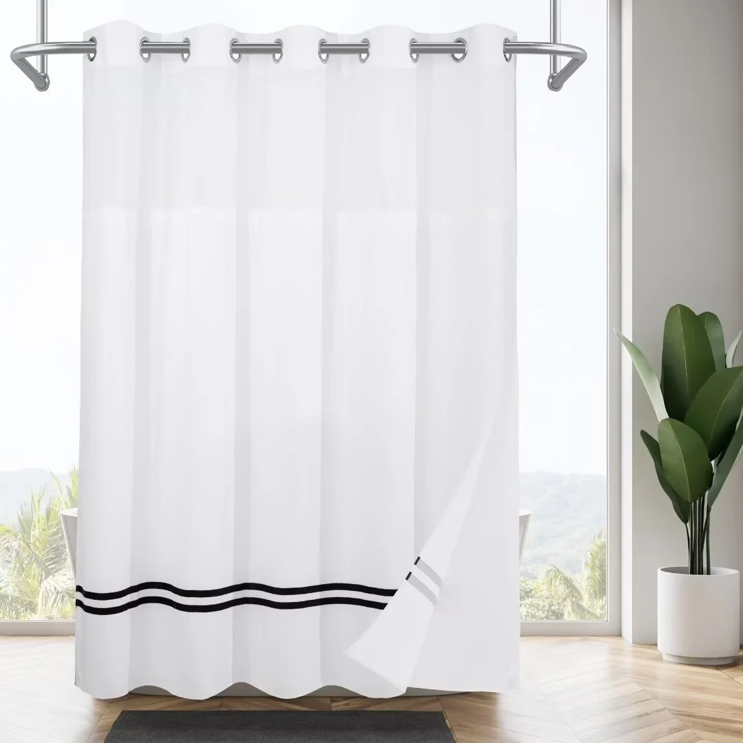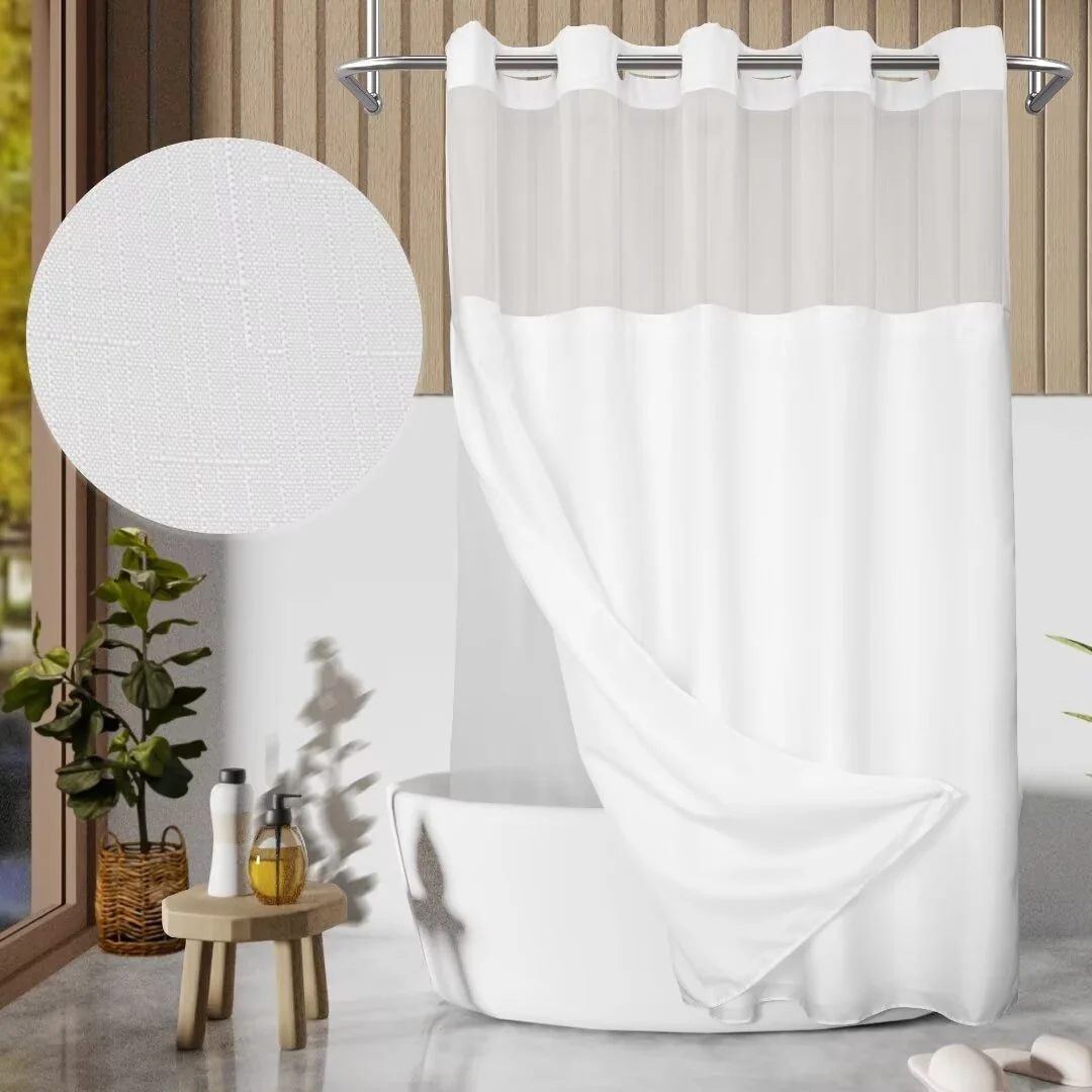 No Hook Slub Linen Texture Shower Curtain with PEVA Snap-in Liner