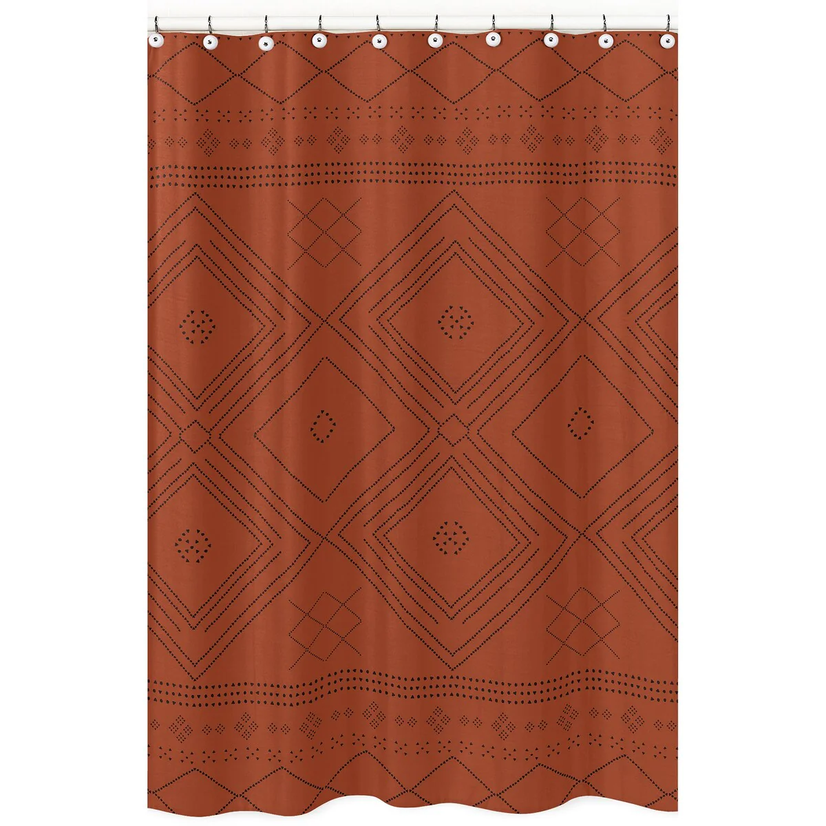 Sweet Jojo Designs Orange Boho Bohemian Tribal Bathroom Fabric Bath Shower Curtain Black Rustic Woodland Southwest Urban Retro