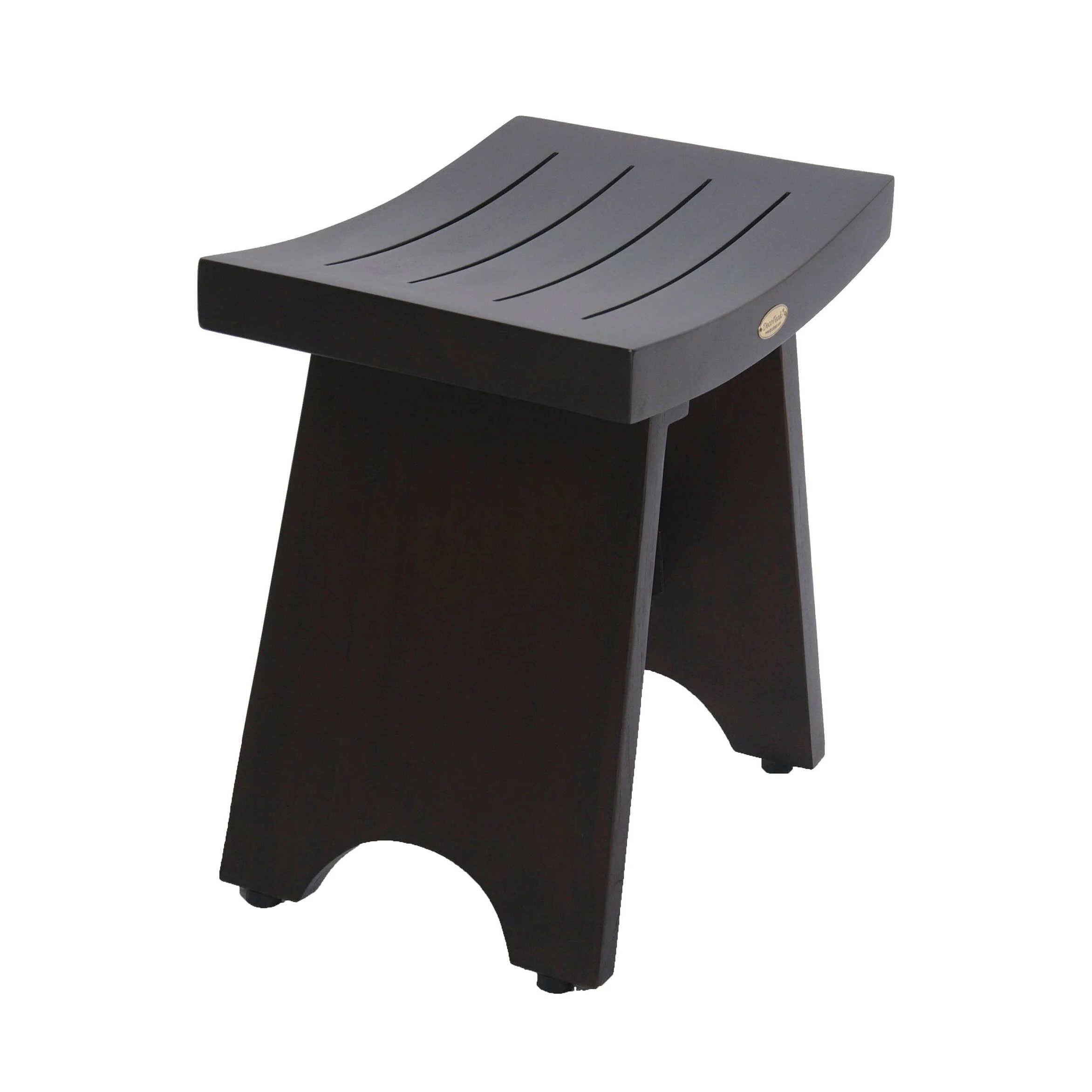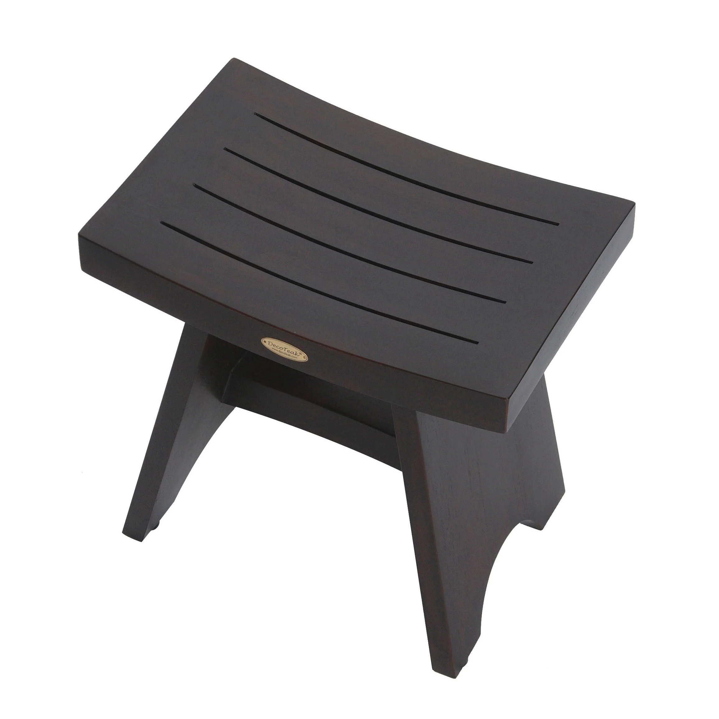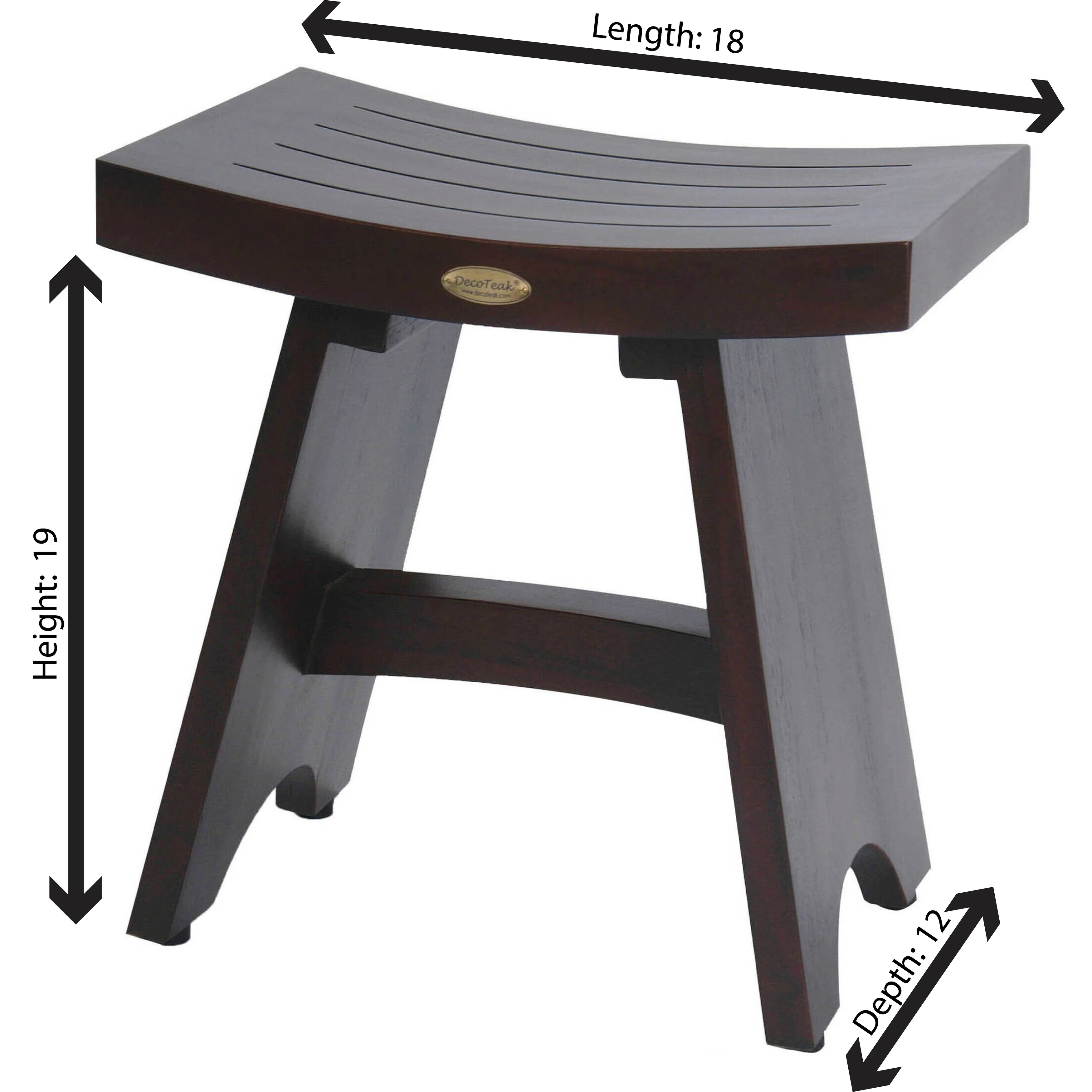 18' Serenity Zen styled shower bench provides a stunning new modern design, combined with improved features and functionality. Flared legs provide extra stability and support, preventing tipping. Height adjustable foot pads provide improved safety allowing leveling on sloped shower floors. Ships fully assembled saving hassle and frustration. DecoTeak solid teak Serenity Eastern style 18' shower bench provides a classy Zen like feel to your shower, bathroom, living room, or patio, hence the name SERENITY. It has a compact footprint of 18' long, and 12' wide, with a comfortable height of 18'. It is the perfect height to rest your feet on while shaving in the shower. The sides gently slope upwards giving its Eleganto Eastern Zen flair. It has been styled on elegant Zen design themes that provide calm, tranquility, and elegance to your setting All of DecoTeak's products are manufactured in small workshops on the island of Java in Indonesia. We work with local craft people that have often been making furniture, crafts, and wood carvings for multiple generations. We work directly with these small workshops which is why we are able to provide the USA consumer with such an incredible value. Each piece is stained a rich woodland brown finish to match with both modern and traditional bathroom decors.
