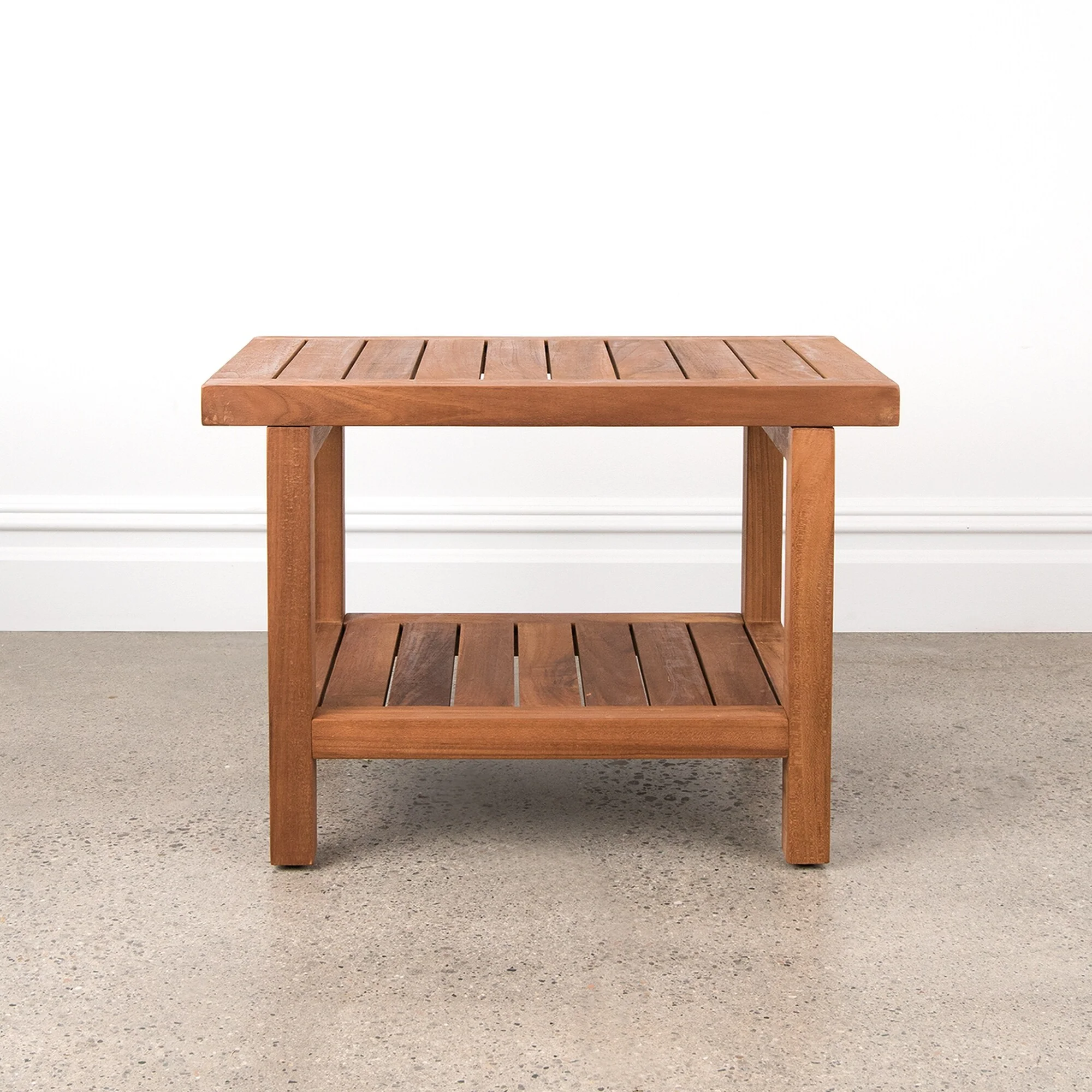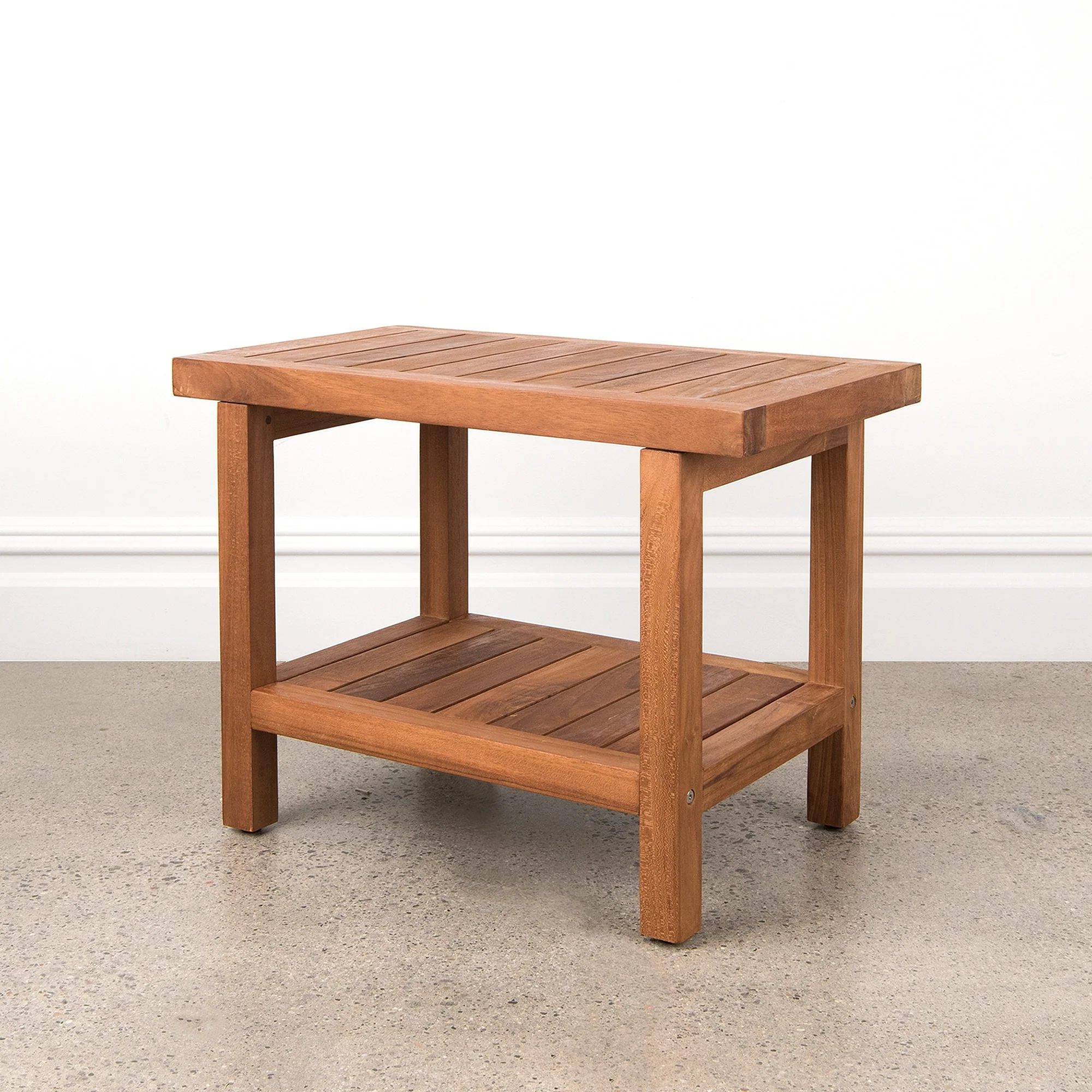 Bring the natural beauty of wood into your bath with our Teak Shower Bench. Featuring a slatted wood construction that allows for water drainage, this bench showcases the rich color and texture of teak and is naturally resistant to moisture, humidity and mildew. Sturdily constructed, this versatile accessory can be used as a shower seat or as a small side table for bath necessities.