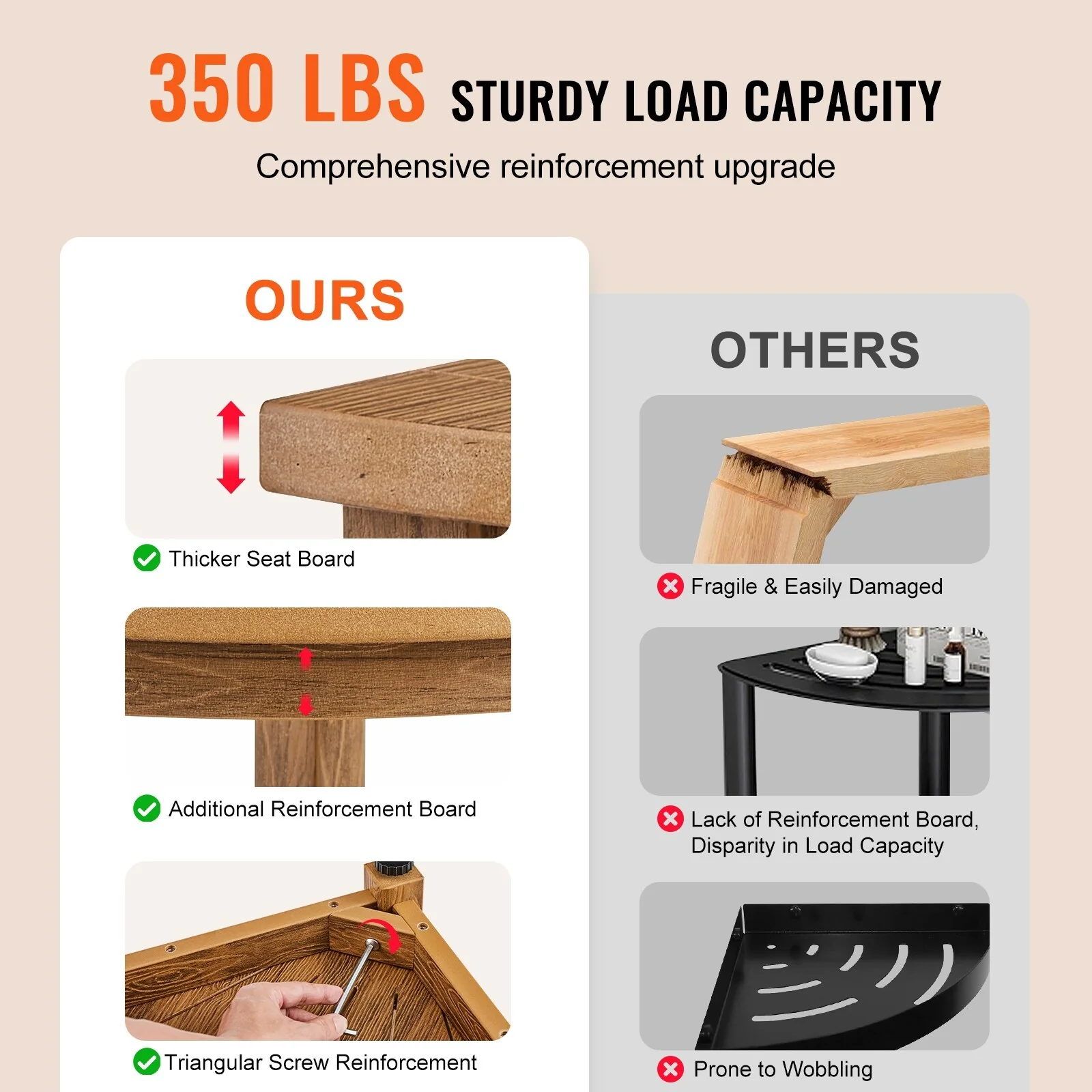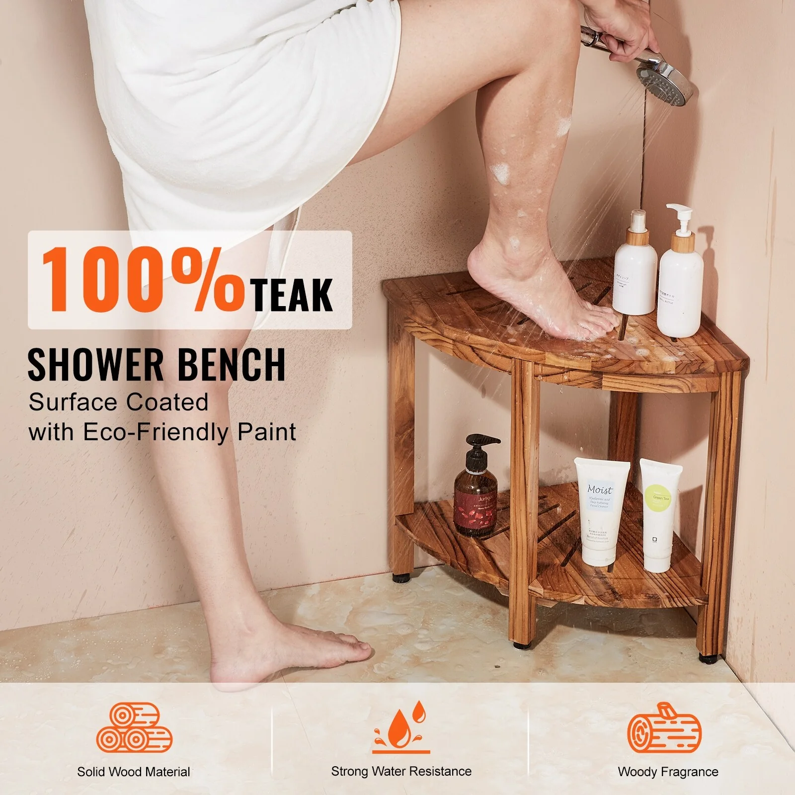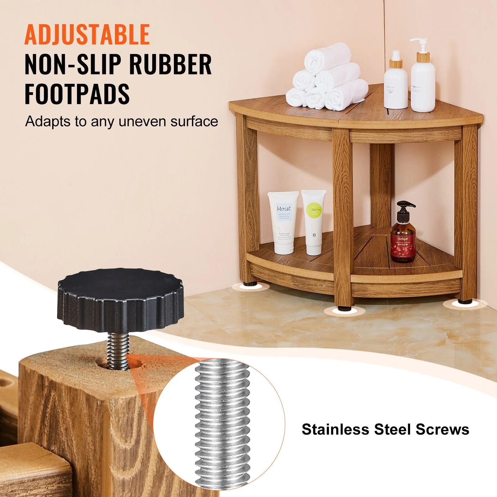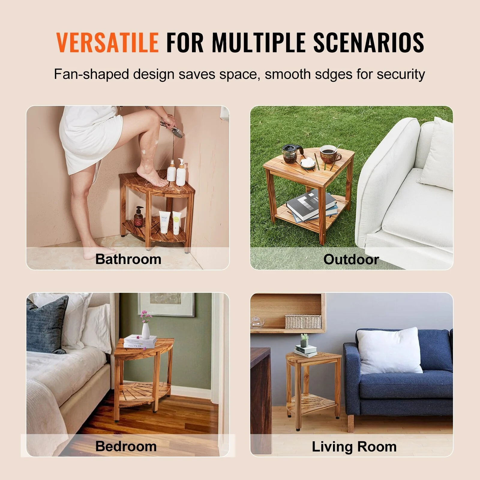 - Versatile: Double-layered design increases storage space, suitable for storing towels, shower gel, and other items, serving as a footrest or storage stool for convenient foot care and showering. Fan-shaped design fits snugly against walls, making efficient use of corner space. Suitable for use in bathrooms, outdoors, bedrooms, living rooms, and more.
