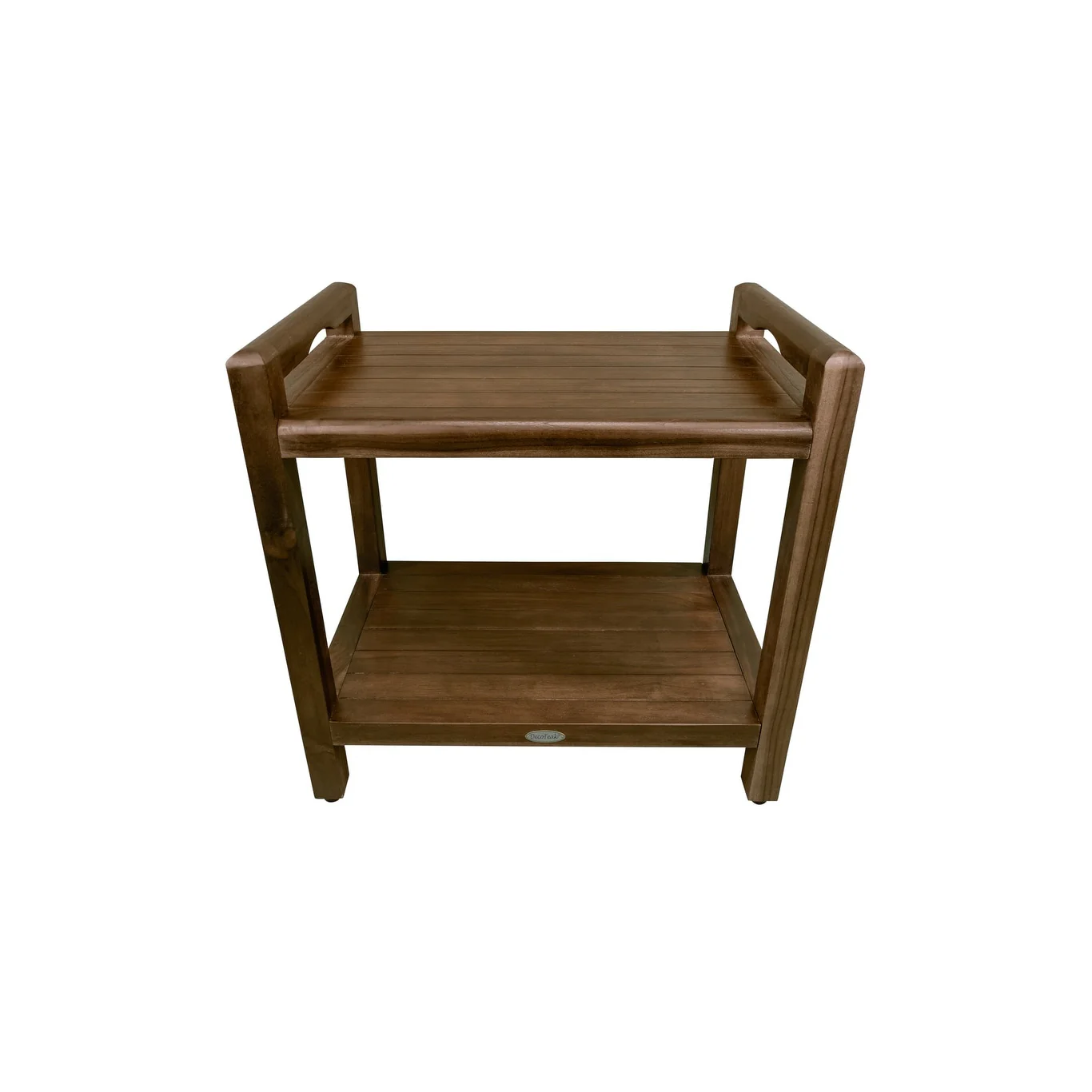 Clean simple lines of solid teak with slats for water drainage will accent your bathroom decor.