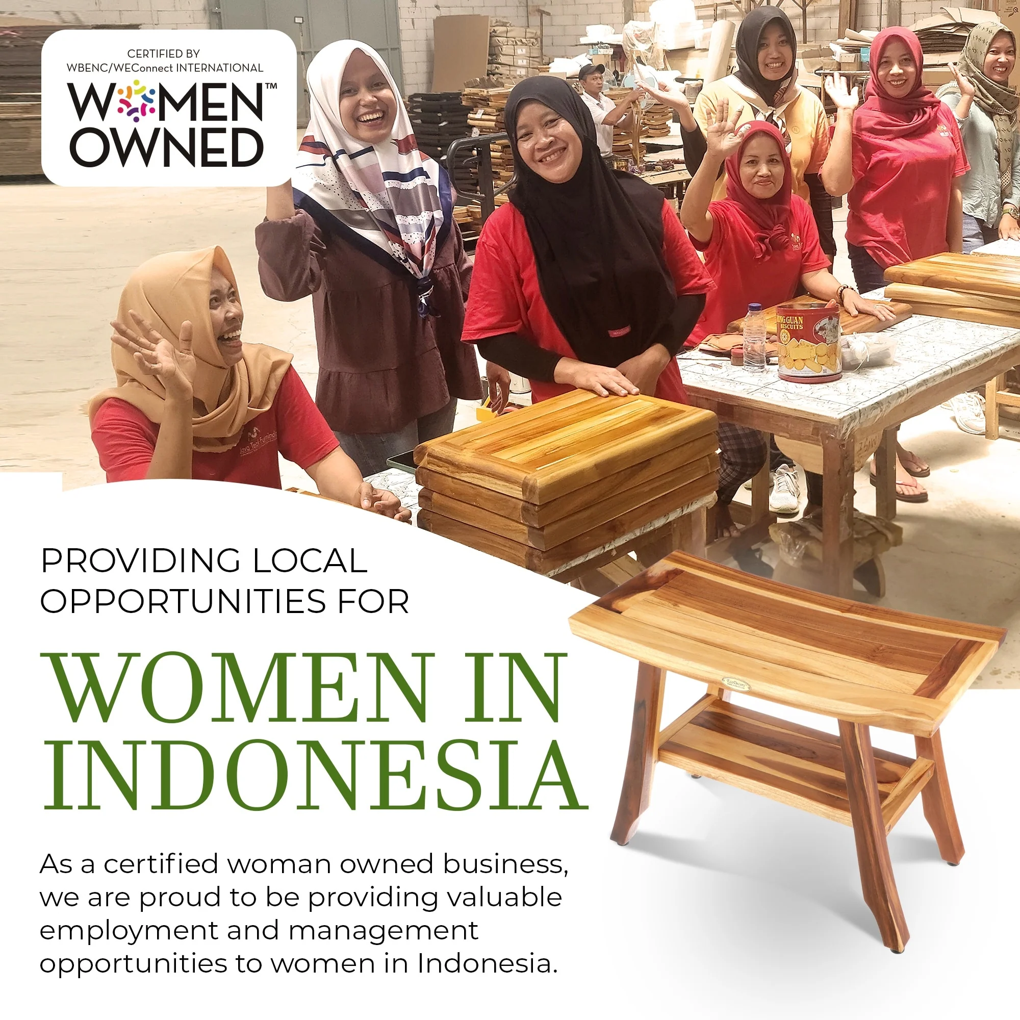 - Created with Care: Proudly designed by a woman-owned company, the Satori shower teak bench represents a commitment to both quality craftsmanship and diverse business ownership. This wooden shower bench seamlessly blends aesthetics with functionality.