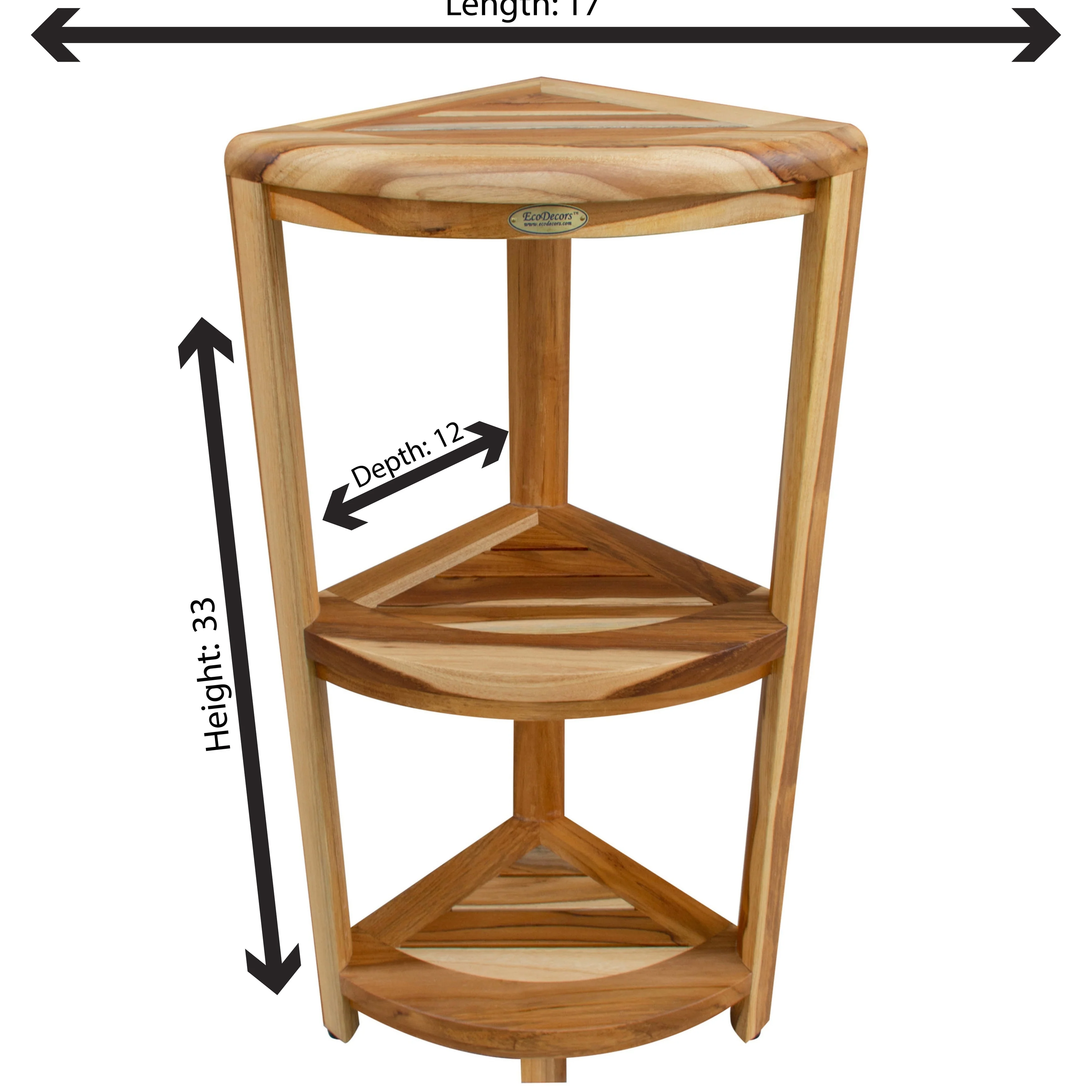 32 inches in Height x 12 inches on each Side x 17 inches Wide. 3-Tier Teak Stool, Teak Corner Shower Bench