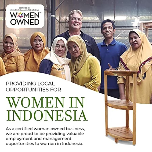 Certified Woman-Owned Enterprise: This product is crafted and supplied by a certified woman-owned company. We take pride in offering quality products while empowering women in rural Indonesian villages. We take pride in our Teak Shower Shelf it outperforms any Bamboo Shower Caddy.