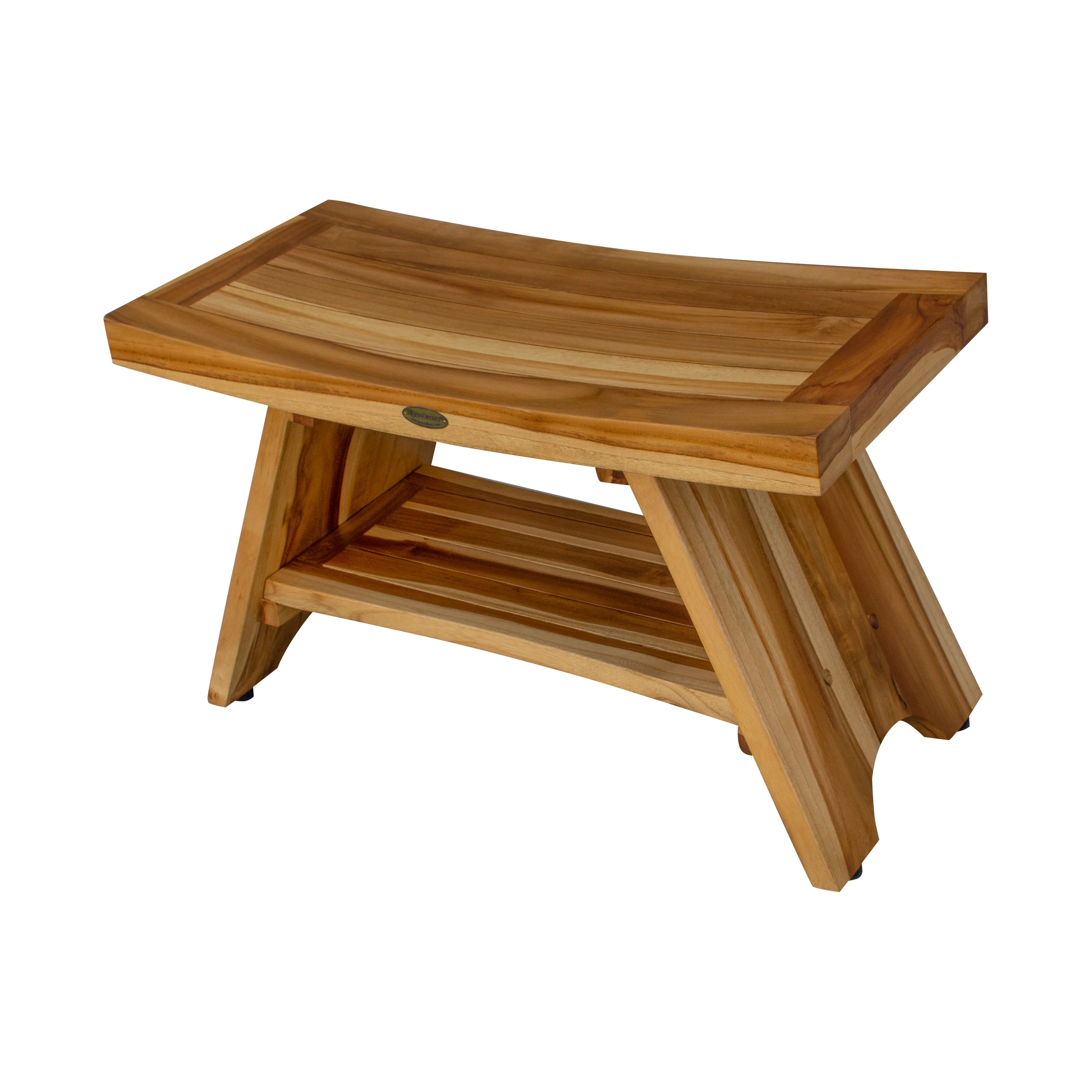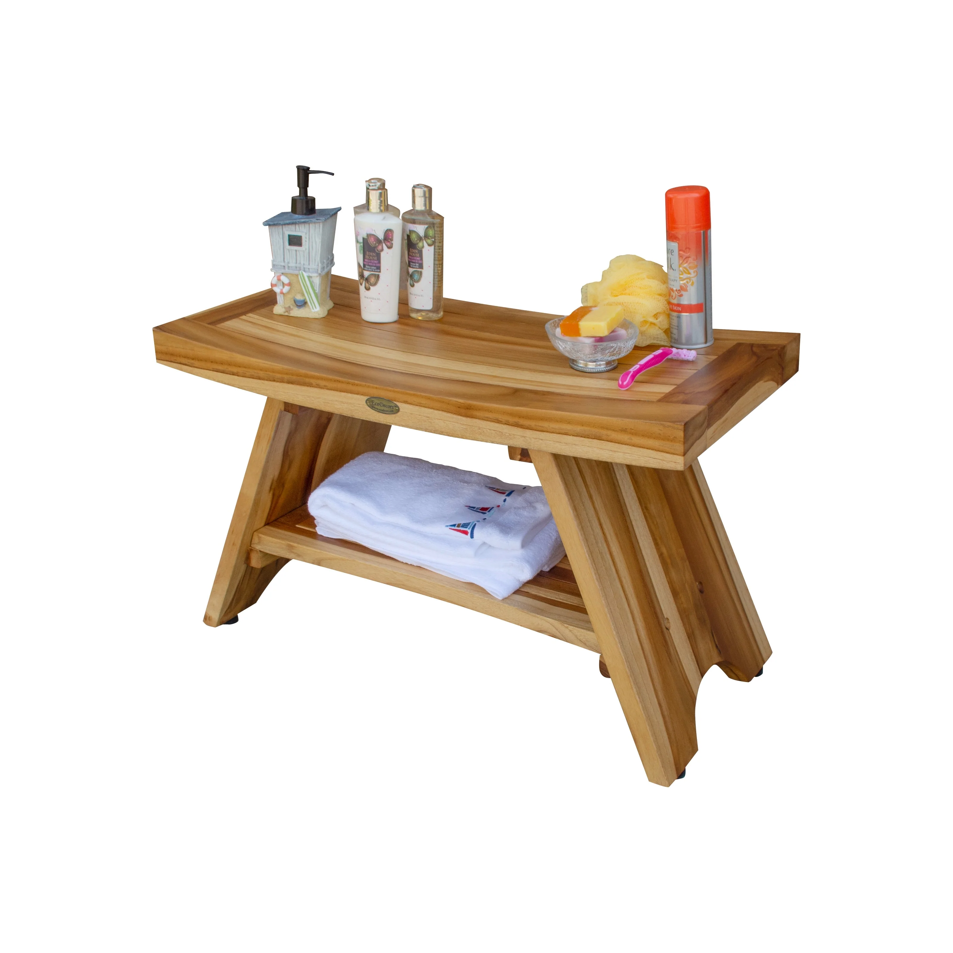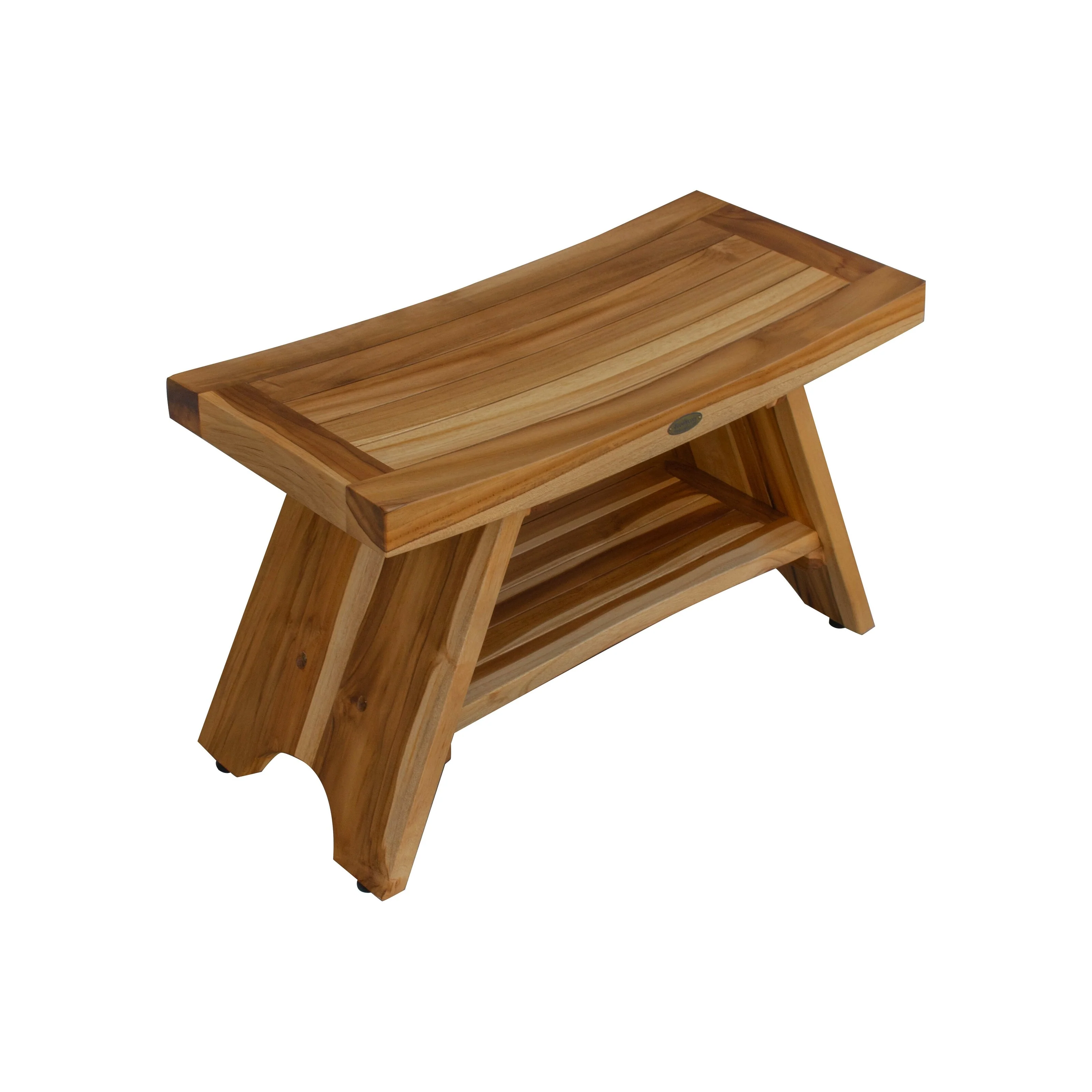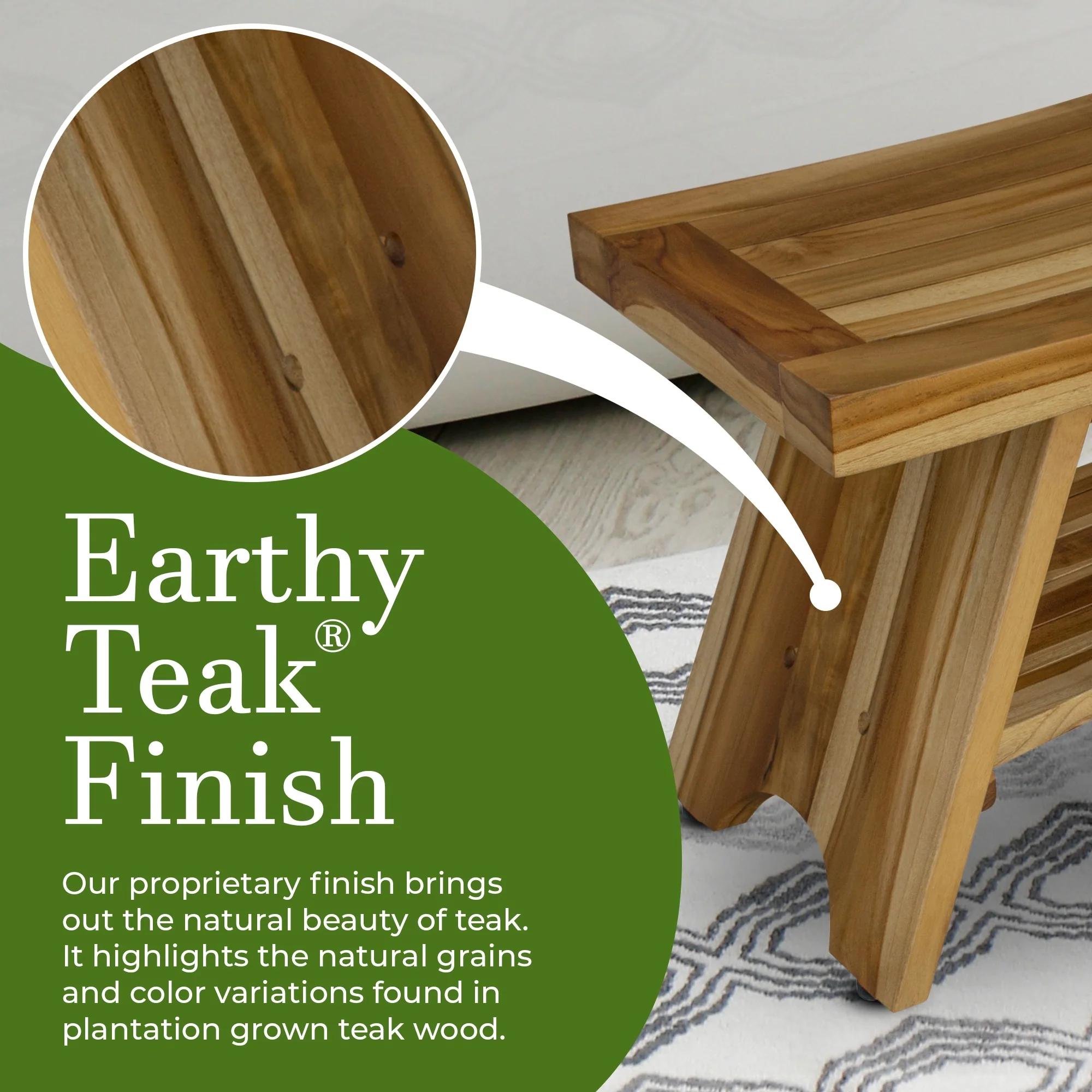 Elevate your bathroom with the 30' Serenity teak bench, a beautifully crafted piece that combines luxury and functionality. Designed to enhance your shower experience, this bench is made from 100% Indonesian plantation-grown teak wood, known for its high oil content and exceptional durability. Its dimensions—30 inches in length, 14 inches in depth, and 18 inches in height—provide generous seating space, making it the perfect teak shower chair for inside your shower. Created by a woman-owned company, this bench features height-adjustable rubber feet, ensuring it stays stable on any surface. The built-in shelf adds a touch of convenience, offering easy access to your shower essentials. Whether you need a spacious teak shower bench or a versatile stool, this piece brings both style and reliability to your bathroom. With the natural water-resistant properties of teak, it's ideal for humid environments, ensuring long-lasting beauty and function.