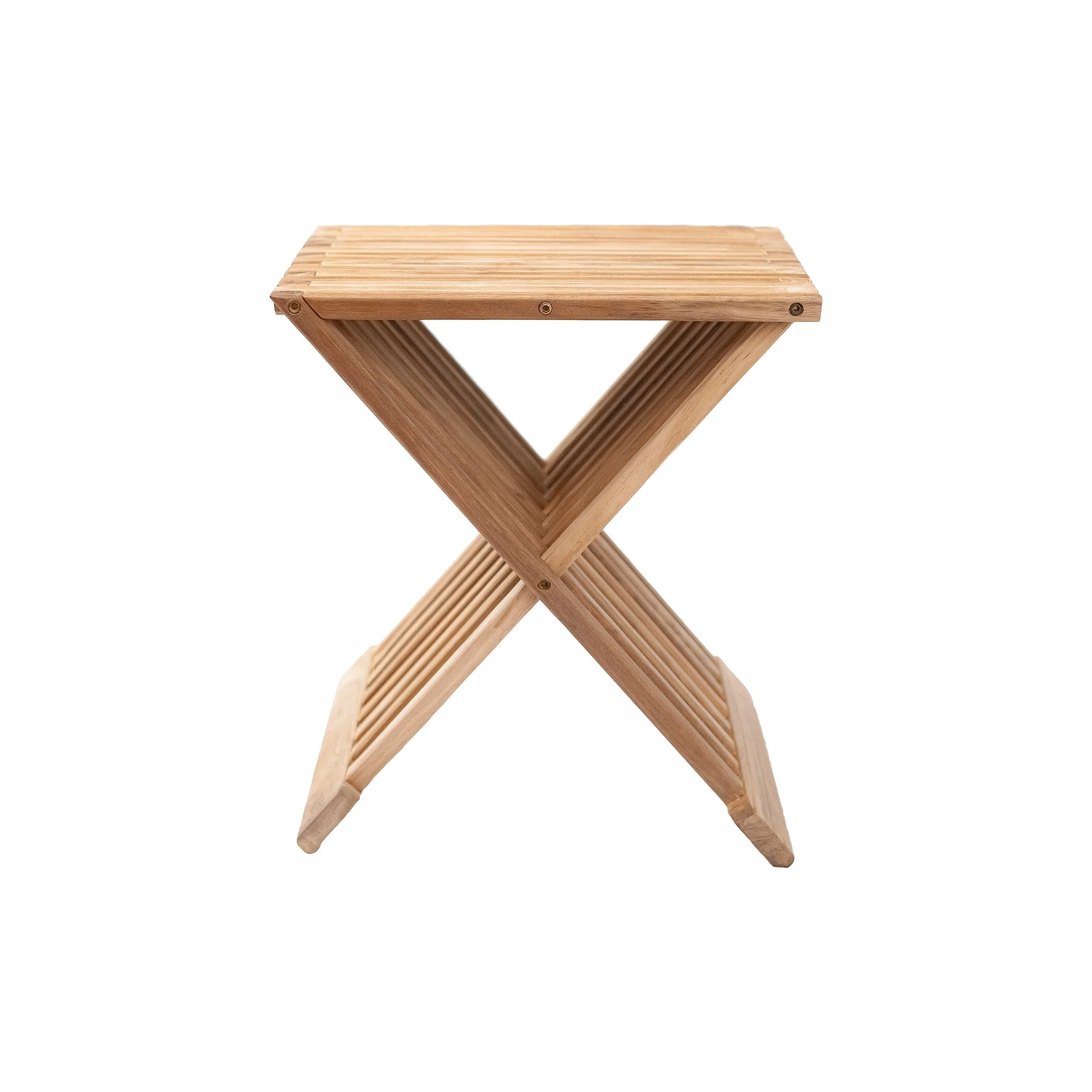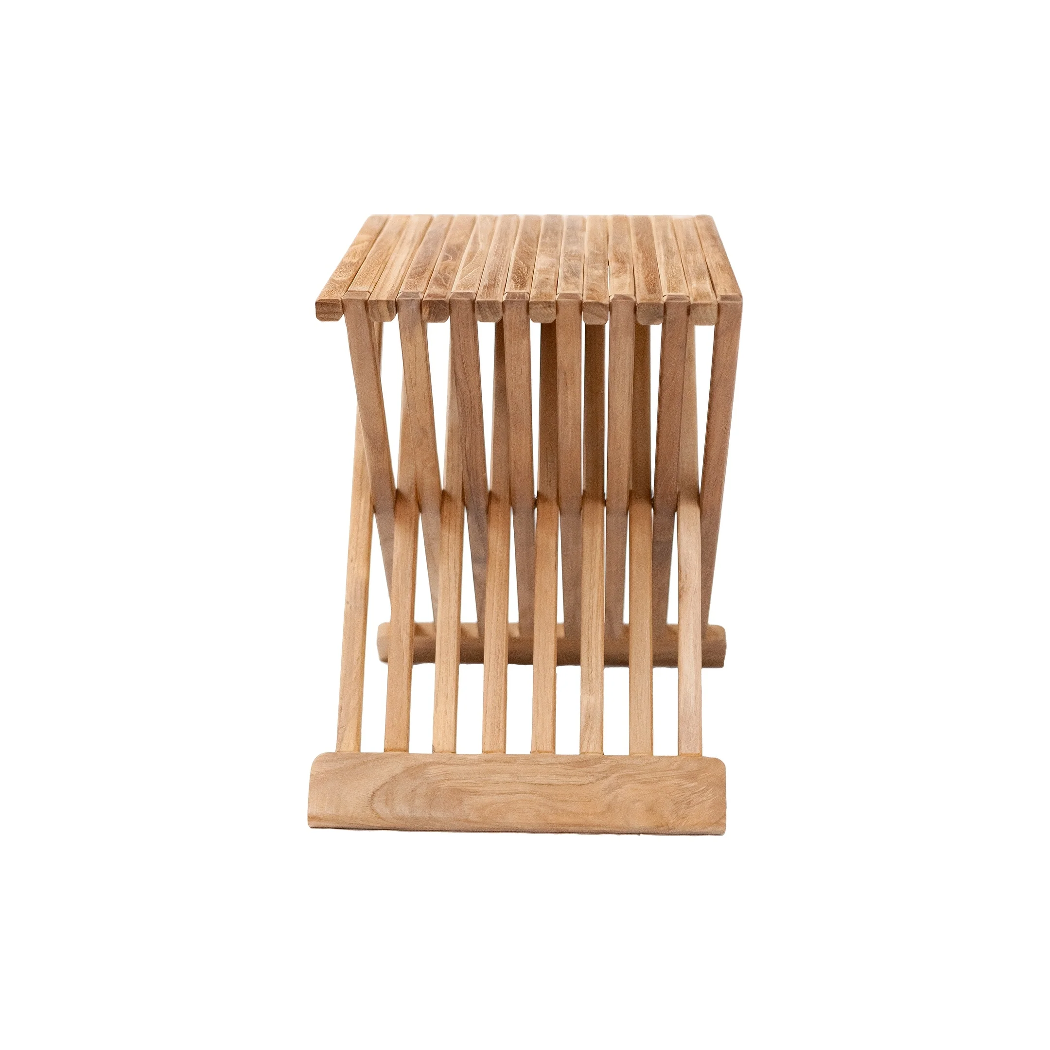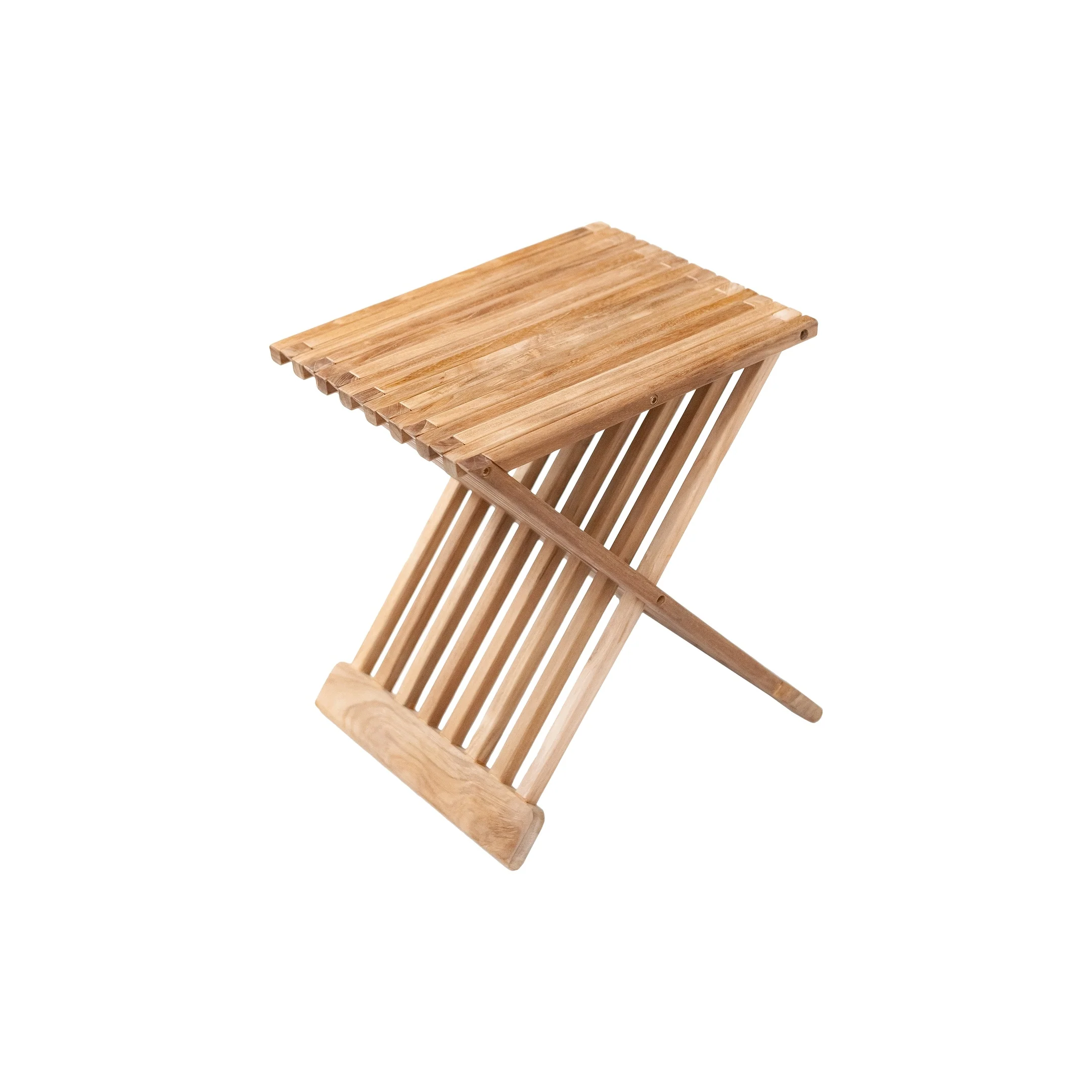 Add a touch of simplicity and functionality to your living spaces with our Nordic Style Natural Teak Folding Stool with Horizontal Slats - Beige. This versatile stool is perfect for smaller areas and can be easily folded to move or store away. Made from 100% solid teak wood, this stool is not only naturally water-resistant but also durable enough to be used both indoors and outdoors. Use it as a shower stool, side table, plant stand or extra seating in your backyard. With its elegant design and compact size, this stool is a must-have for any home.