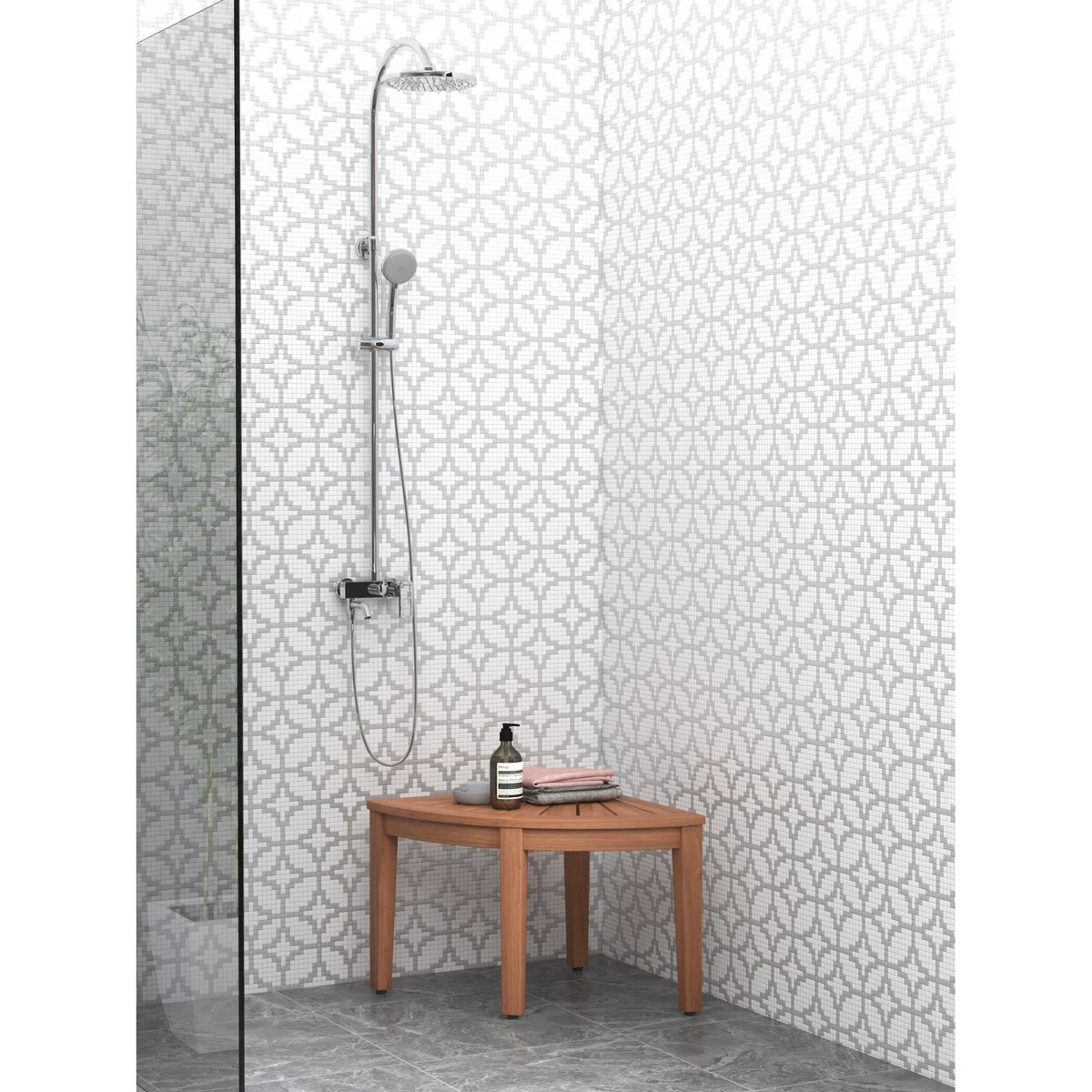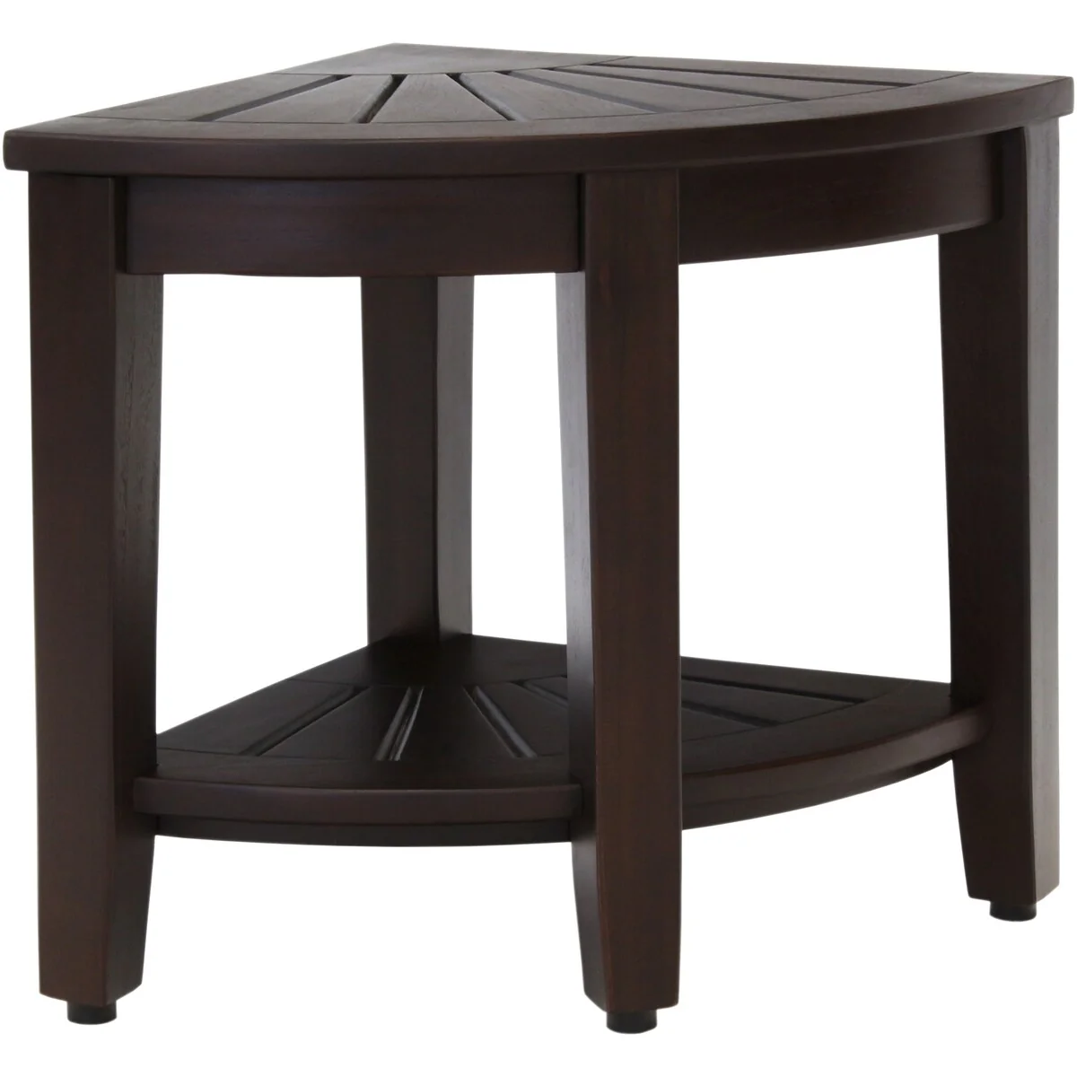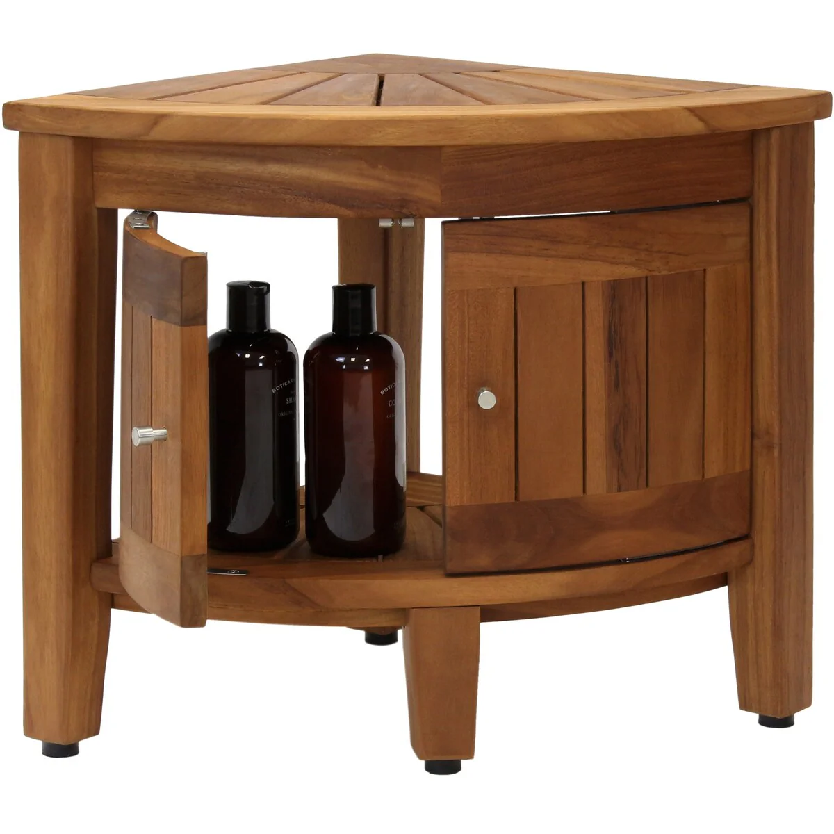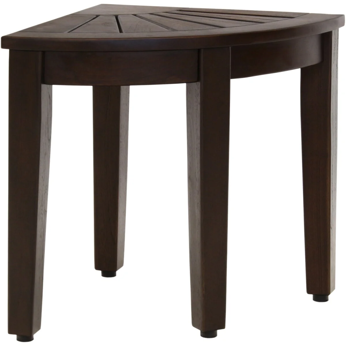 Invoke the richness of our corner teak shower bench!This gorgeous teak shower stool from our Kai™ collection was handcrafted using our unique, space-saving OptiAREA™ design, and was made to fit perfectly into your shower corner. Teak is naturally water resistant and durable, which makes this teak corner shower seat ideal for use as a teak shower bench or a lovely patio seat.Natural teak colorPolished finishCorner-styleYour teak shower seat includes all stainless steel hardware, plus fully adjustable stainless steel and rubber feet for safety and stability. We are so confident that you will love this Teak Corner Shower Seat that we offer a 30 day satisfaction guarantee and 5 year warranty on all of our products!