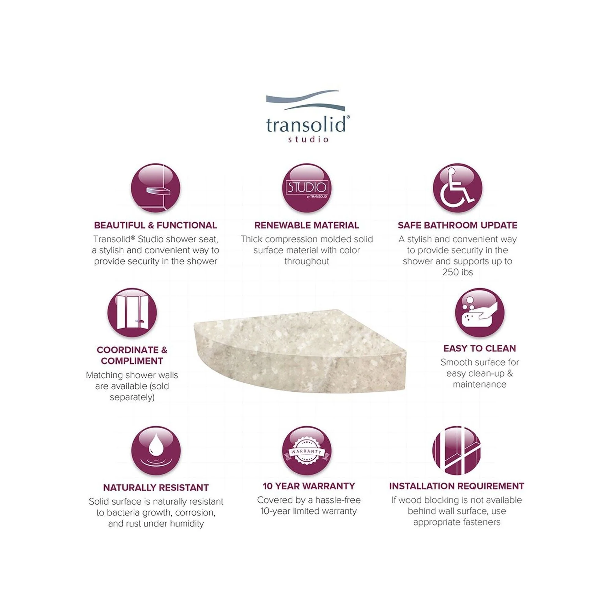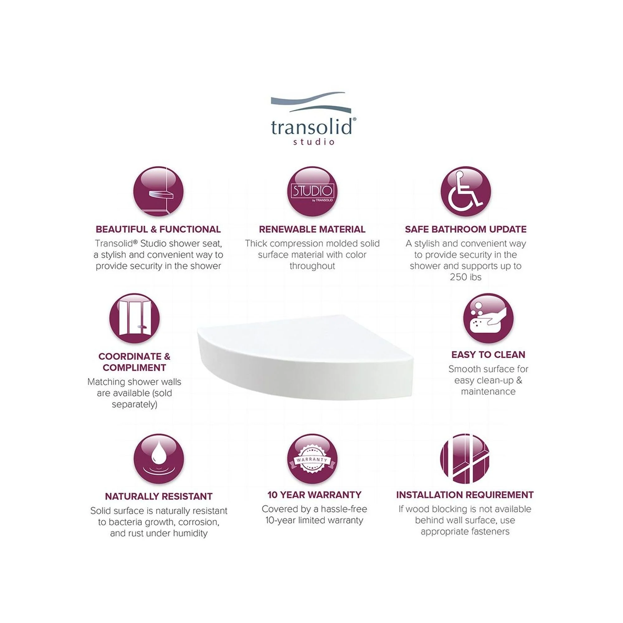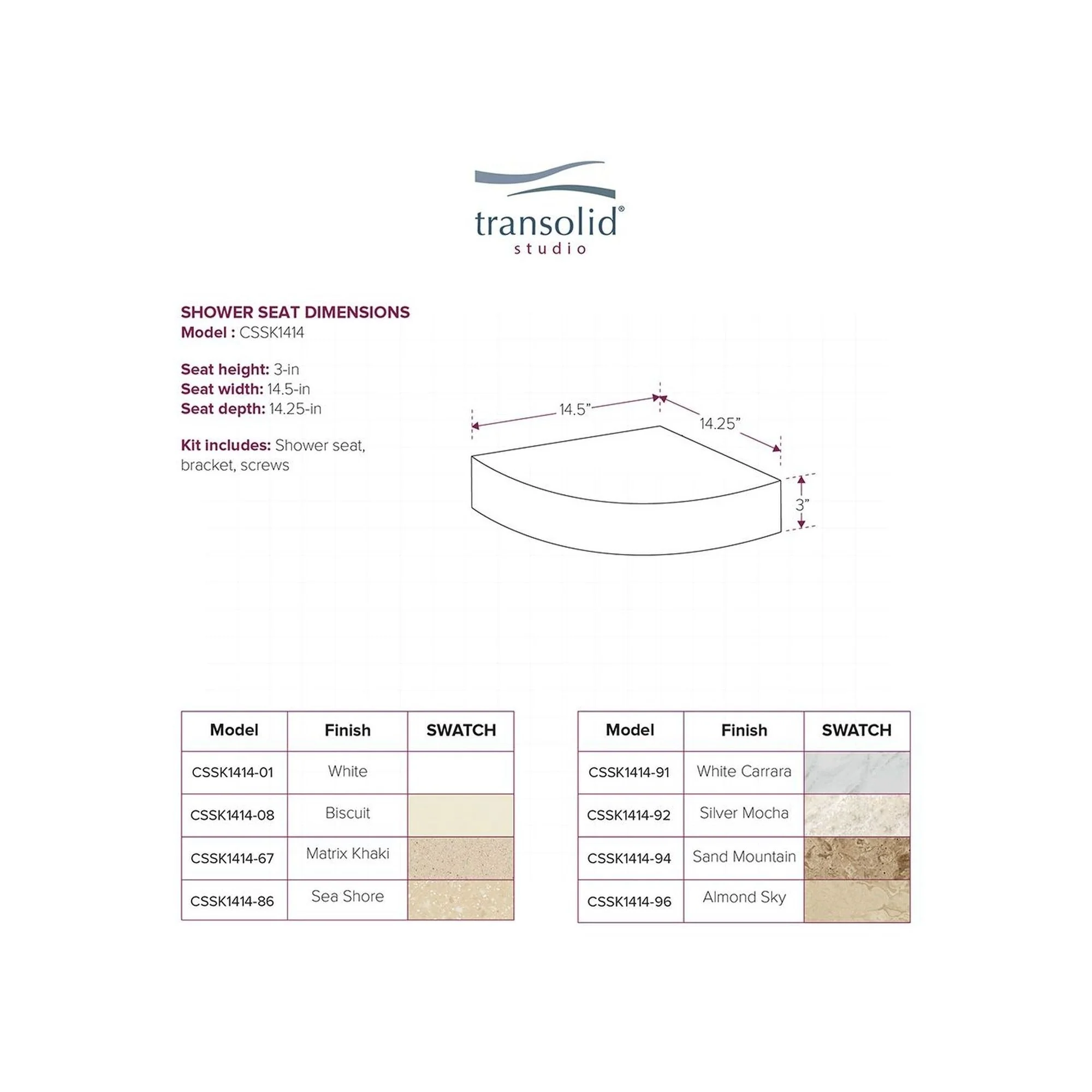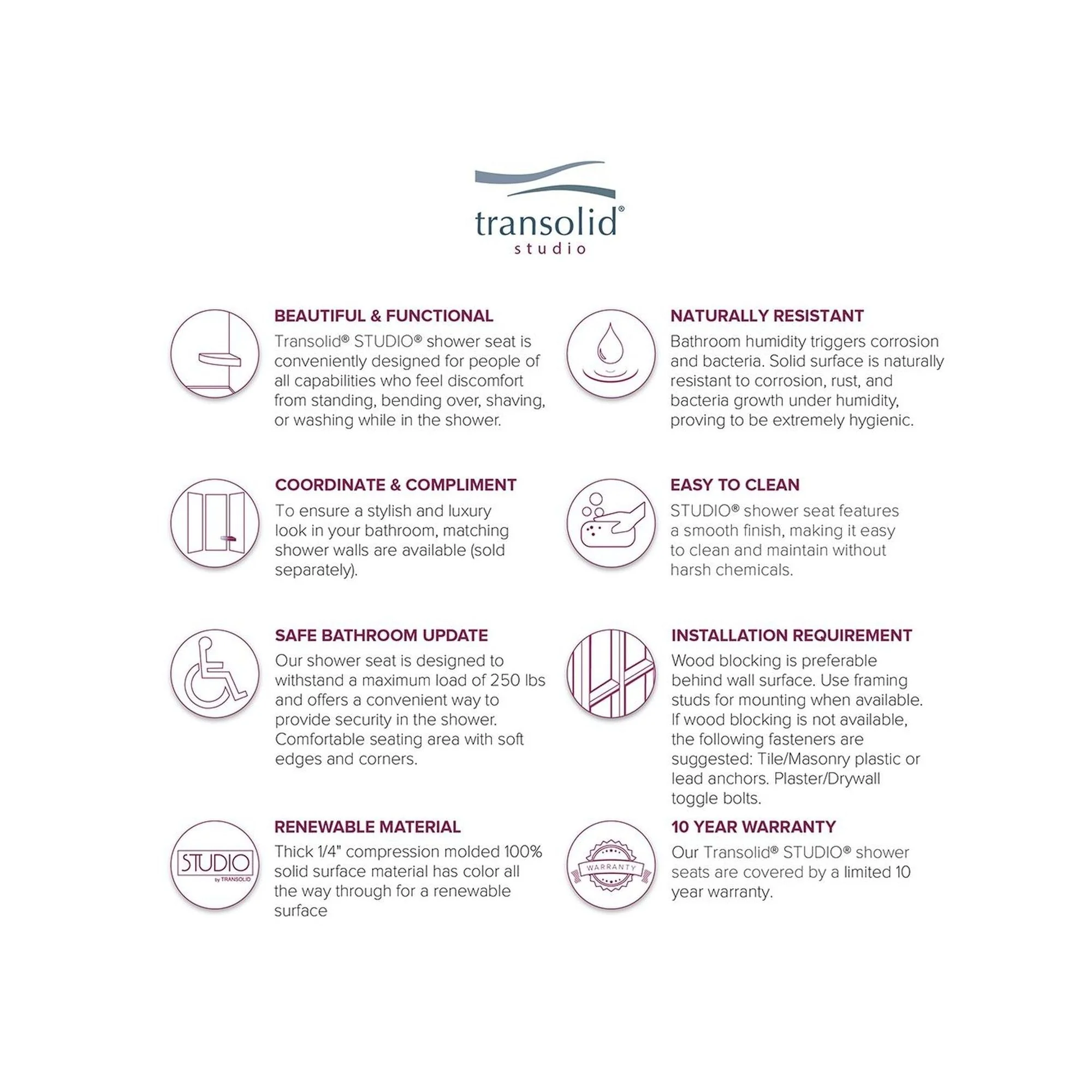 - Kit includes: One transolid shower seat, One stainless steel mounting bracket, stainlss steel pan head screws