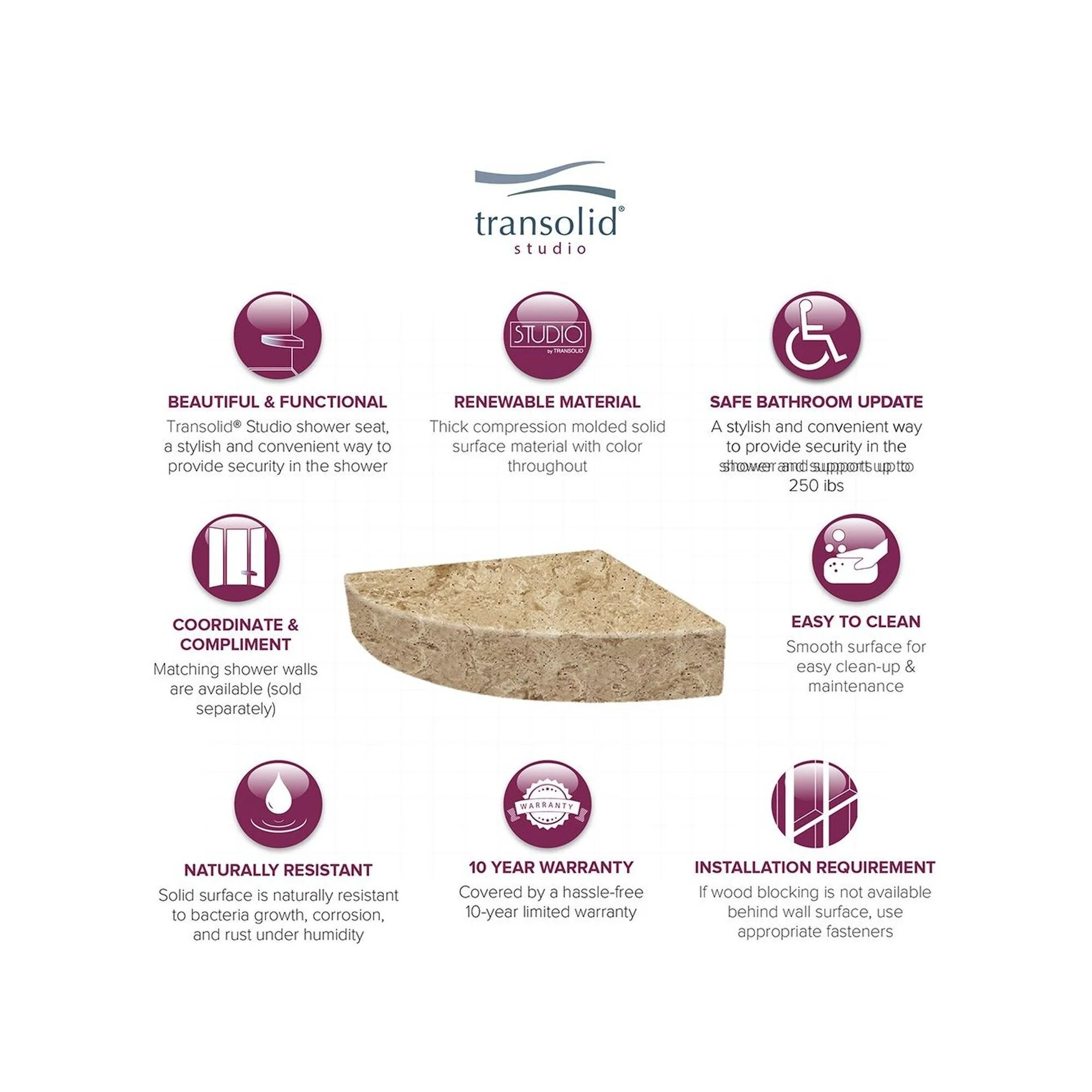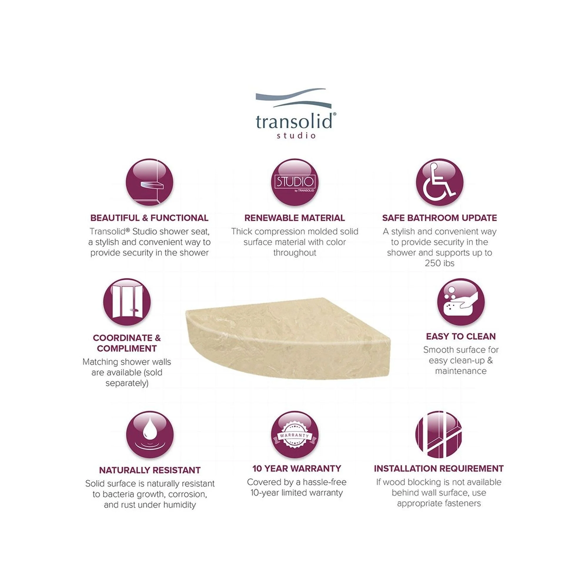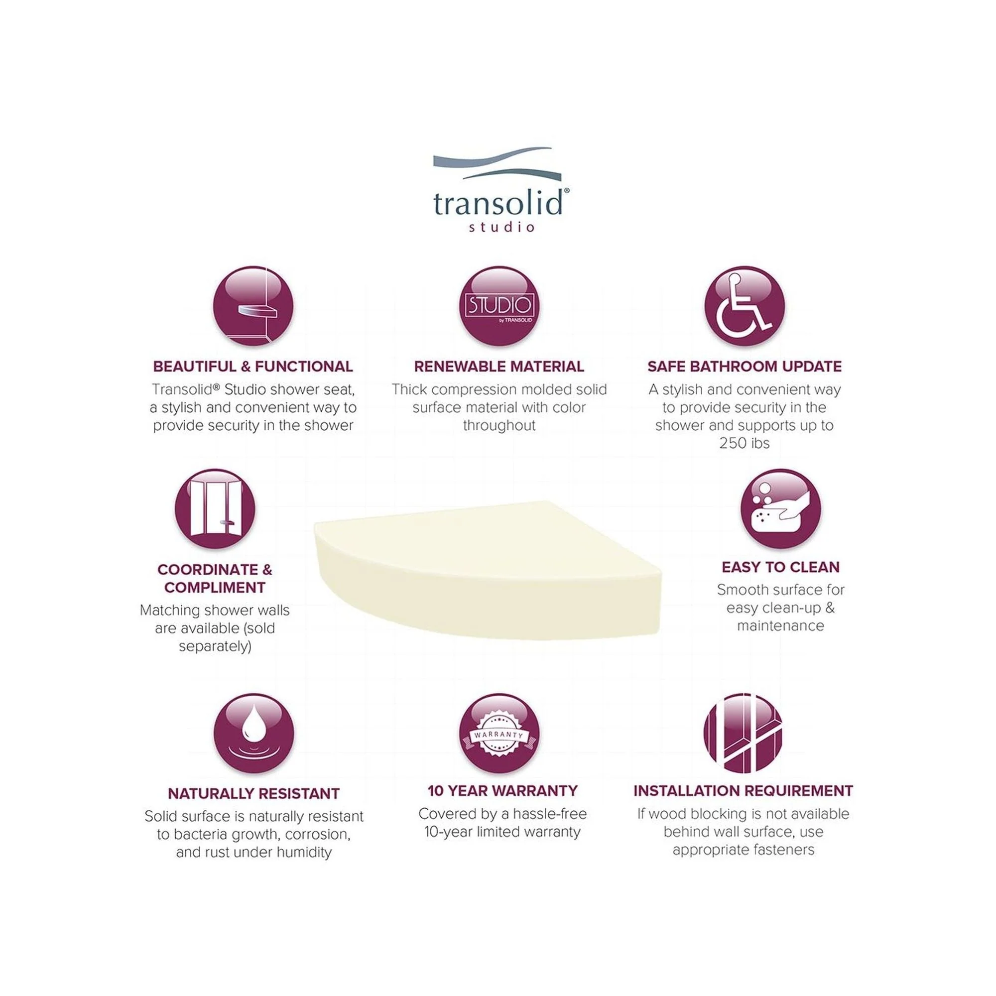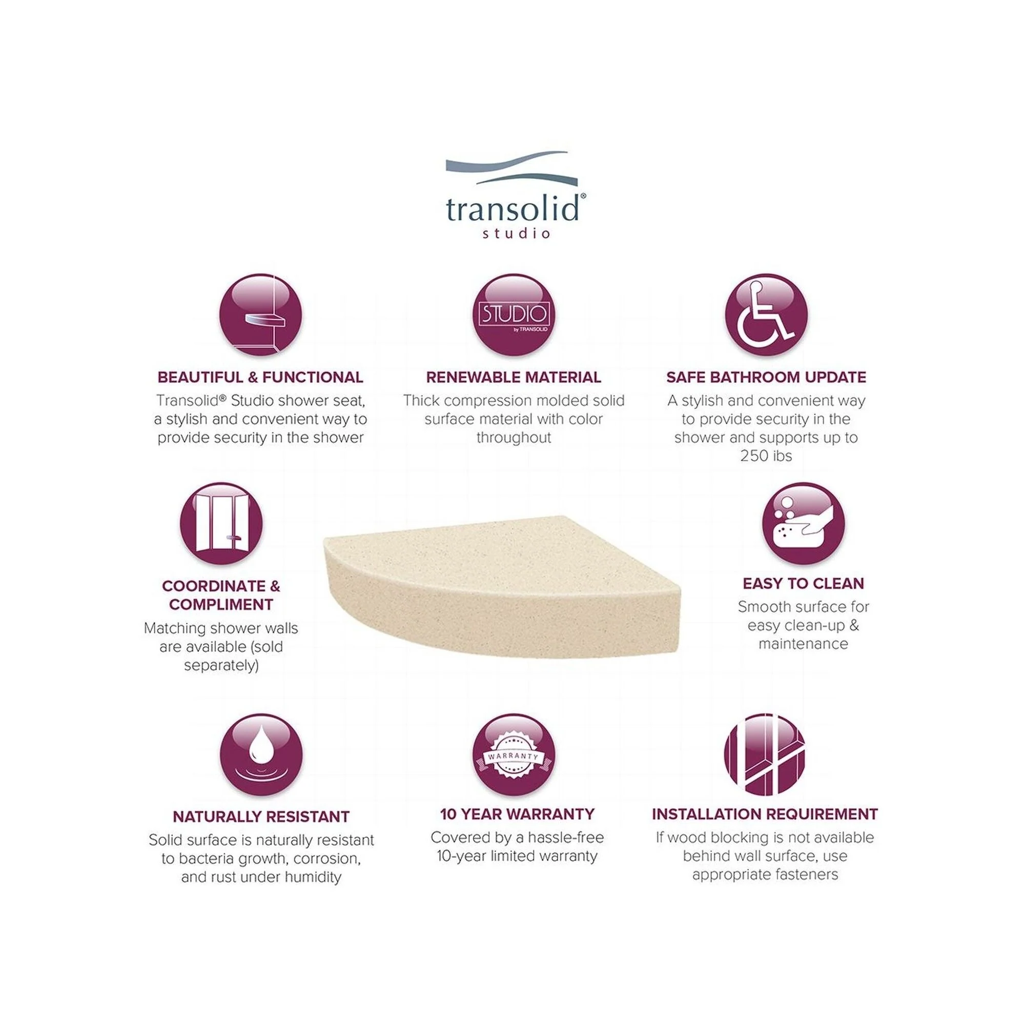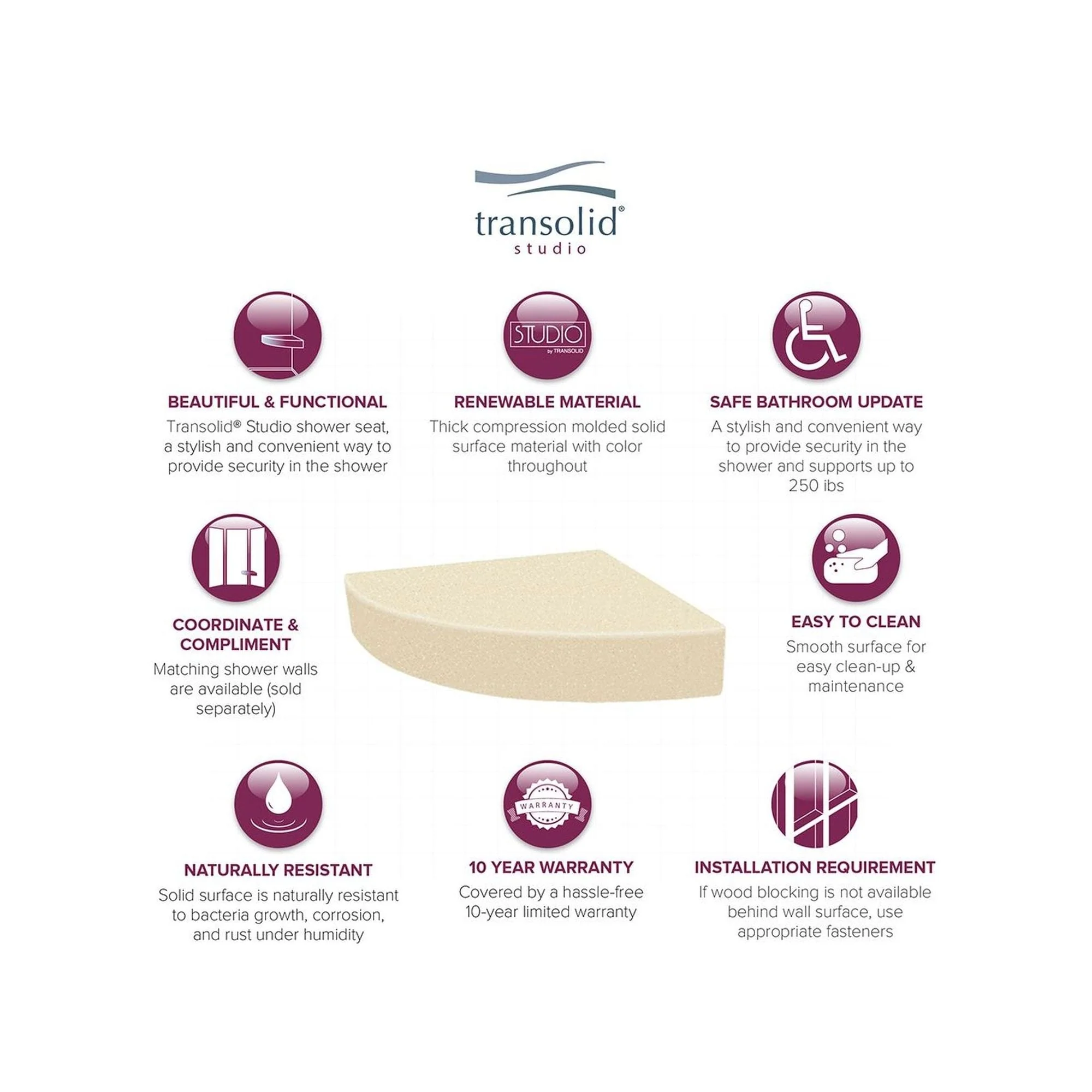 - Kit includes: One transolid shower seat, One stainless steel mounting bracket, stainlss steel pan head screws