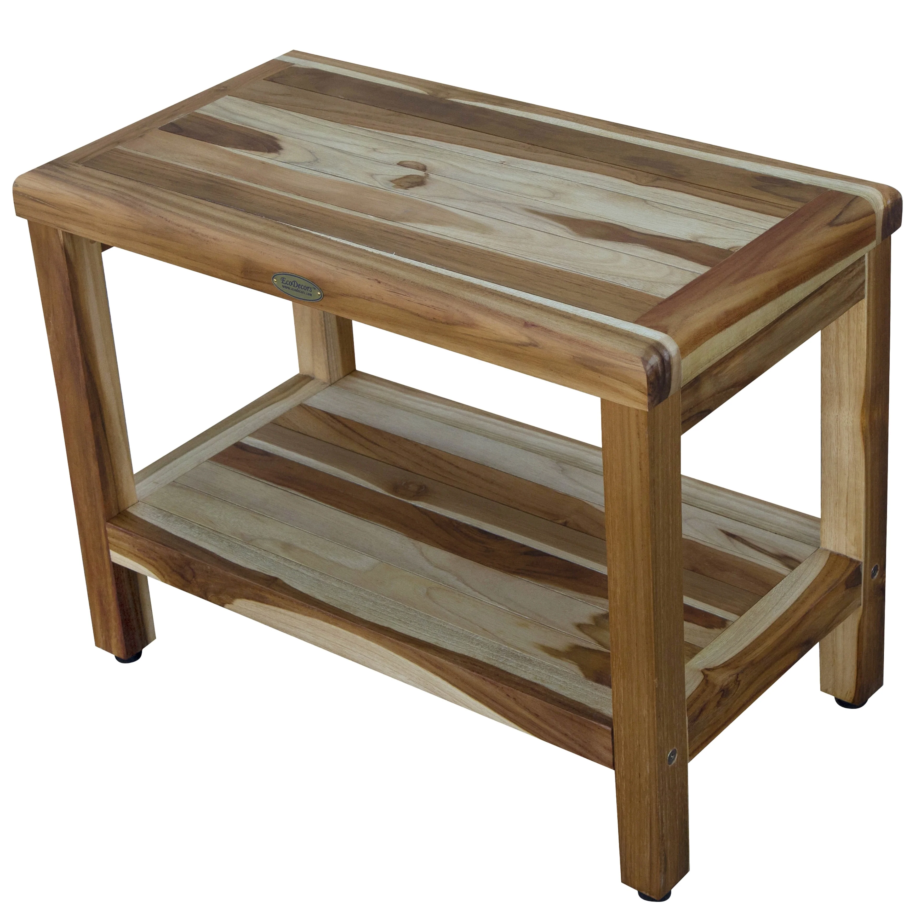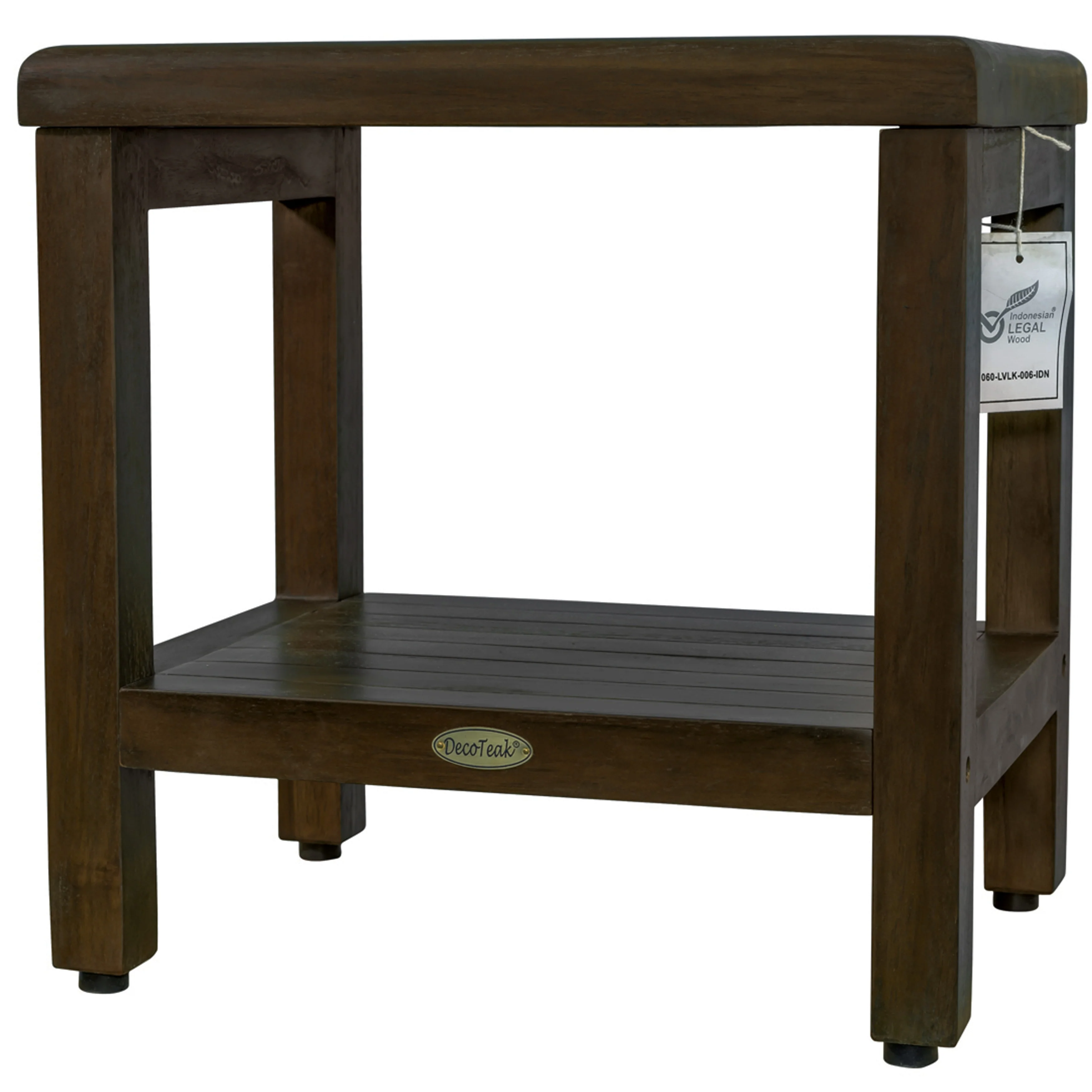 DecoTeak Eleganto 18' Solid Teak Shower Bench With Shelf - WoodLand Brown Finish