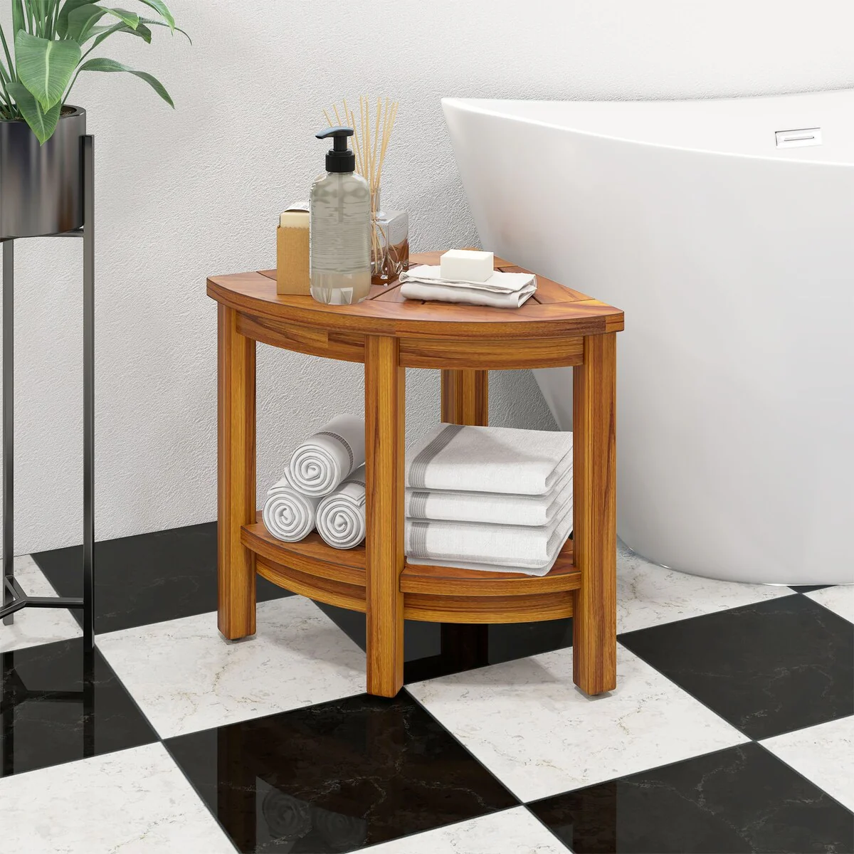 Corner Shower Bench with Storage Shelf, Shower Stool for Inside & Outside Shower, for Bathroom