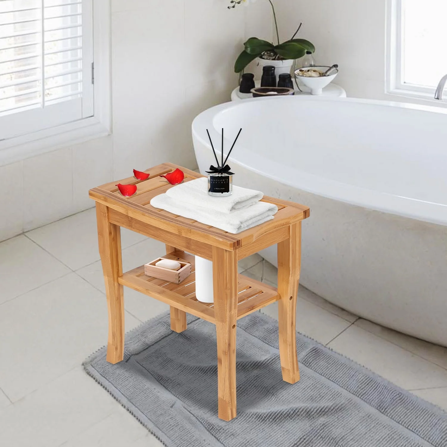 Sorbus Bamboo Shower Bench/Stool Wood Storage & Seating for Bathroom