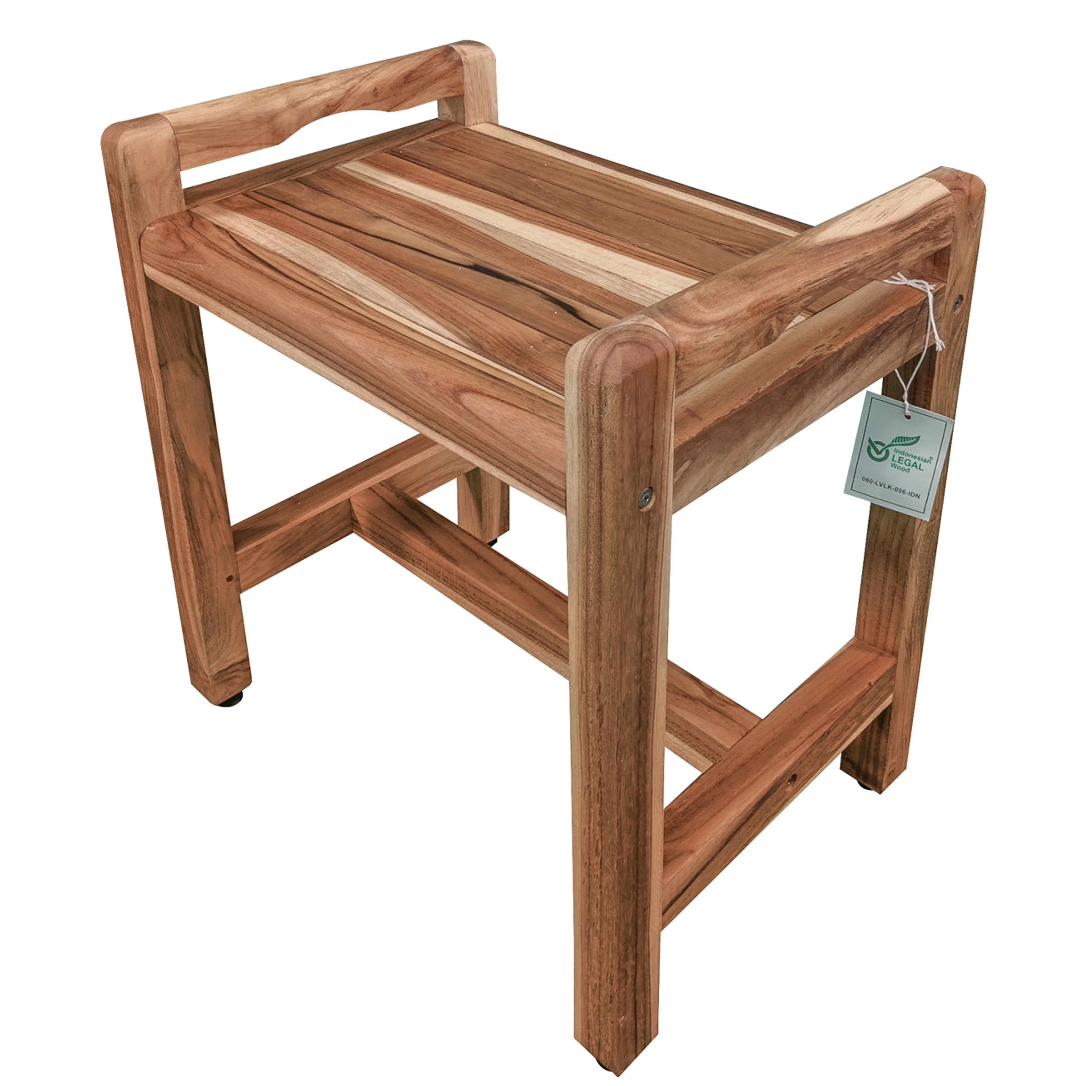 EcoDecors Eleganto 20 Solid Teak Shower Bench With LiftAide Arms - EarthyTeak Finish