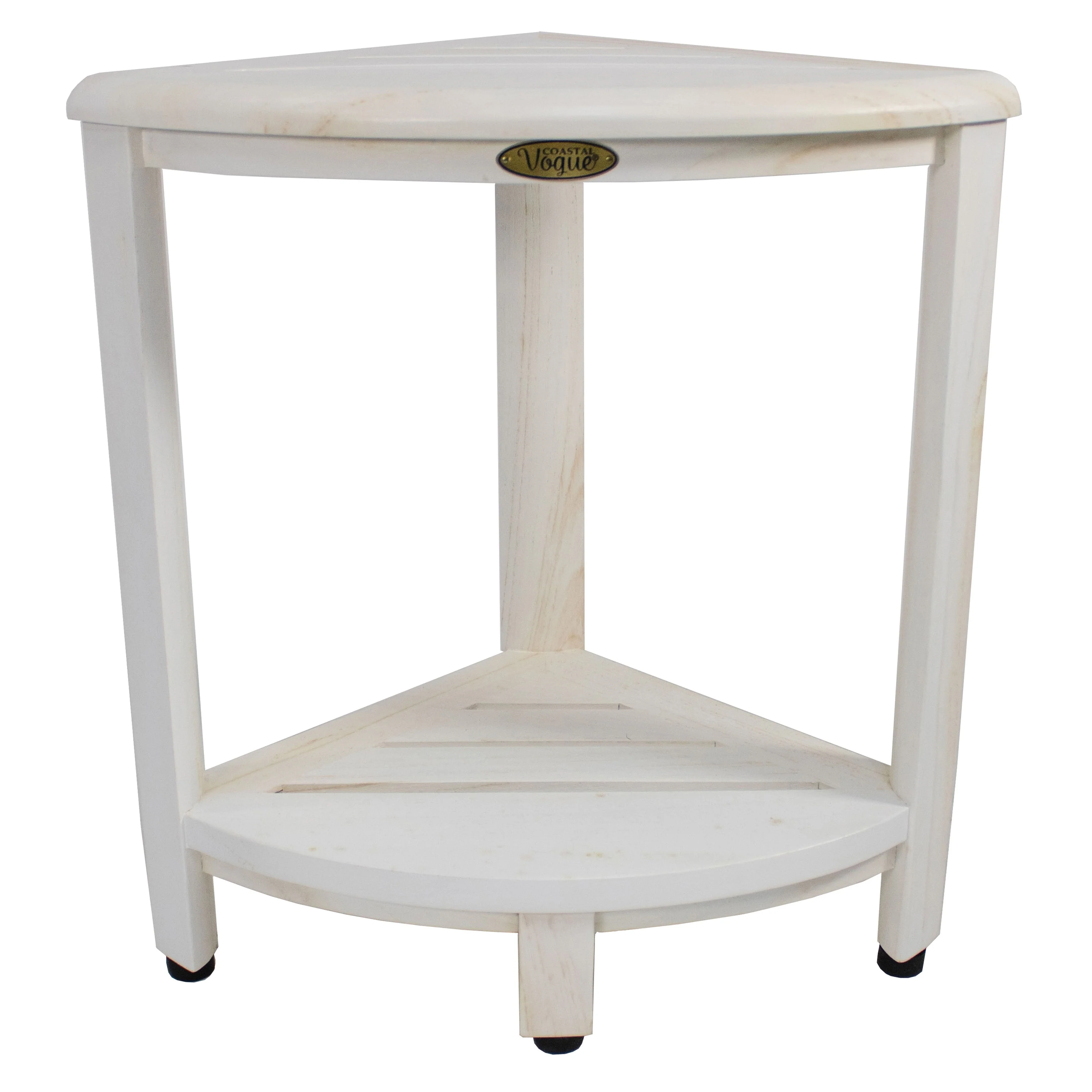 HomeRoots 17 White Teak Corner Shower Bench