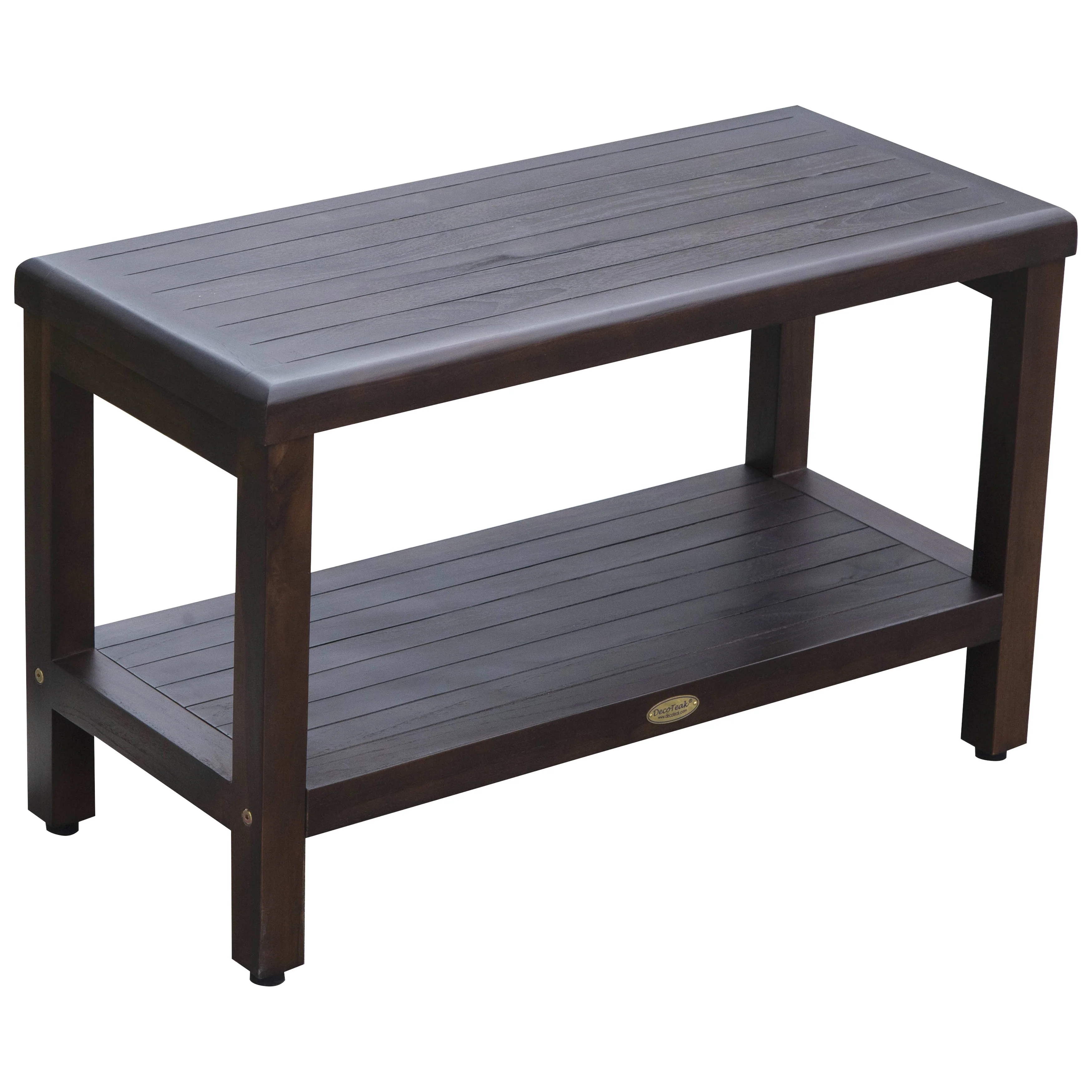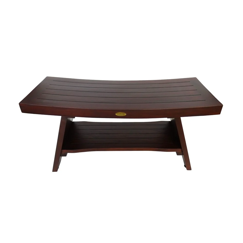 DecoTeak Eleganto 30 Extended Length Solid Teak Shower Bench with shelf - WoodLand Brown Finish