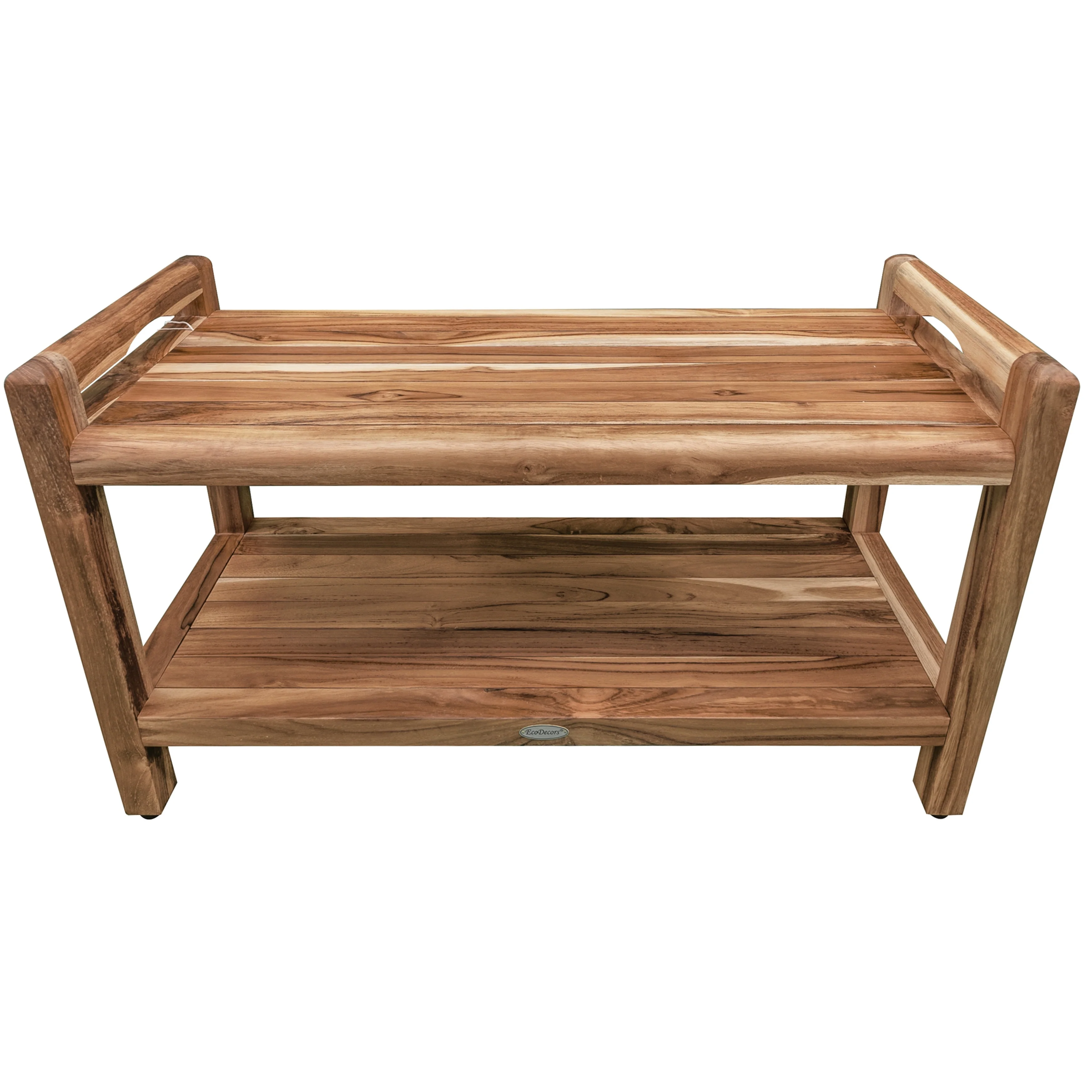 EcoDecors Eleganto 35 Solid Teak Shower Bench with Shelf And LiftAide Arms - EarthyTeak Finish