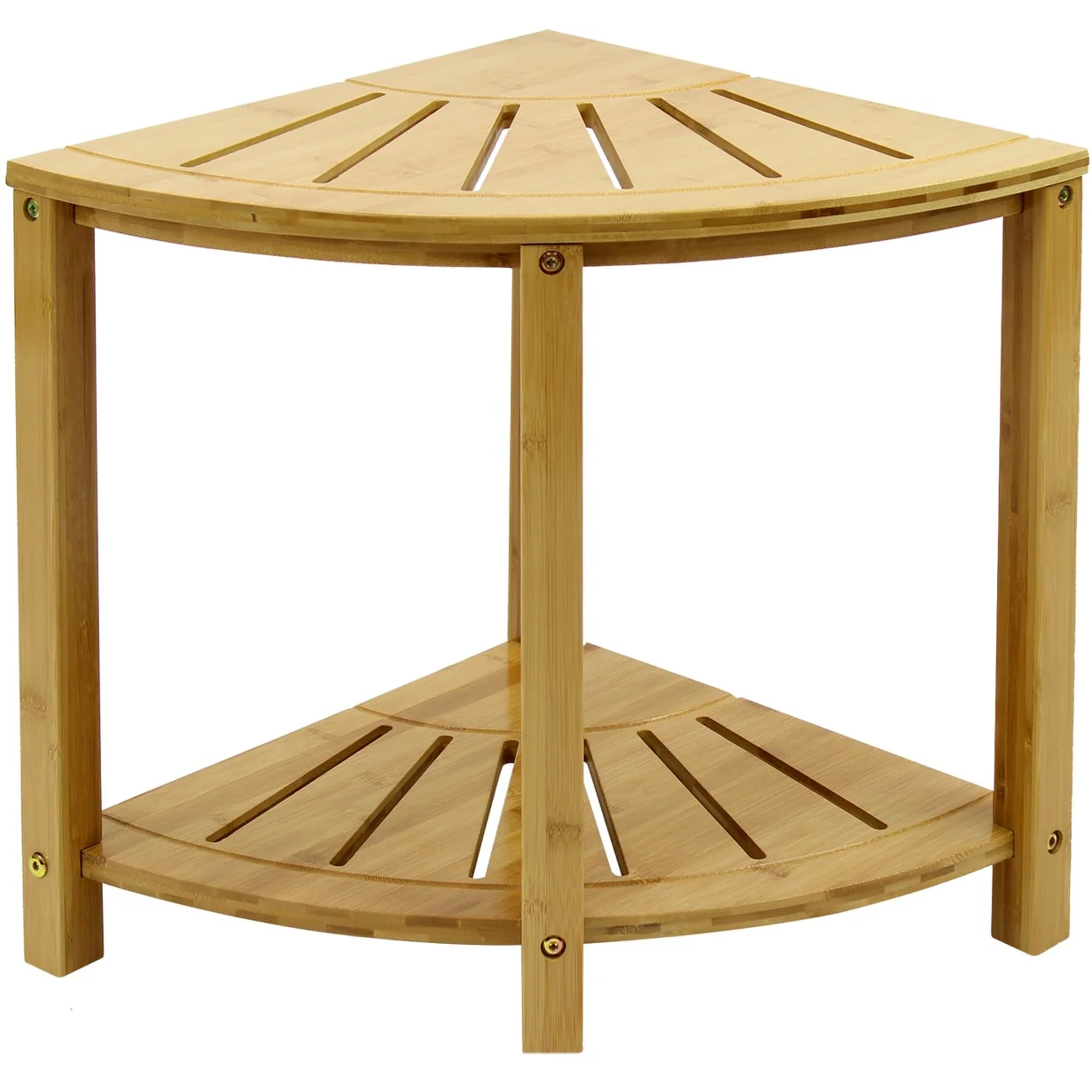 2-Tier Bamboo Corner Shower Stool Bench with Storage Shelf