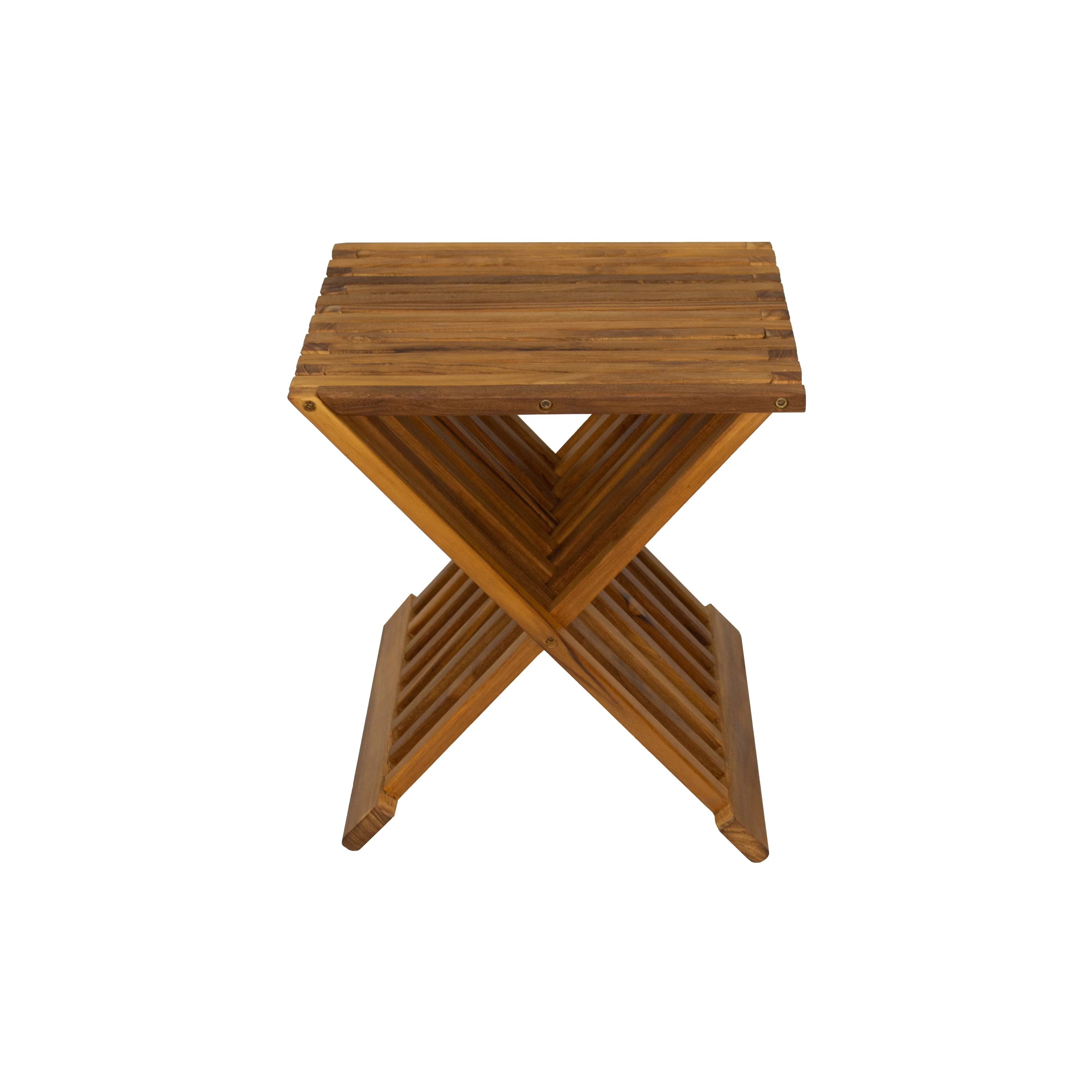 Nordic Style Natural Teak Folding Stool with Horizontal Slats - Beige