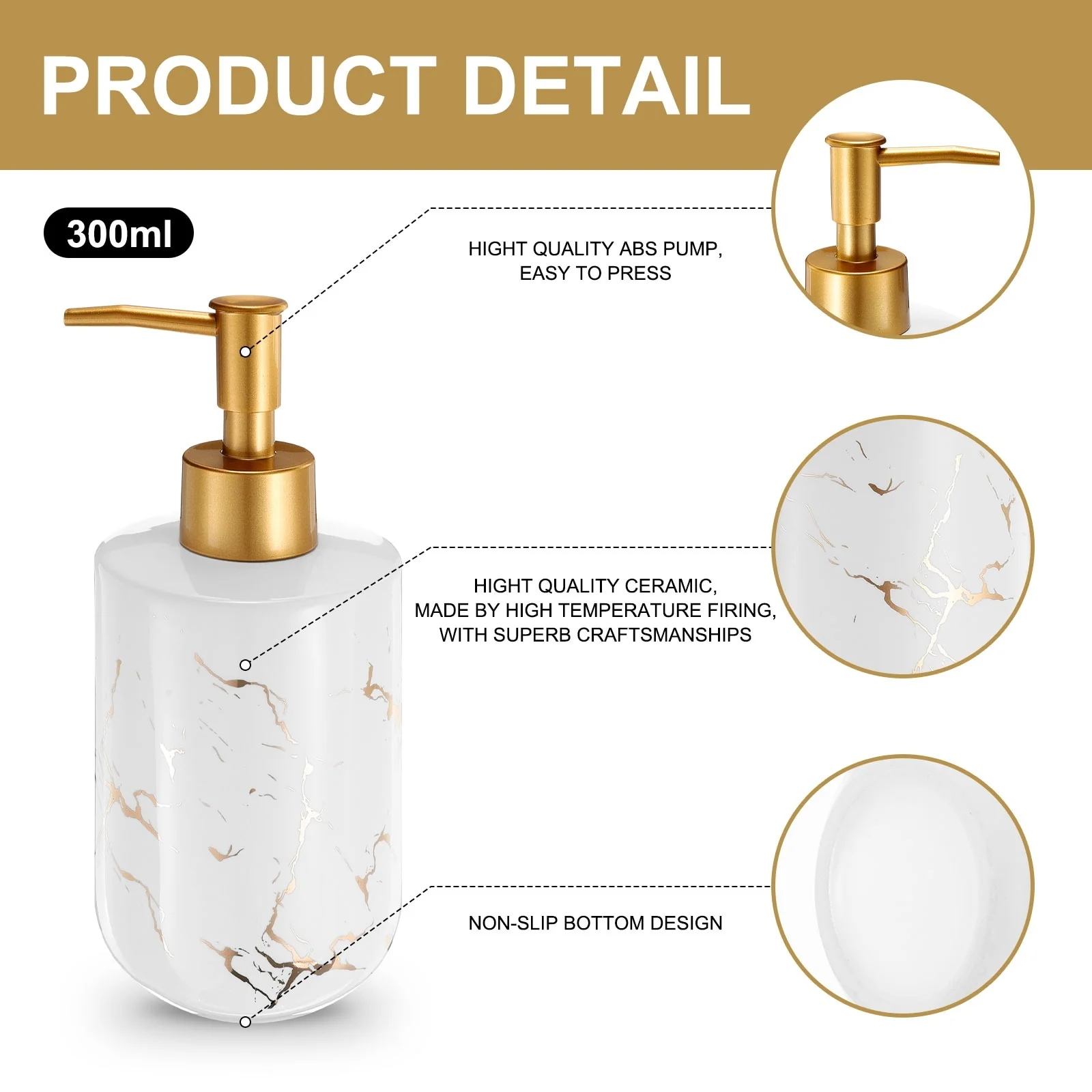 Elegant Decoration: This hand soap dish soap dispenser has a high-scale design that perfectly matches various room decorations and improves the sense of luxury of your home.