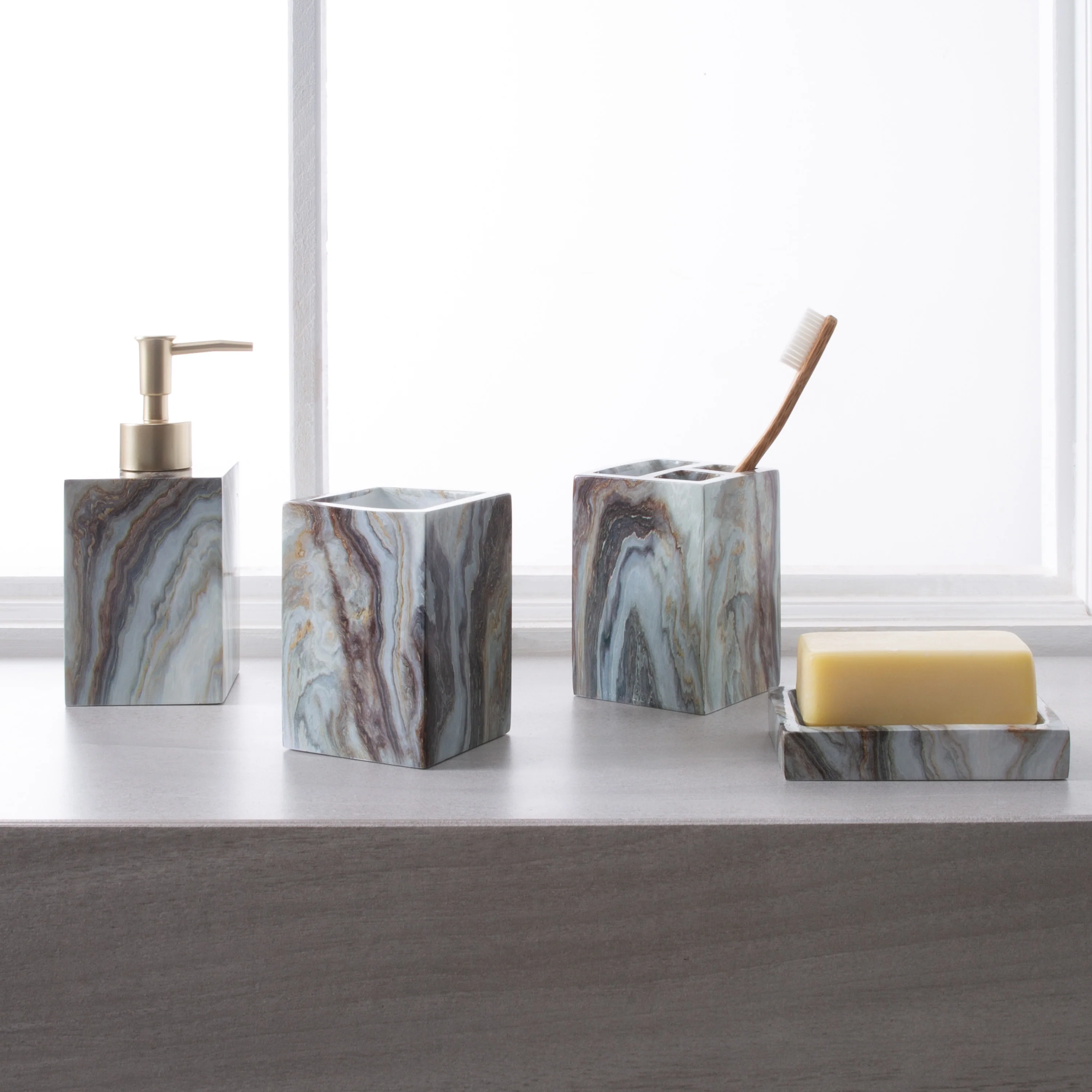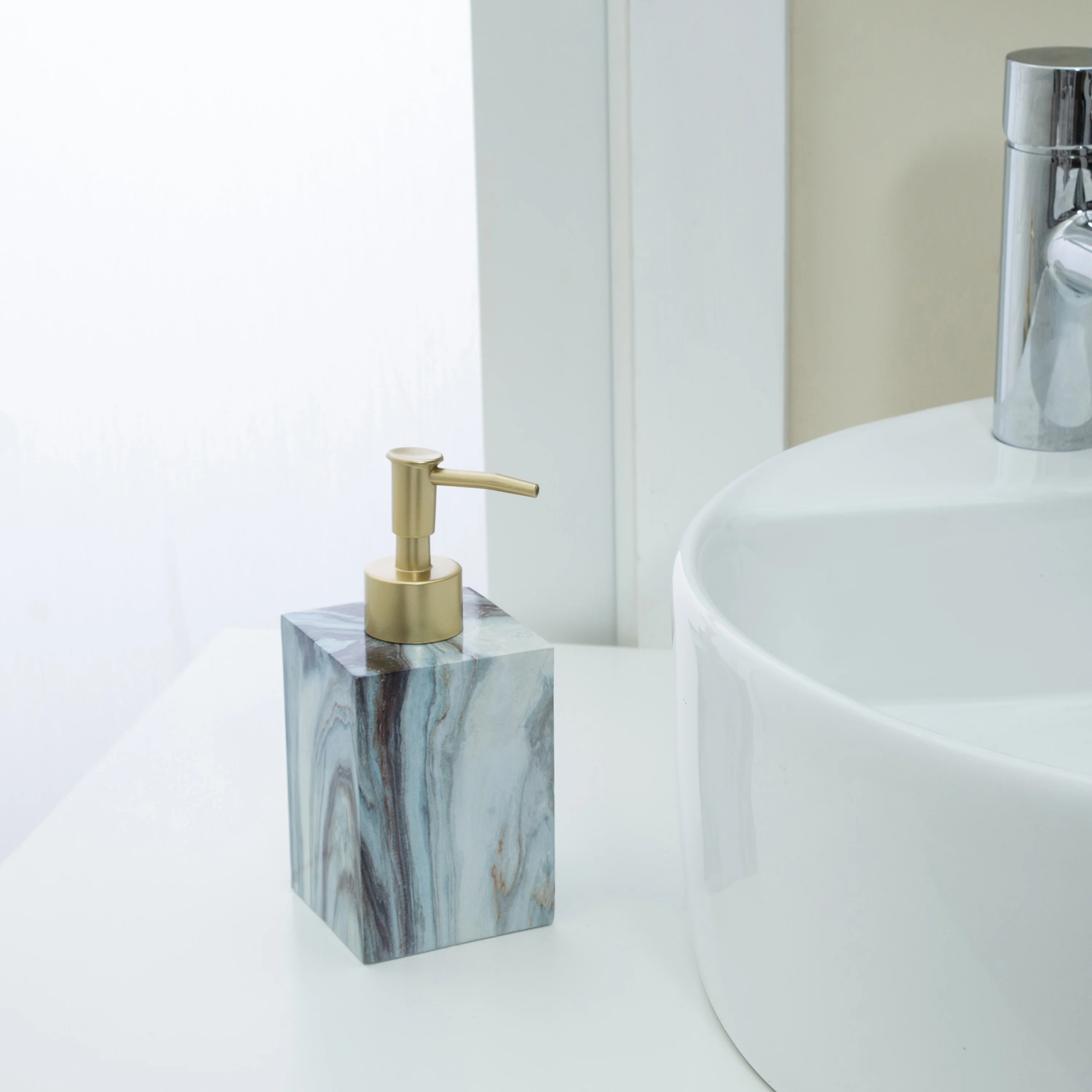 Update your bathroom with the Elle Décor Square Agate Soap Dispenser. It is a modern, stylish, and functional accent for your kitchen or bathroom. Designed with a refillable dispenser this pump is perfect for your favorite soap or lotion. The pump is easy to use and sits nicely on your bathroom countertop. Get the entire Square Agate collection and make a statement in your bathroom.