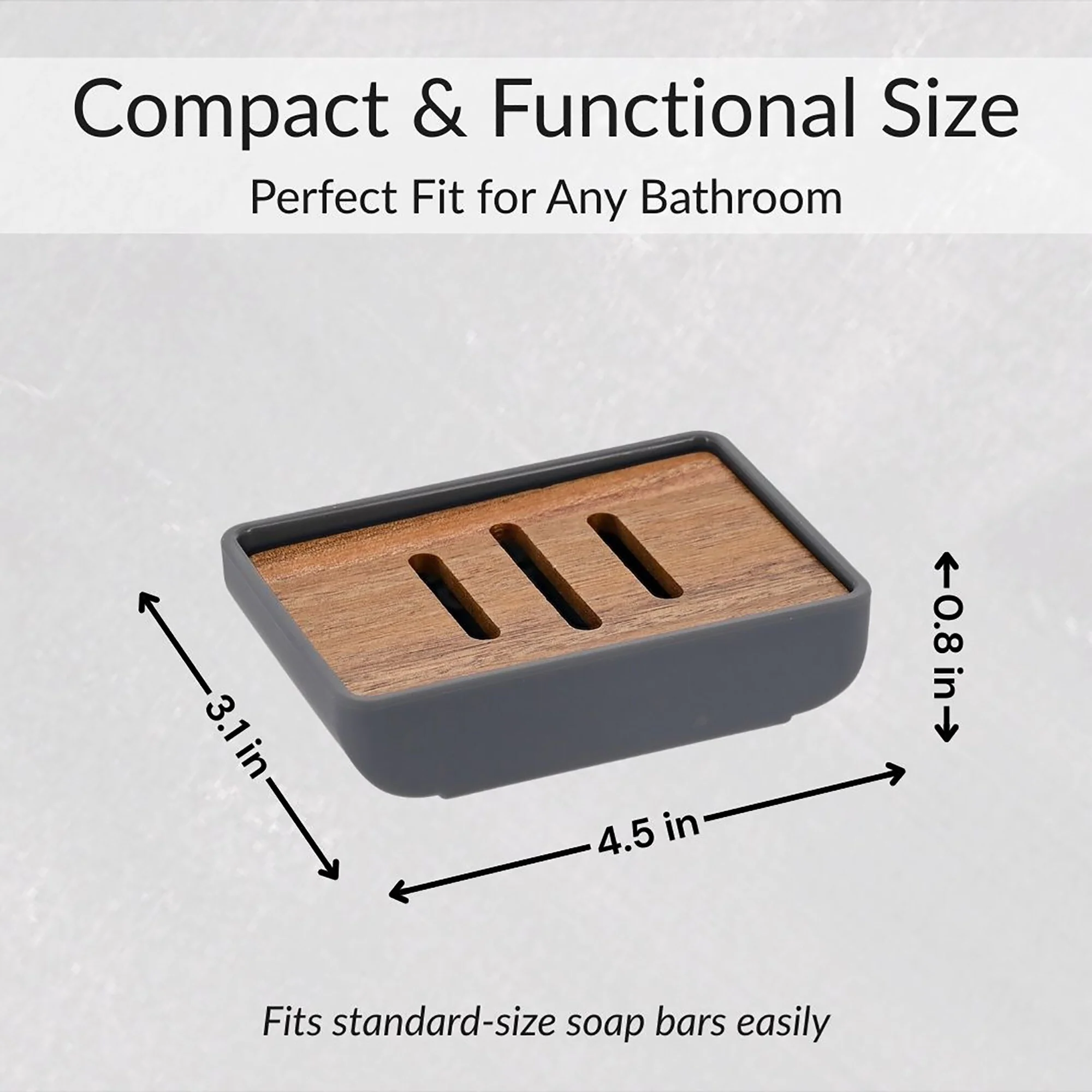- COMPACT SIZE: Measures 4.5 L x 3.1 W inches with a slim 0.8-inch profile, perfectly sized to hold standard soap bars without taking up space