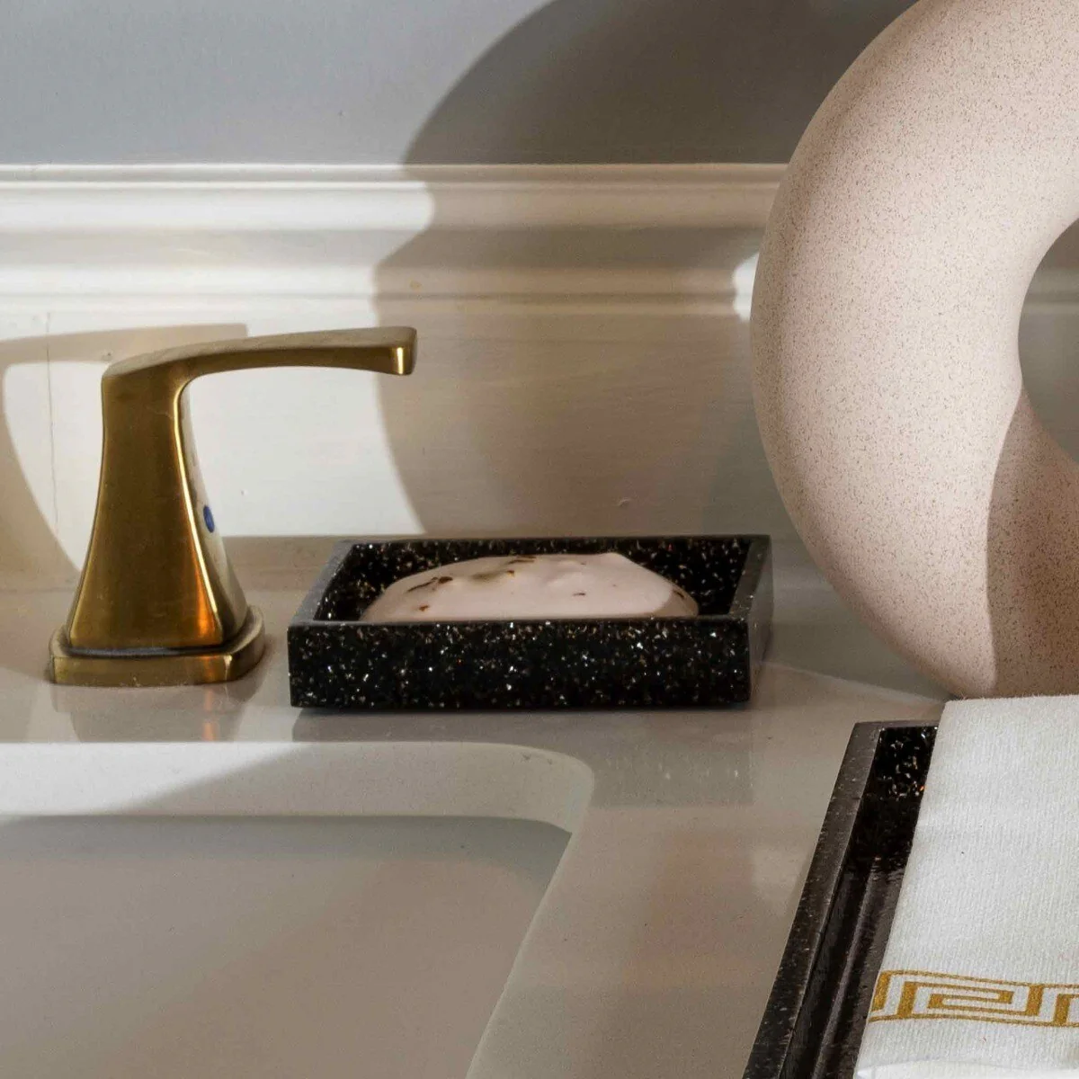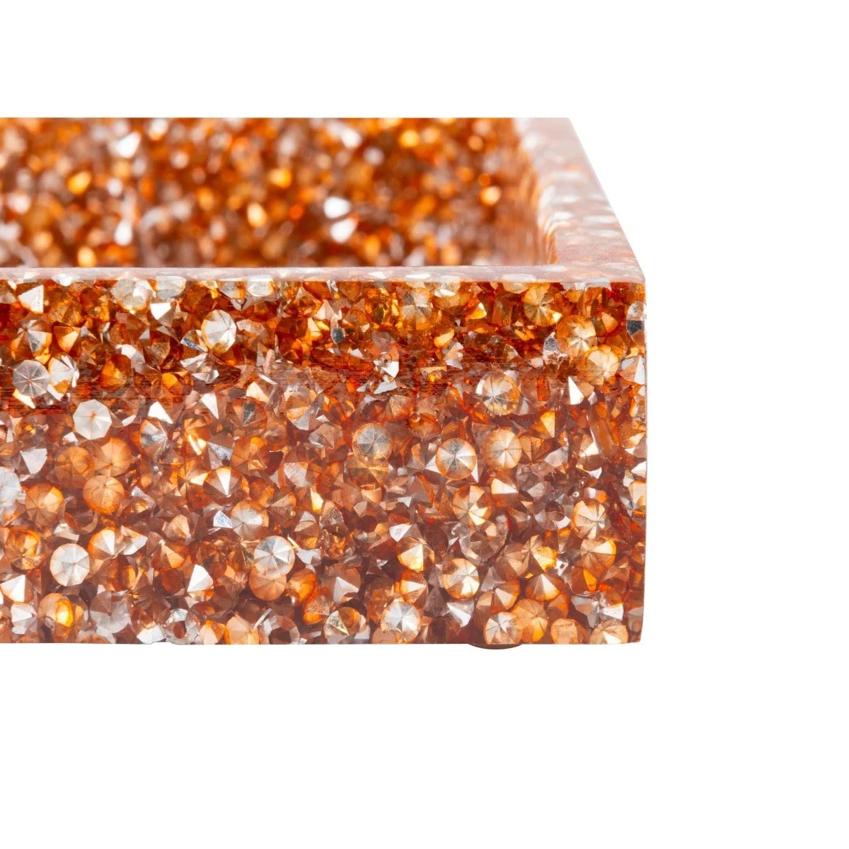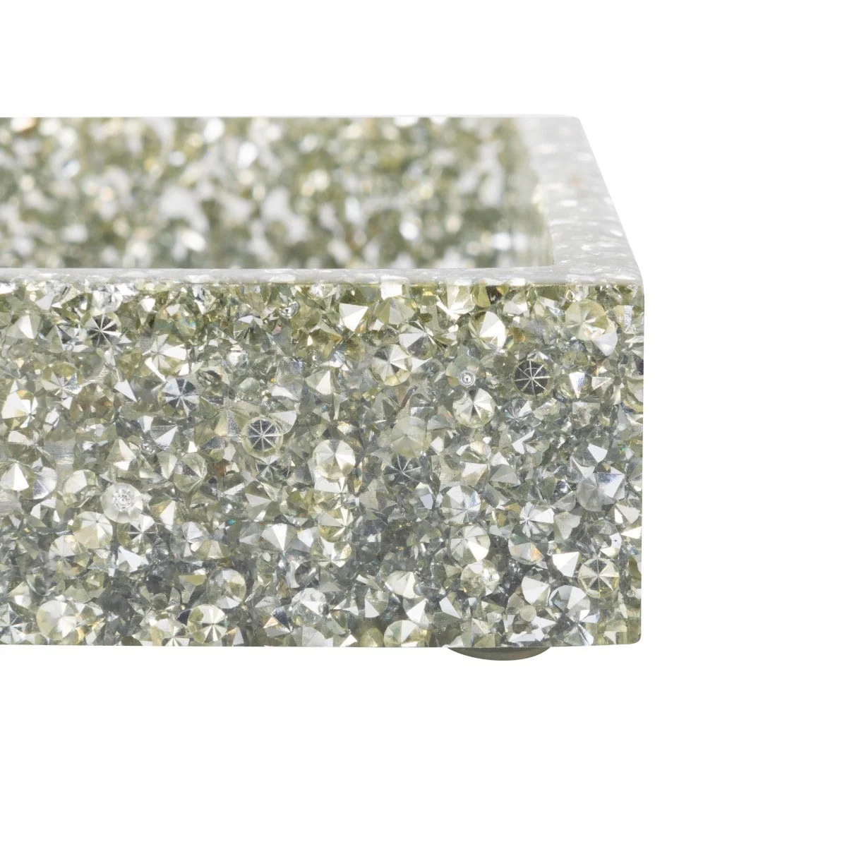 Crafted from rhinestones encased in a flawless and durable polished cast resin, this soap dish boasts precision-cut edges that are remarkably smooth to the touch. The translucent design adds a touch of elegance and allows light to dance through, creating a mesmerizing sparkle.