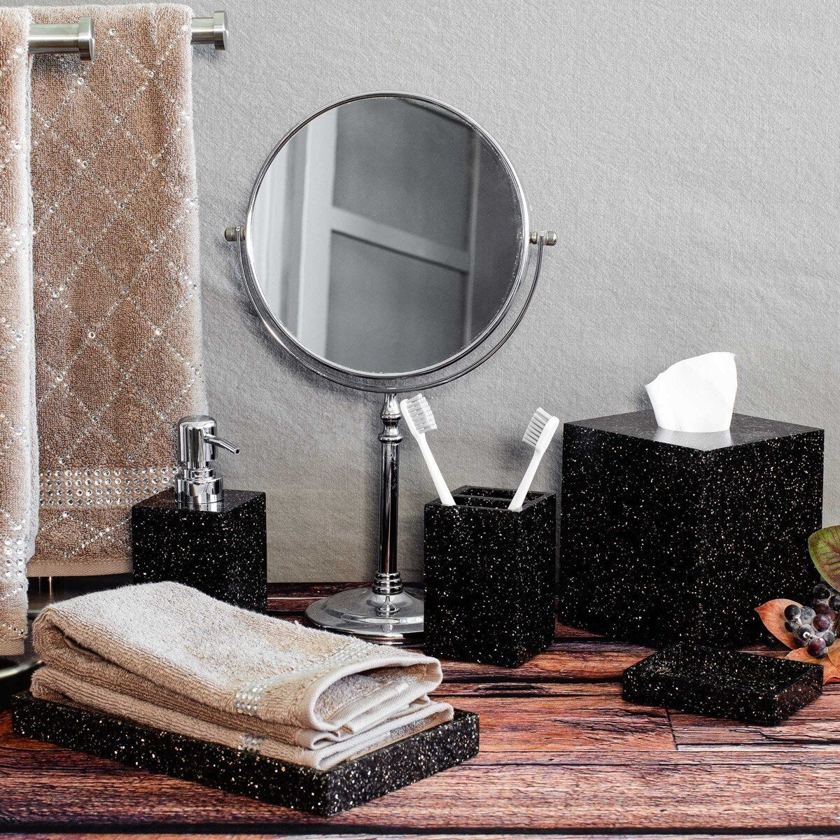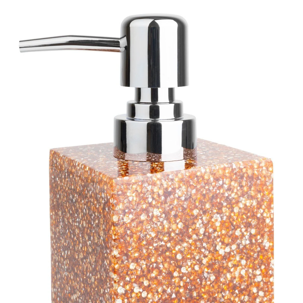 The durable resin ensures longevity and style. With dimensions measuring 6.5” in length and 2.5” in both width and height, this dispenser adds a touch of glamour to your space while providing practicality and charm to your daily routine. To keep its shine, simply run it under water and use a gentle brush to remove any residue.