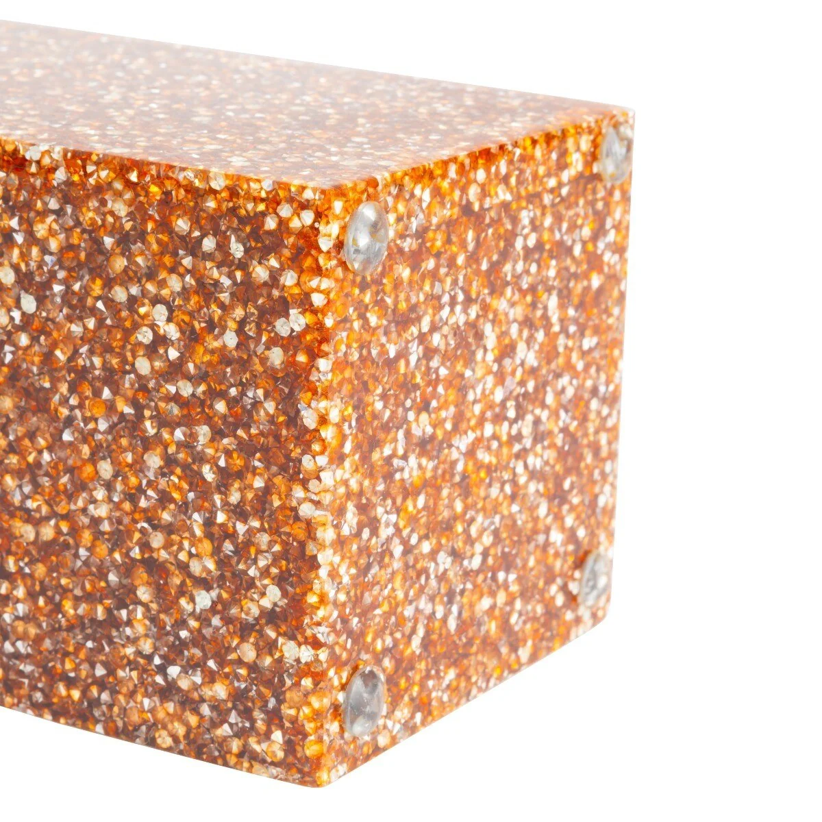 - Made of thousands of rhinestones encased in a polished, cast resin.