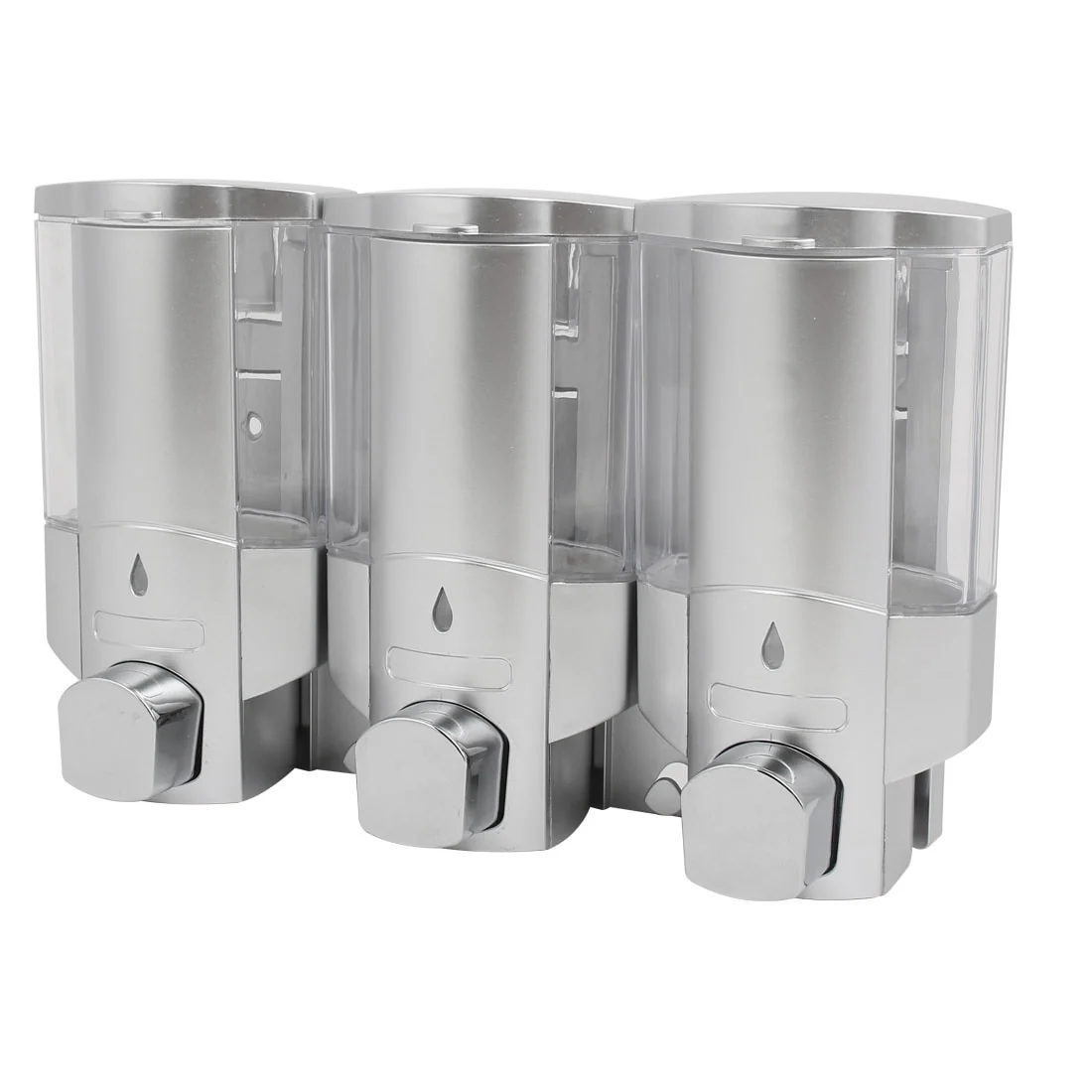 ABS Plastic Wall Mount 3 Chember Soap Dispenser Silver Tone, 300ml Capacity Each for Bathroom and Kitchen - Silver Tone