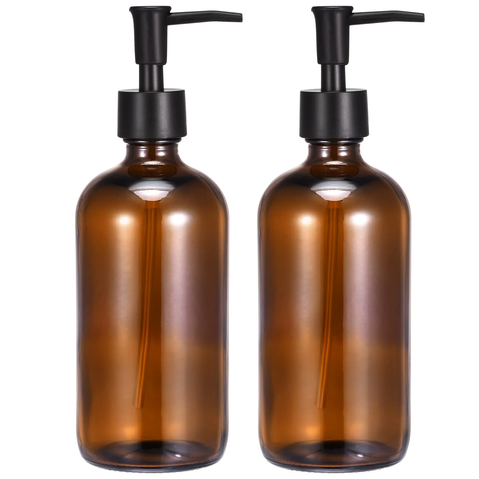 Soap Dispensers Set- 17Oz Glass Dish Hand Soap Dispenser with Pump for Kitchen Bathroom, 2Pcs Brown