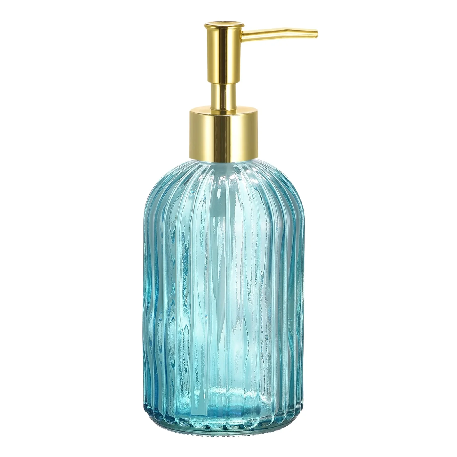 Soap Dispenser - 13.5Oz Glass Dish Hand Soap Dispenser with Golden Pump for Kitchen Bathroom