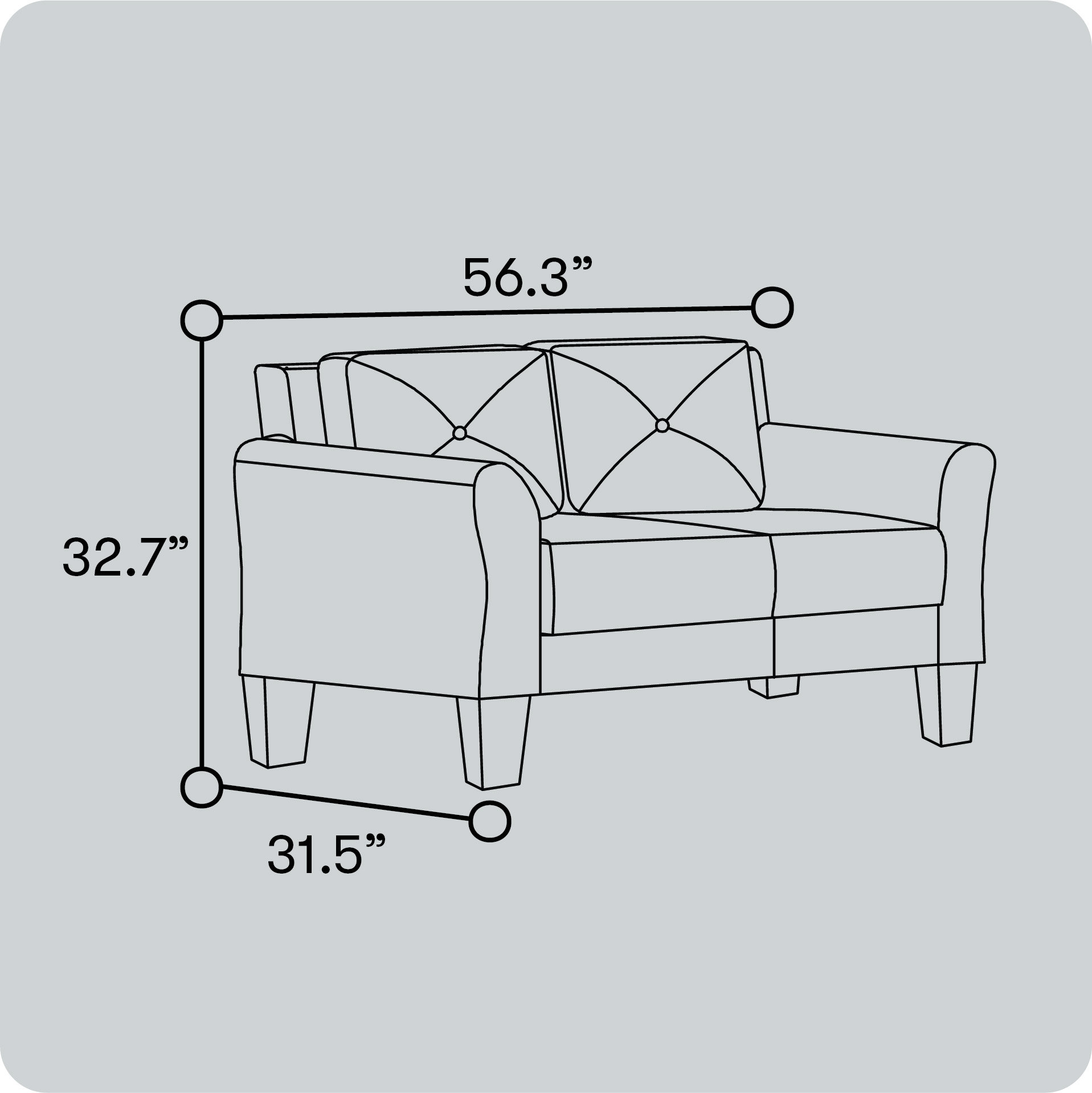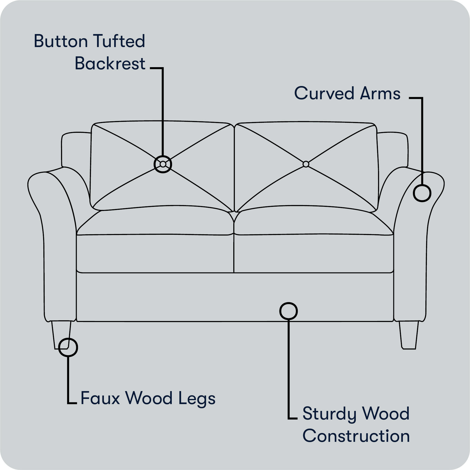 Round out any living room seating group with this loveseat and enjoy a bit of streamlined modern style. It has a solid wood eucalyptus frame, and it rests on black-finished block feet for a sleek, mid-century look we love. Wrapped in a microfiber fabric, this loveseat is filled with high-density foam and coil springs for a balance of padding and stability. Flared arms, welted edges, and diamond button tufting complete this distinctive design. Full assembly is required.