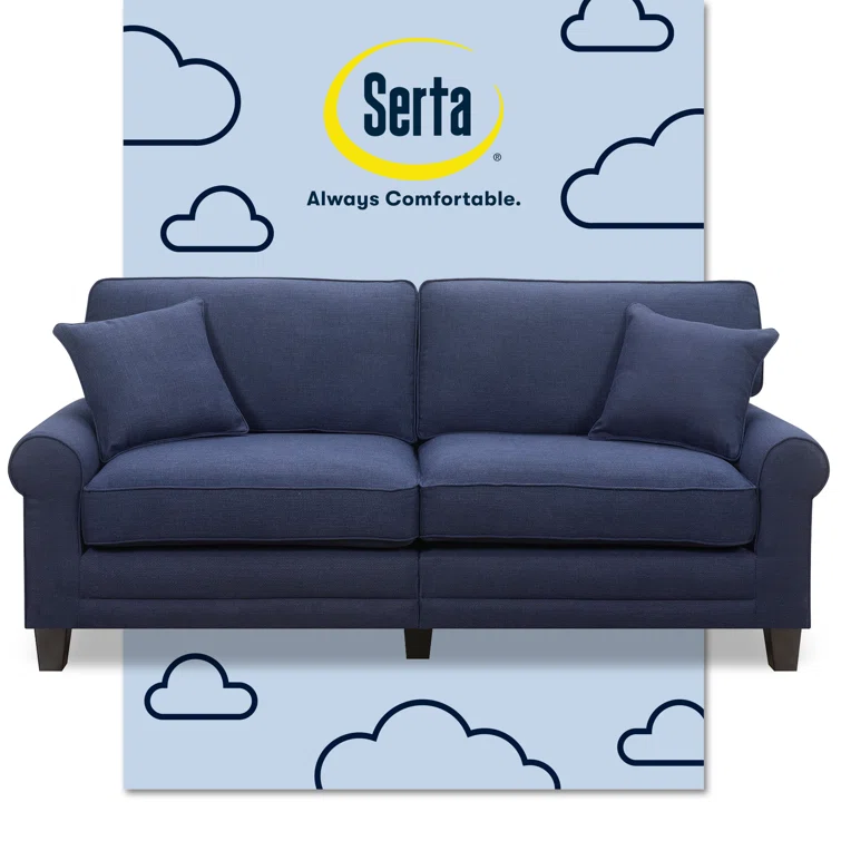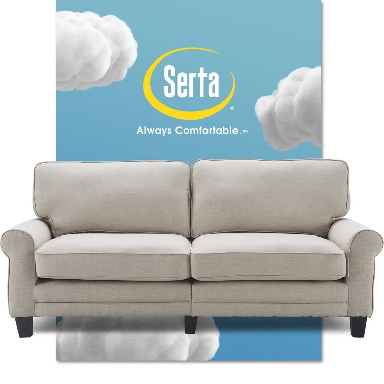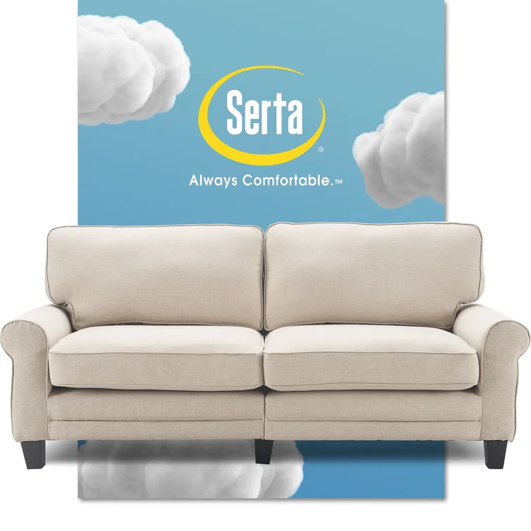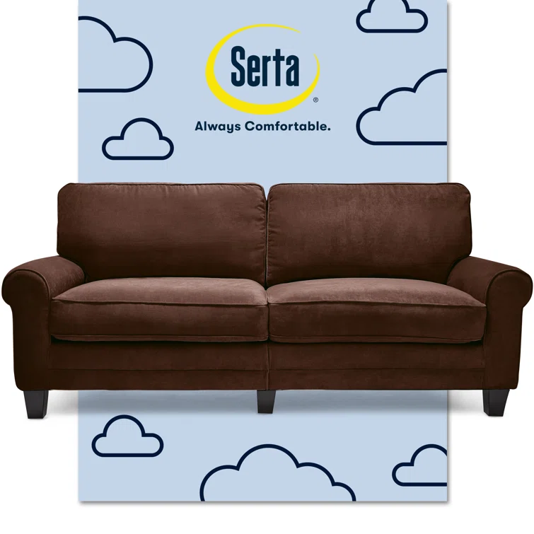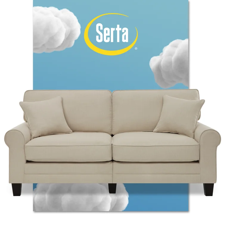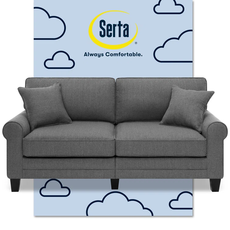 Enjoy functional style and plush, comfortable seating with the Copenhagen Rolled Arm Sofa. A great solution for smaller spaces, its compact size, and easy tool-free assembly make it an affordable and stylish seating solution for your apartment, condo, or office. Softly rounded arms and pillowy back cushions bring traditional style to your living room, den, or game room. Quality hardwood materials deliver strength and stability you can count on, while individually wrapped coils surrounded by high-density foam and poly-fibers provide comfortable seating you can sit back into. Designed to match pieces in the Copenhagen Collection, this Serta sofa can be combined with another sofa, loveseat, and accent chair for a completely coordinated look.