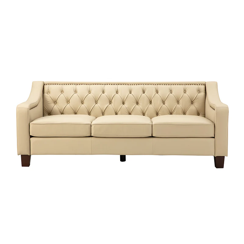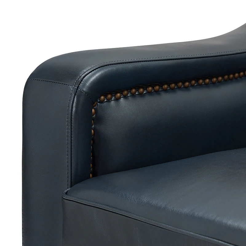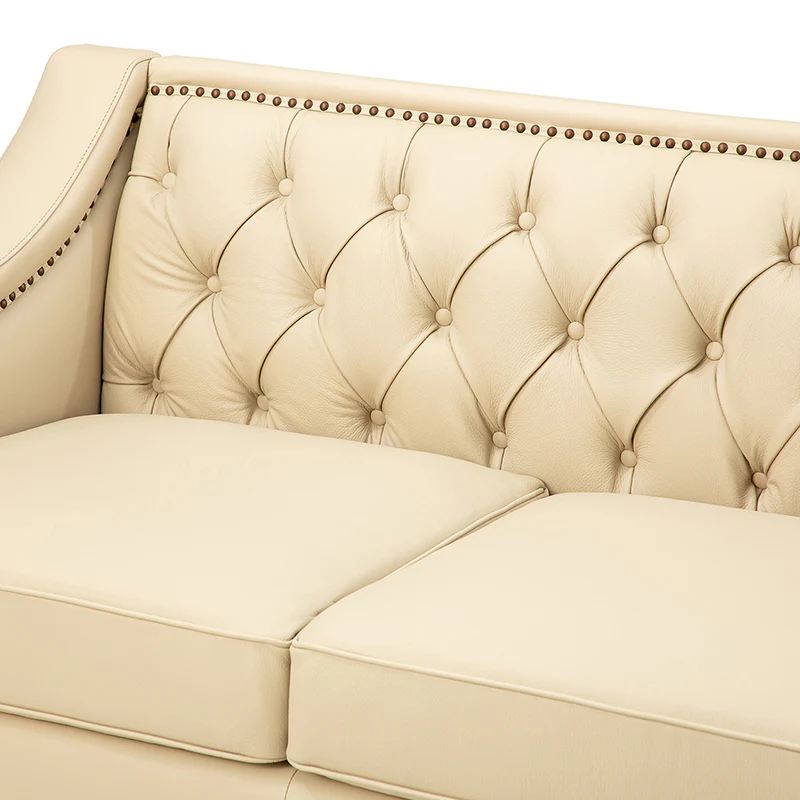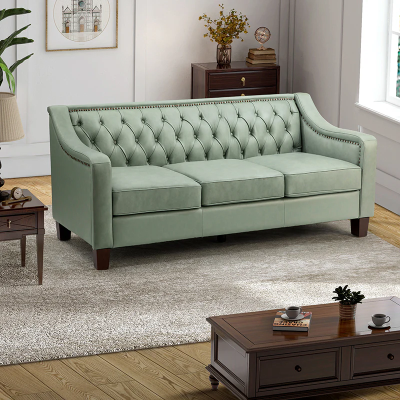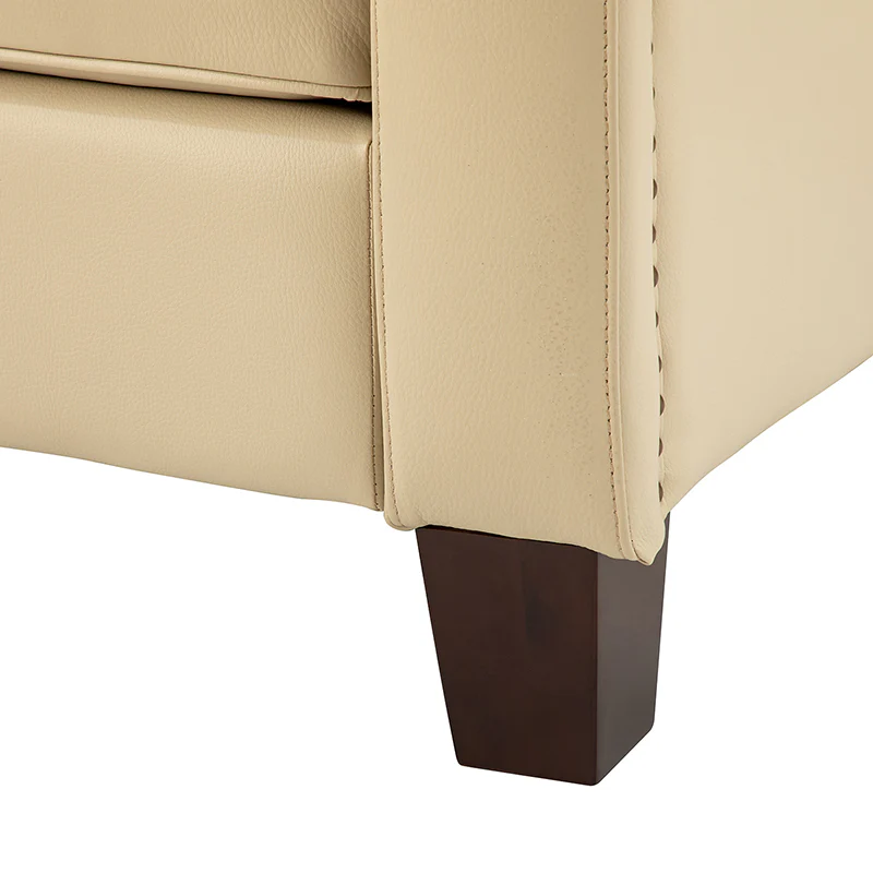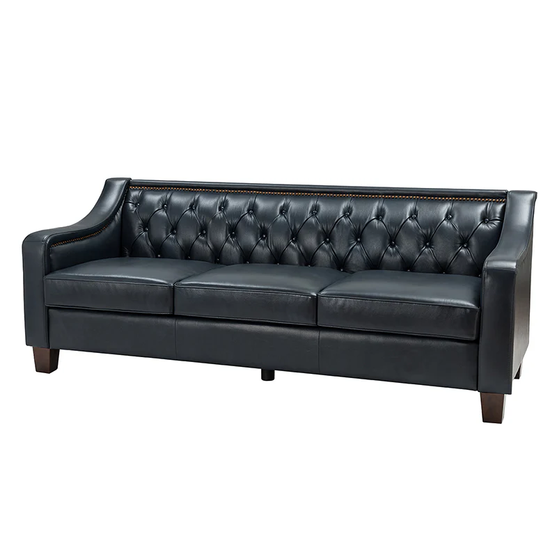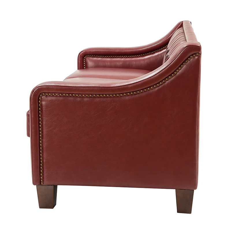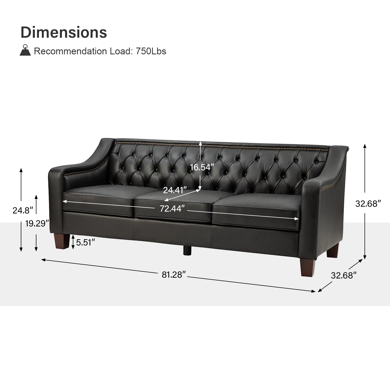 This modern top-grain leather sofa brings contemporary, curl-up comfort to your living room. The simple, angular design coordinates with a variety of decor styles, and the sturdy solid and manufactured wood frame ensures this sofa will last for years to come. Top grain leather surrounds the seating and armrests, while vegan leather is on the back and sides for affordability. Button-tufted and nailhead trim add more flair to the sofa, which can make your home more beautiful. At the same time, the seat cushions are removable according to your needs, and the core of the cushion can be taken out, which is very convenient for you to clean it. Lounge in luxury with this elegant sofa perfect for lazy day living. Add style to your decor with a modern furniture favorite for living room spaces.