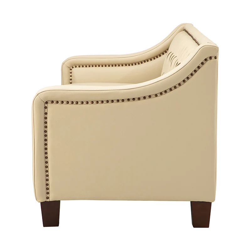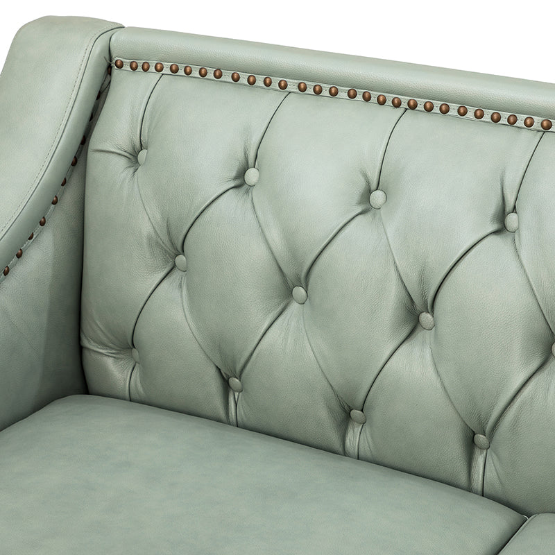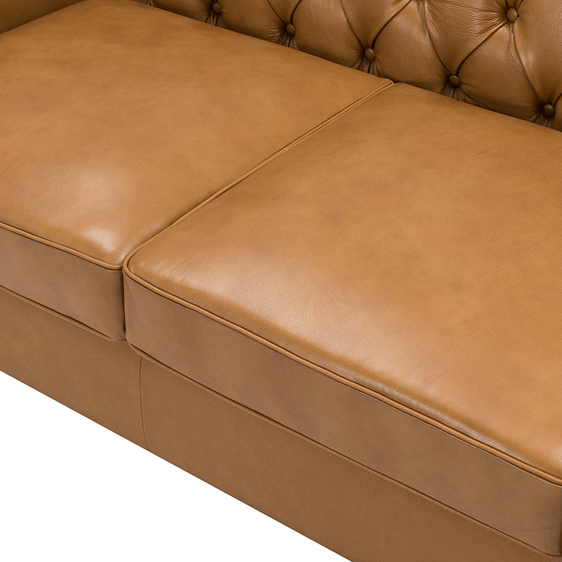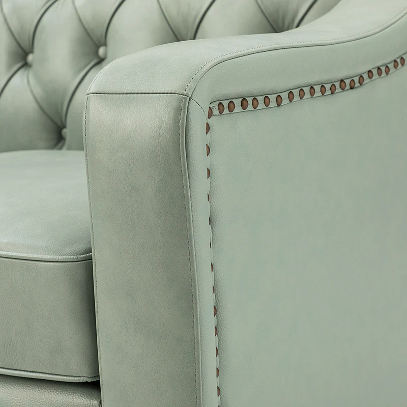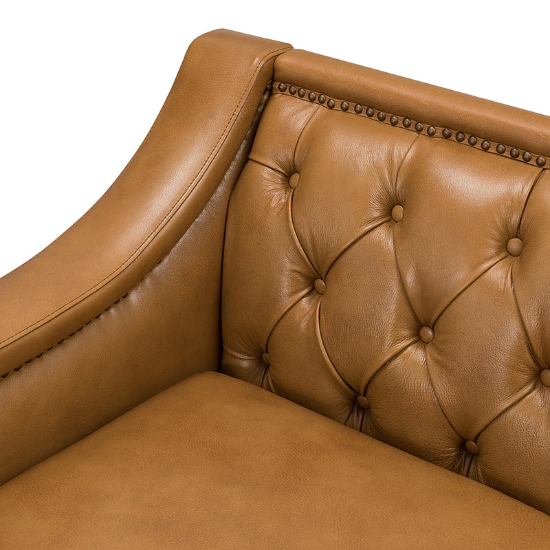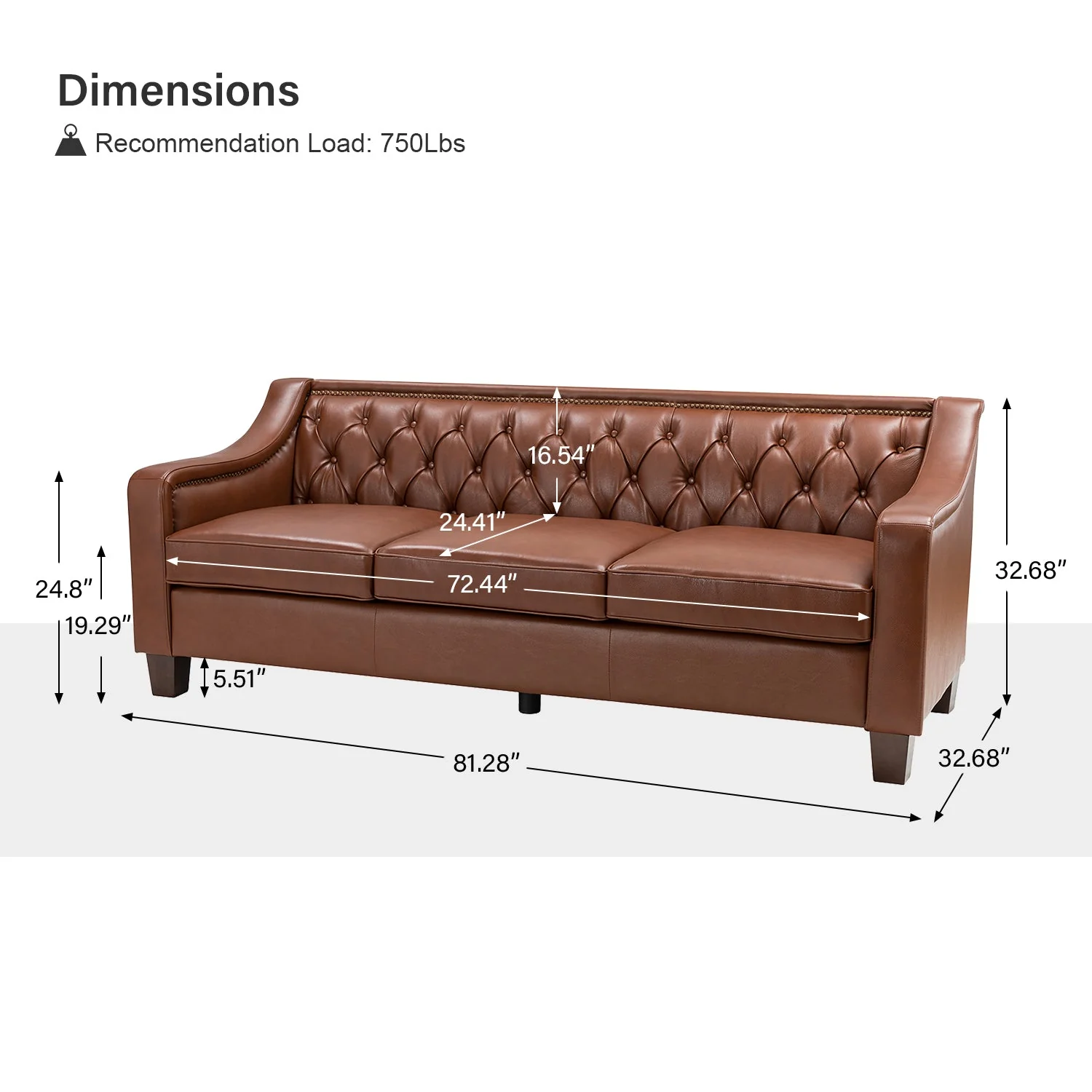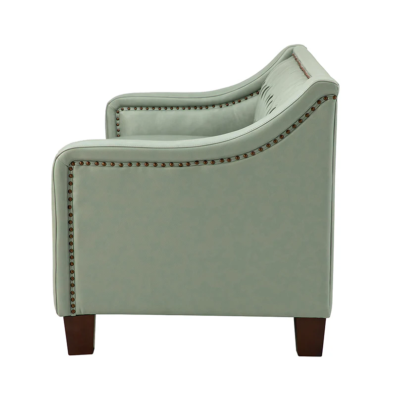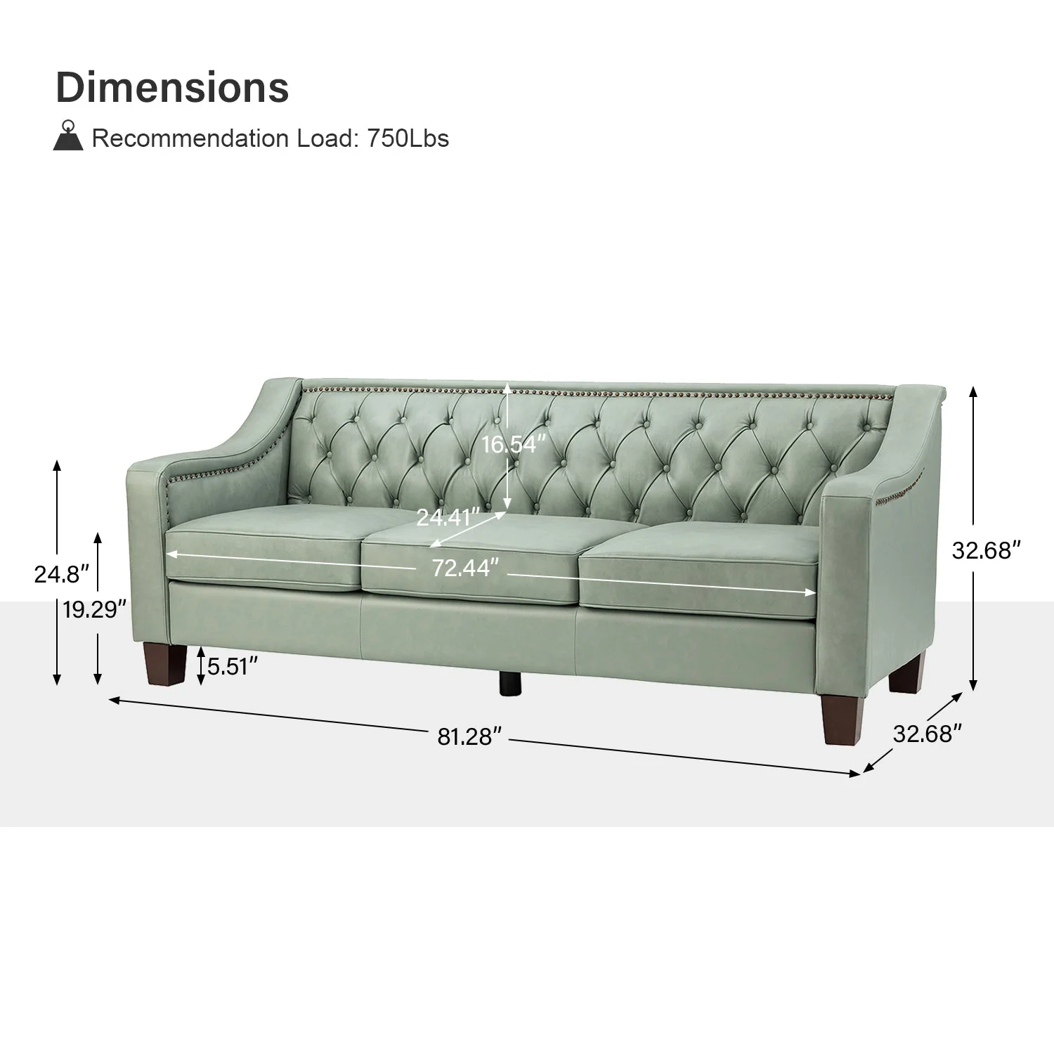This modern top-grain leather sofa brings contemporary, curl-up comfort to your living room. The simple, angular design coordinates with a variety of decor styles, and the sturdy solid and manufactured wood frame ensures this sofa will last for years to come. Top grain leather surrounds the seating and armrests, while vegan leather is on the back and sides for affordability. Button-tufted and nailhead trim add more flair to the sofa, which can make your home more beautiful. At the same time, the seat cushions are removable according to your needs, and the core of the cushion can be taken out, which is very convenient for you to clean it. Lounge in luxury with this elegant sofa perfect for lazy day living. Add style to your decor with a modern furniture favorite for living room spaces.