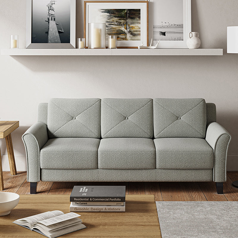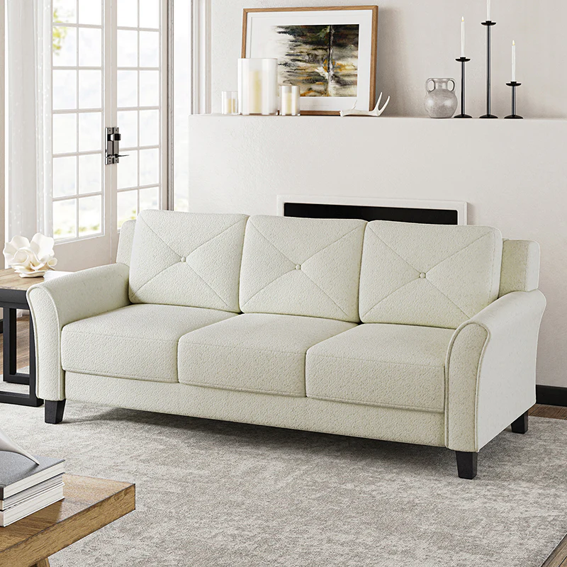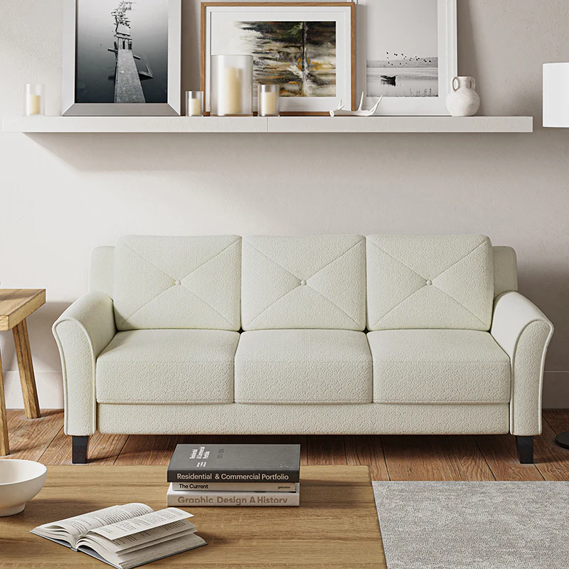 Presenting a versatile slipcovered sofa designed to effortlessly blend into your space, from modern to transitional to farmhouse aesthetics. Crafted with comfort and style in mind, this sofa features a removable slipcover for easy cleaning, ensuring lasting freshness and convenience. Its contemporary design is accentuated by flared armrests, providing ample space for your arms while elevating the overall appeal of your home or office. The quality lamb wool offers a cozy seating experience, suitable for relaxing after a long day. Supported by sturdy tapered legs, this sofa is stable for years to come. Whether seeking a sleek addition to your modern space, a transitional centerpiece, or a cozy farmhouse touch, this slipcovered sofa effortlessly meets your style and comfort needs.