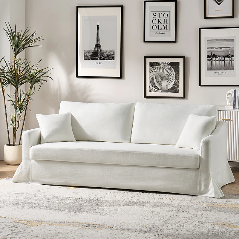 Introducing the versatile, easy-to-maintain sofa that effortlessly adapts to Traditional, Transitional, Glam, Coastal, Rustic, Lodge, Farmhouse, Bohomina, and more. Enjoy quick assembly, reversible cushions, and an easy, one-piece slipcover extending to the bottom. It's a breeze to put on and take off, and you can choose from a range of fabric options, including customizable patterns. Make this sofa uniquely yours, matching your style effortlessly.