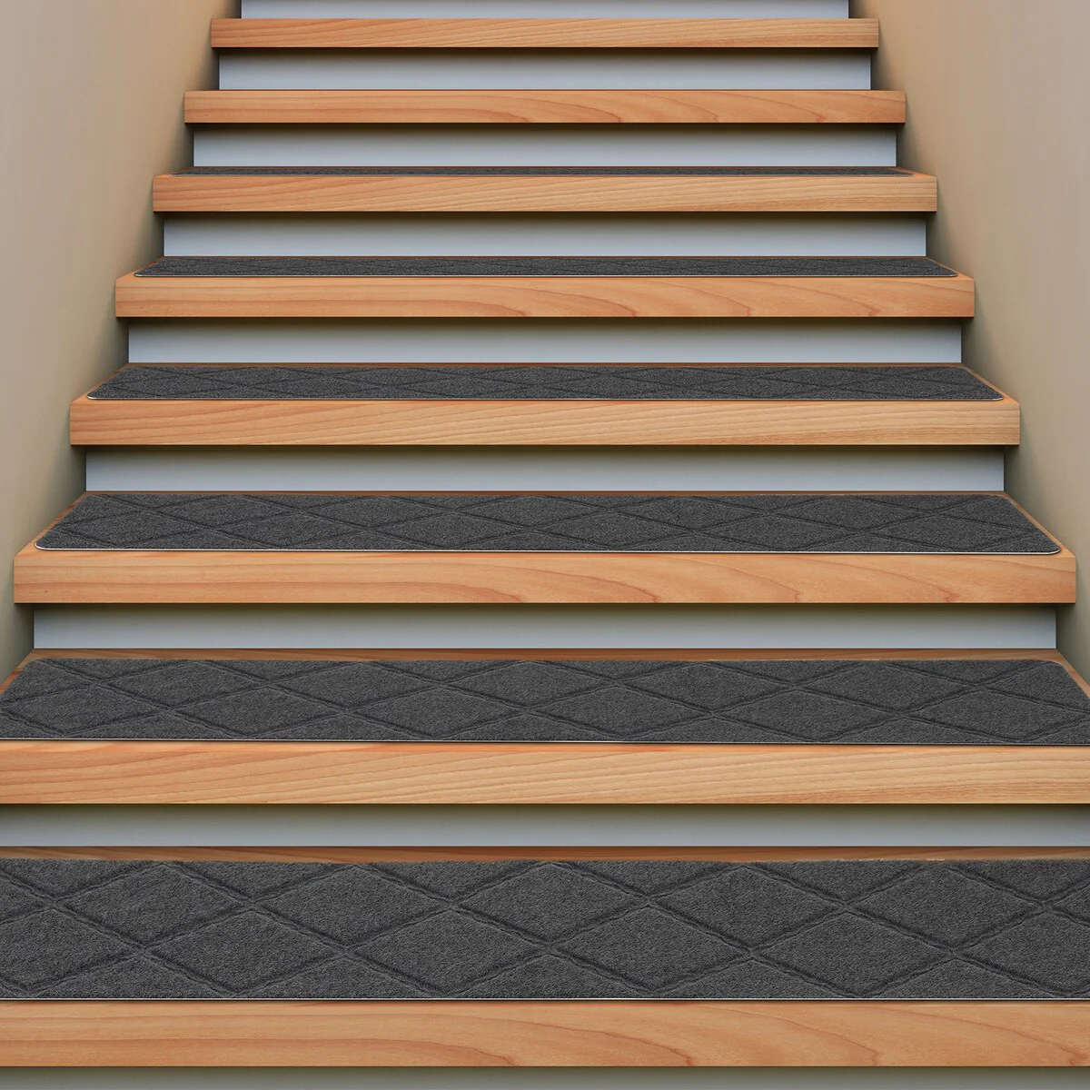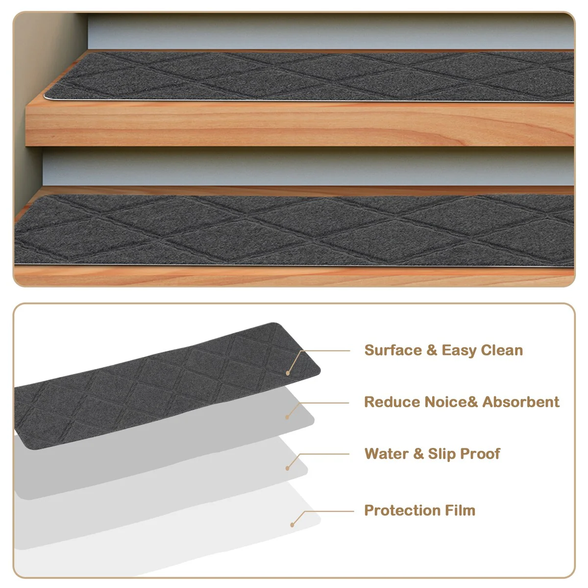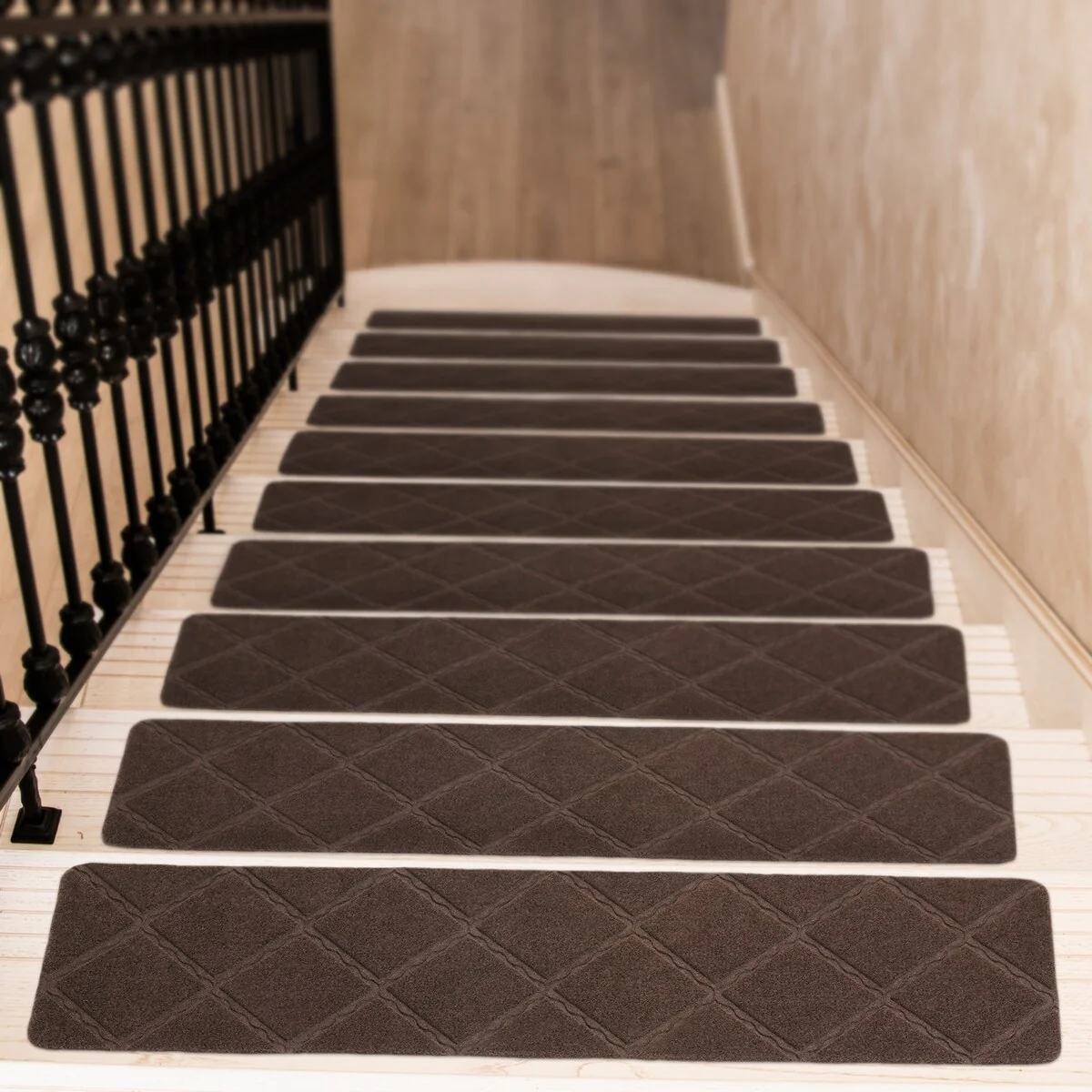 - 15-PIECE STAIR TREADS CARPET: made of 100% polyester, our Sunexinlo reusable lightweight stair tread mats are designed with unique diamond patterns, which are classic and beautiful, and also provide a soft touch to your feet.
