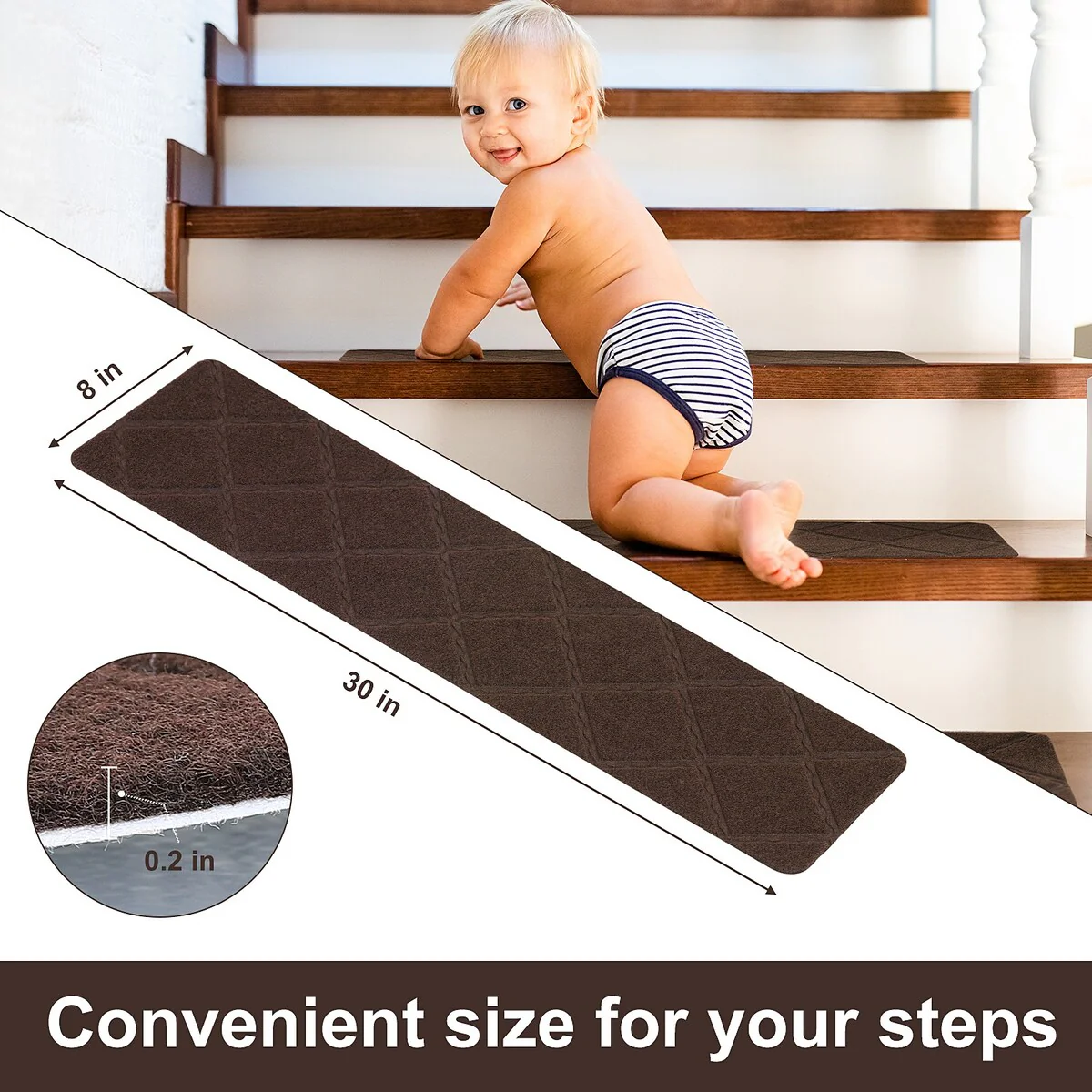 - MULTI-PURPOSE STEP MAT: these non-slip stair treads work well on the painted and smooth surface floor, they can also be used in the kitchen, bathroom, and bedroom. It's convenient to maintain with a vacuum cleaner or just put them in the washing machine.