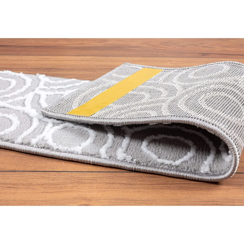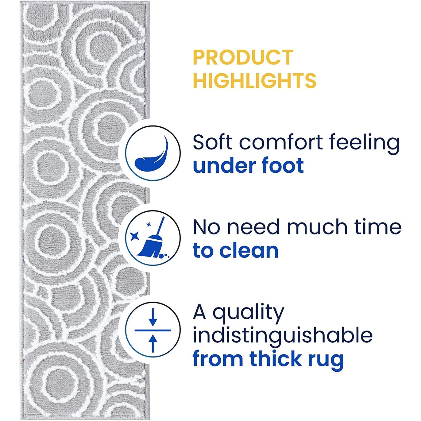 • Beverly Rug Indoor Non Slip Carpet Stair Treads w/ Installed Tape 9x28 Circles Grey / Ivory