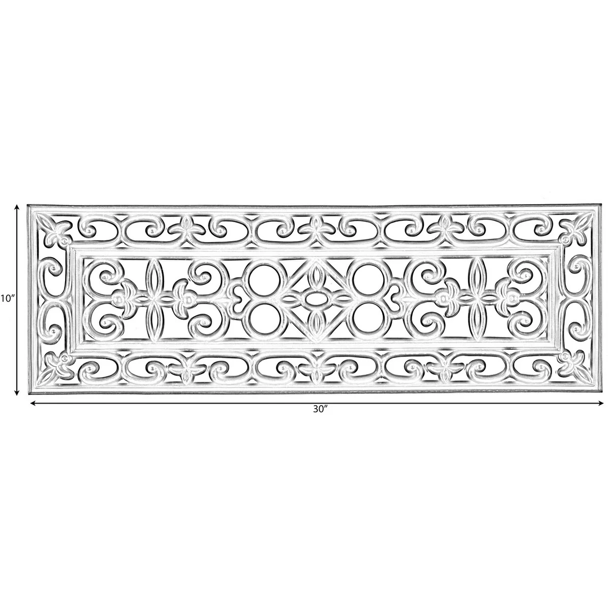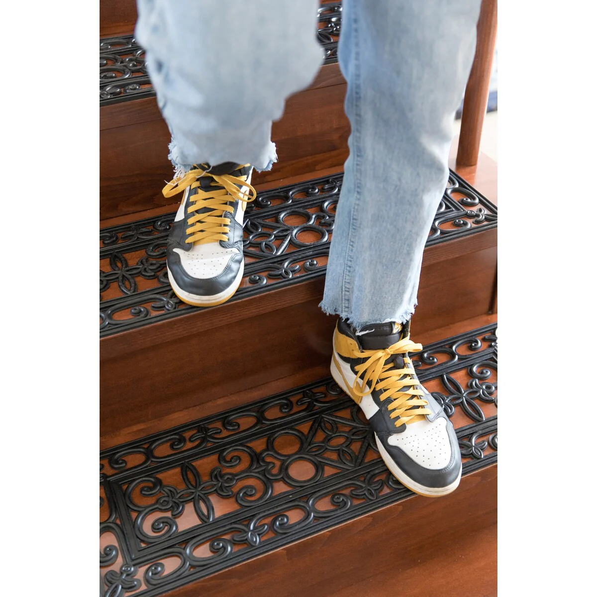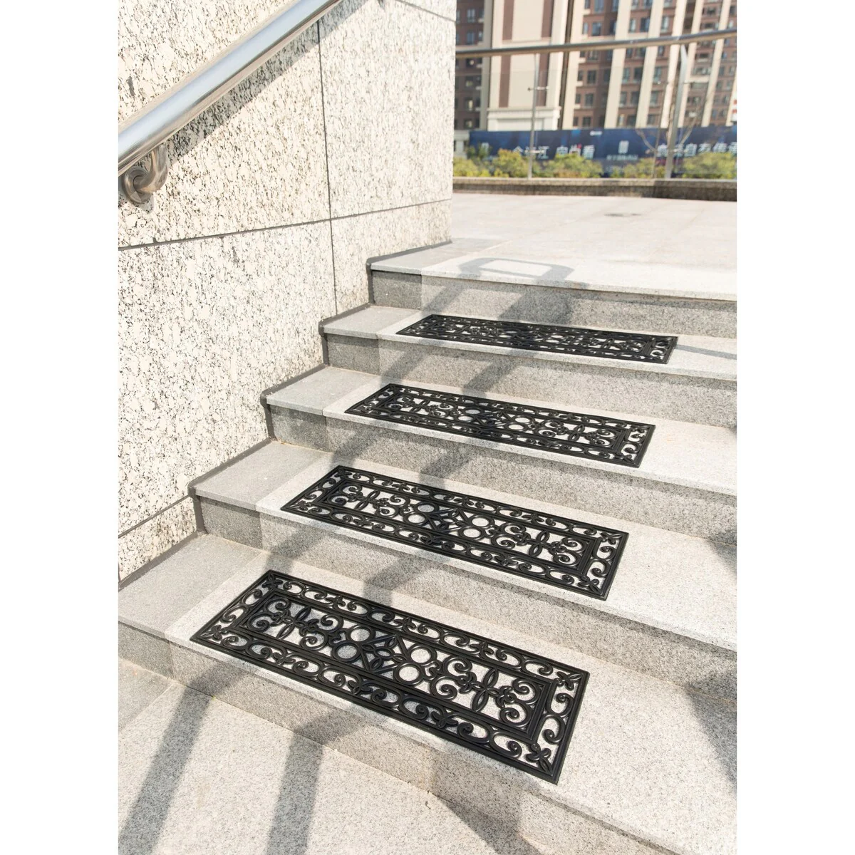 Keep your stairway protected with this decorative rubber stair mat. Crafted scrollwork design will add a classical appearance to your stairs. This mat provides protection, keeps your home clean while, the decorative design adds a modern touch to your stairways. This stair mat is ideal for indoor and outdoor use. Easy to clean by washing, sweeping, or shaking.