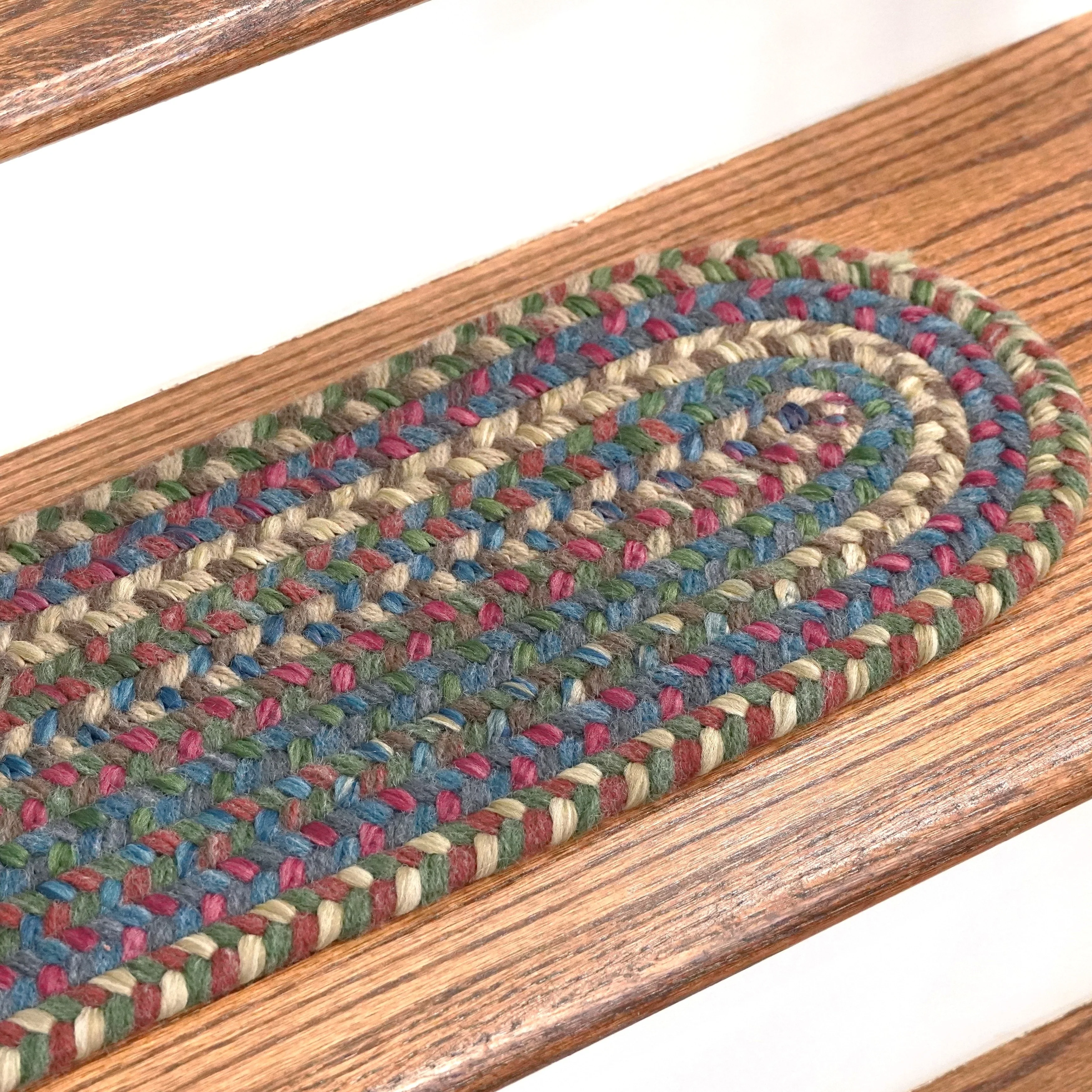A timeless style featuring wool-blend space-dyed yarns braided together to create a textured multi-colored look. This durable, long lasting braided stair tread adds a decorative appeal while protecting your staircase. Great for high traffic areas. Reversible for twice the wear and tear.
