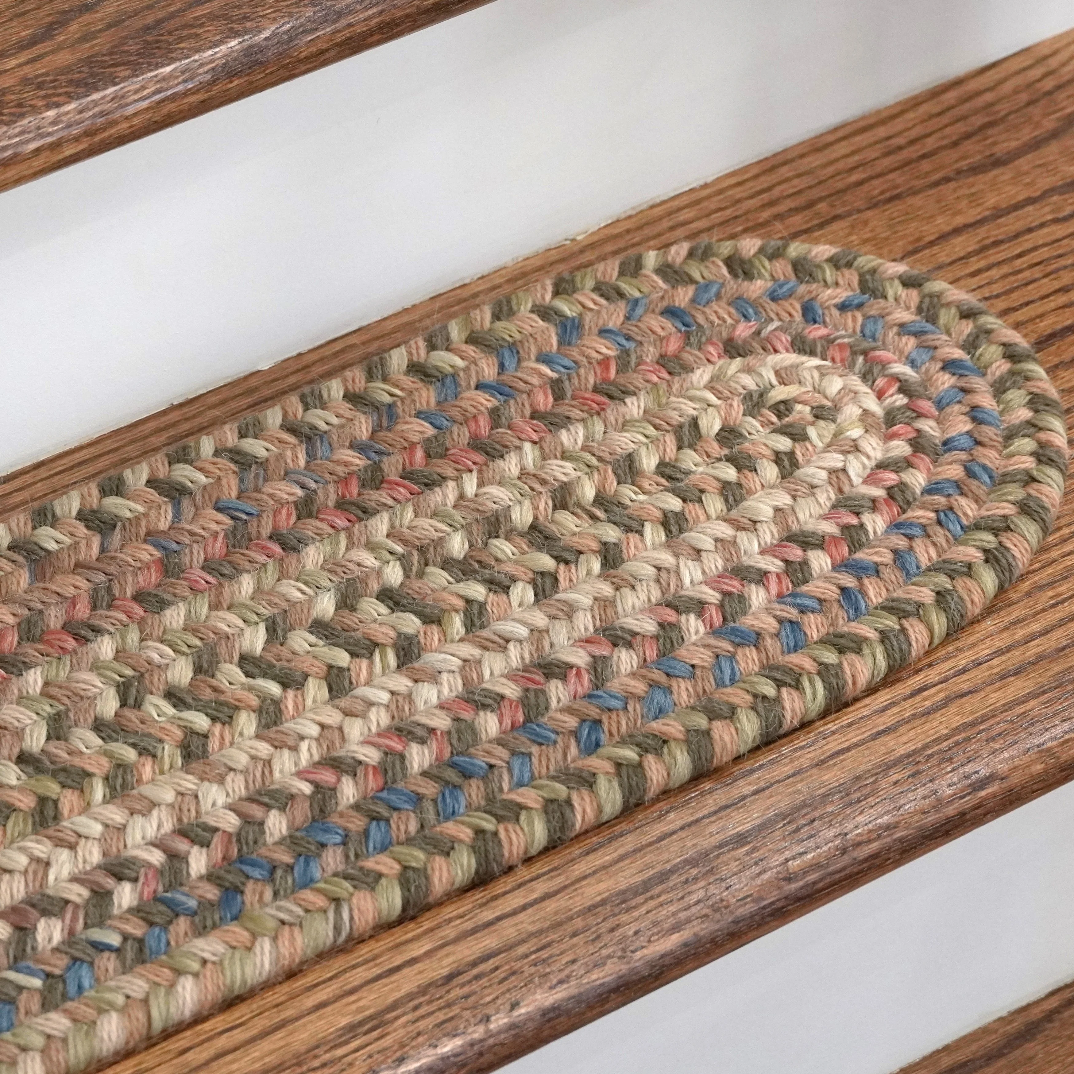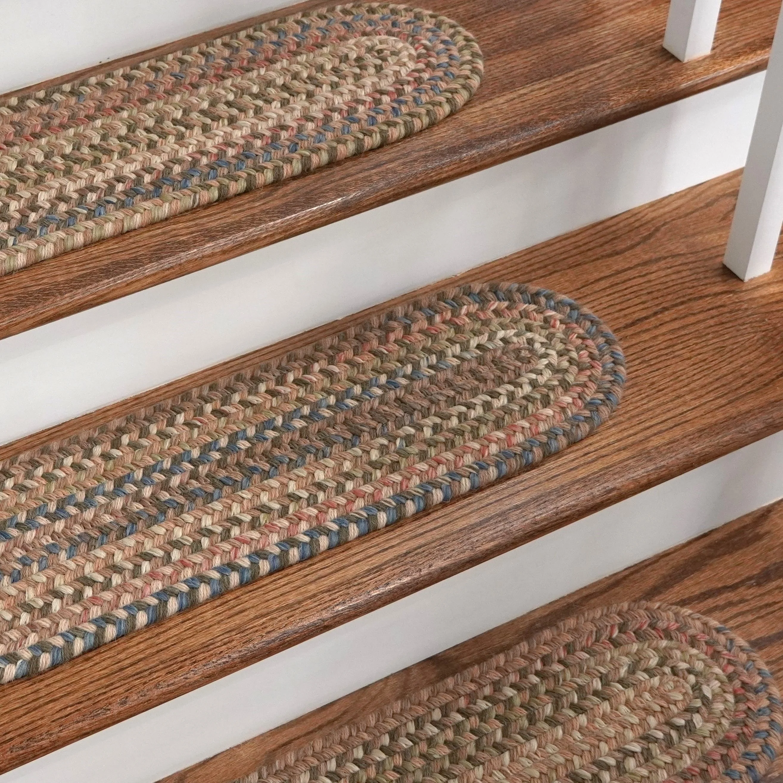 A timeless style featuring wool-blend space-dyed yarns braided together to create a textured multi-colored look. This durable, long lasting braided stair tread adds a decorative appeal while protecting your staircase. Great for high traffic areas. Reversible for twice the wear and tear.