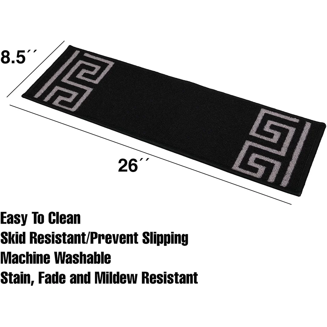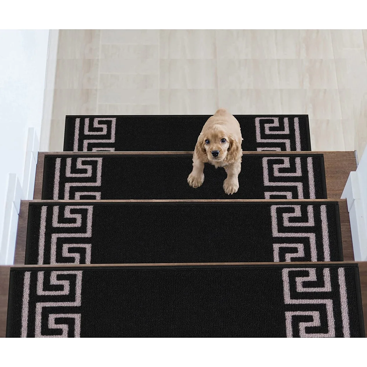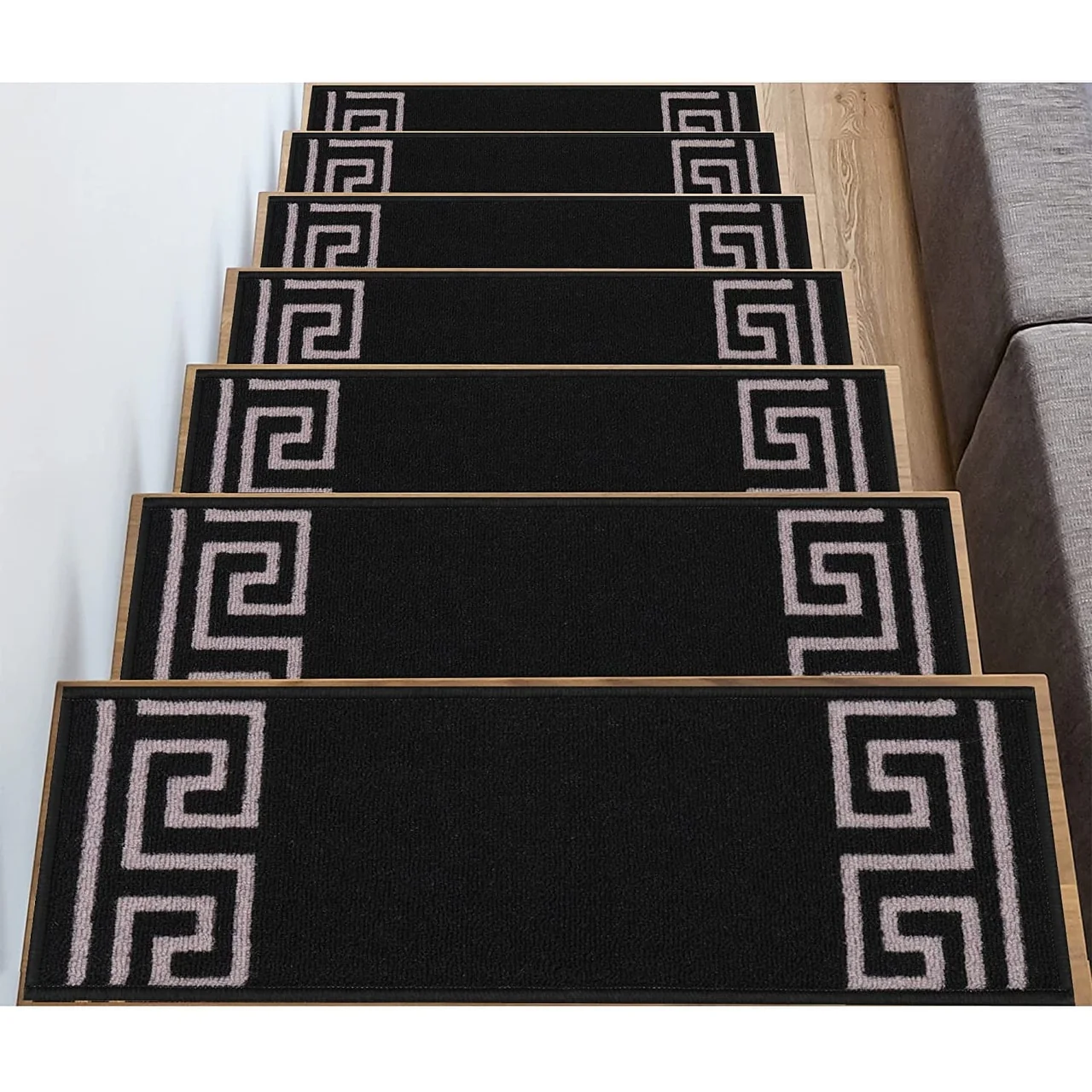 Upgrade your home decor and safety with Playa Rug's Stair Treads Greek Key Meander Design Non Slip Backing. Handcrafted with soft Polypropylene threads and a natural rubber backing, our stair treads offer a slip-resistant solution to prevent unexpected accidents. Our premium quality stair treads not only add a stylish touch to your home but also provide a soft and high-quality feel under your feet.